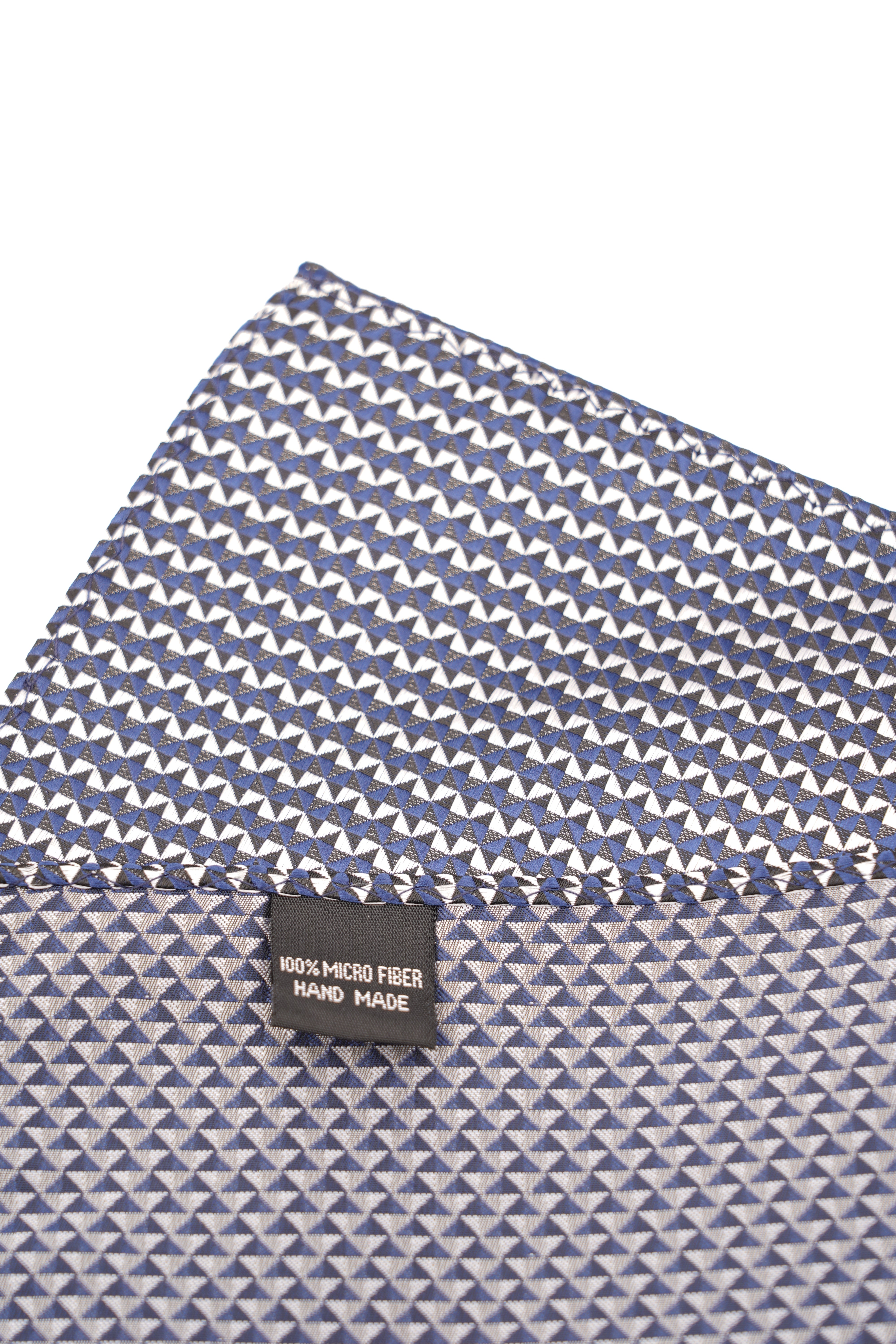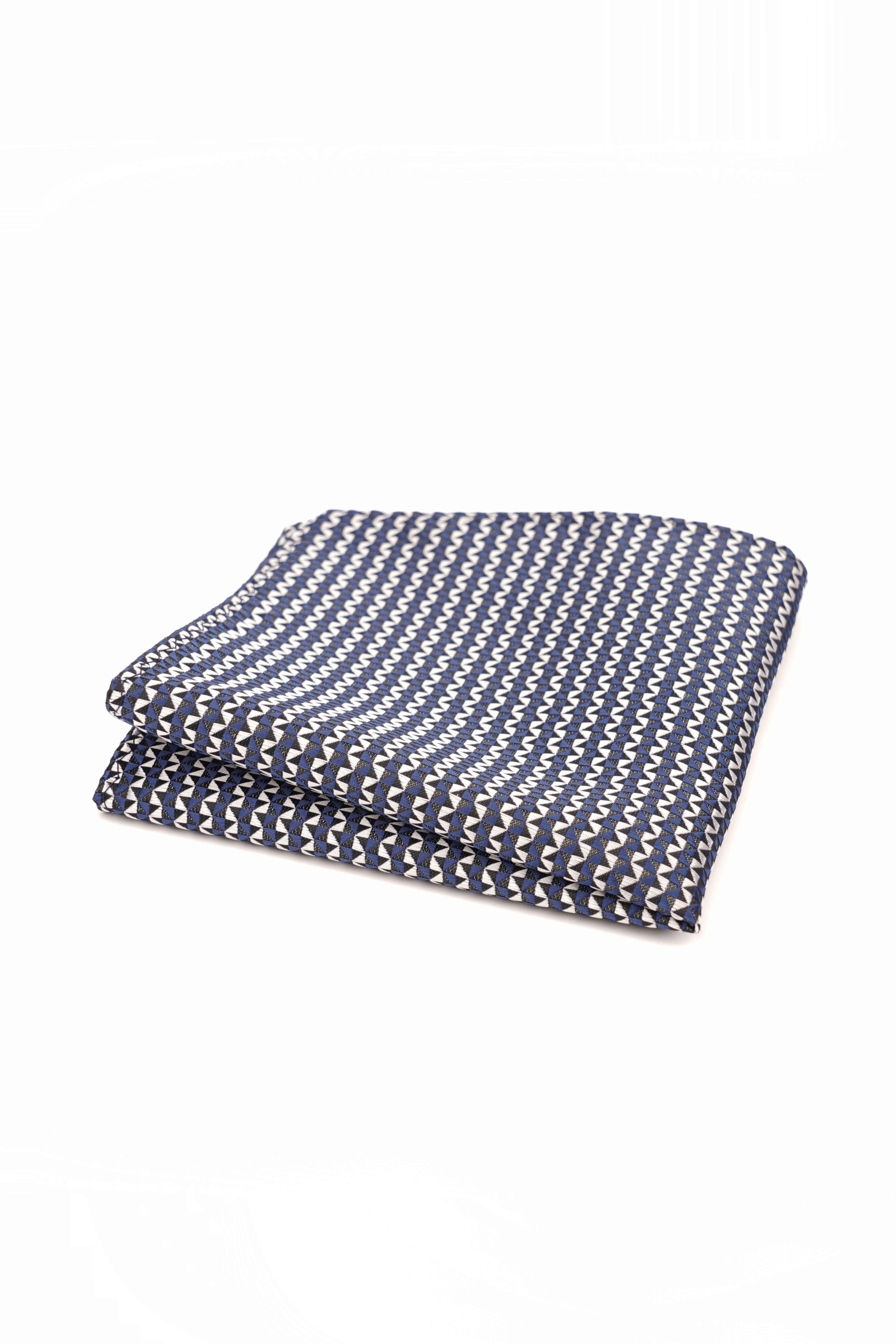 - Batistă de buzunar albă cu imprimeu geometric albastru