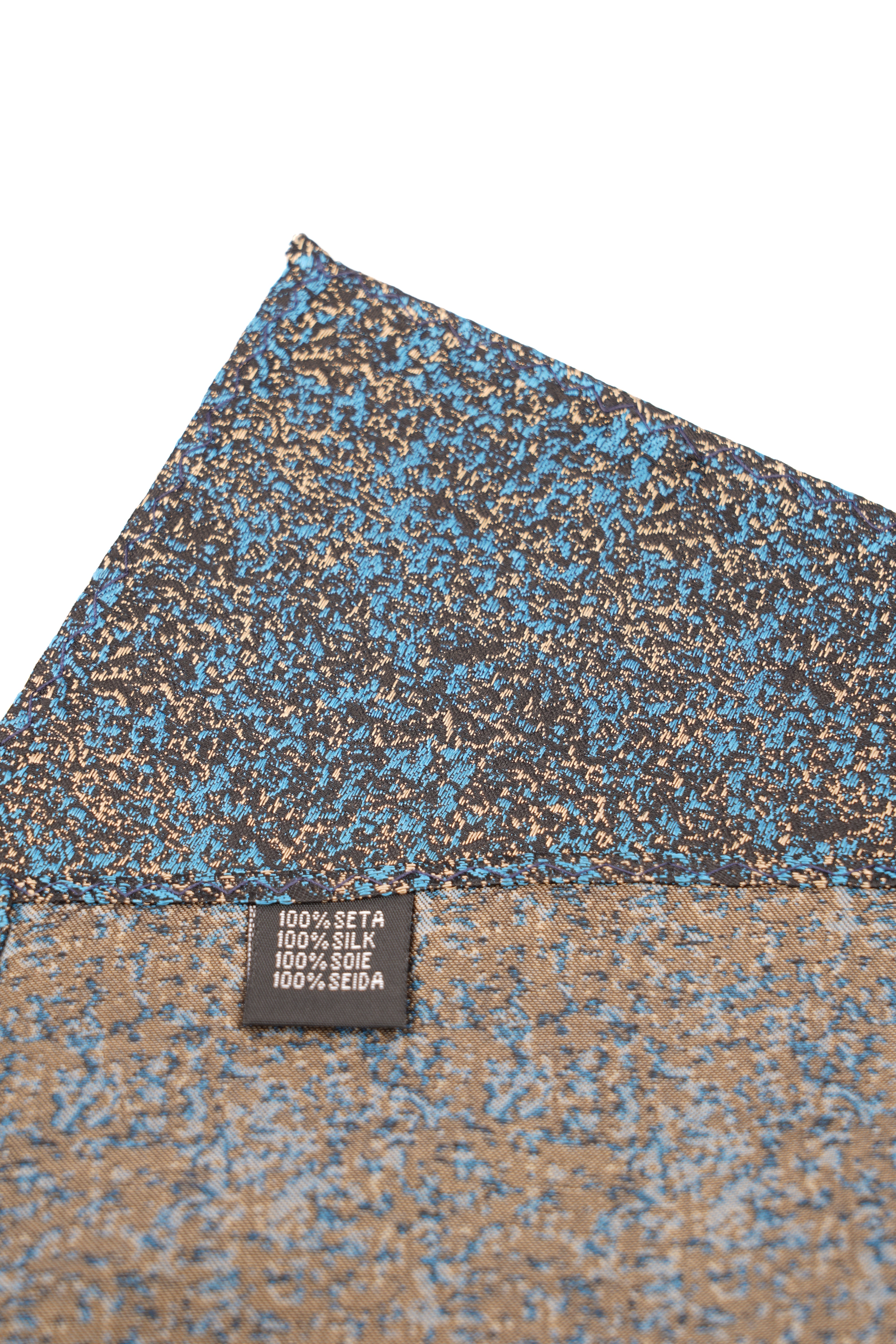 Această batistă de buzunar din poliester cu imprimeu abstract în nuanțe de albastru și auriu aduce un aer modern și sofisticat oricărui sacou. O poți purta la evenimente elegante sau în ținute business, fie pliată simplu pentru un look discret, fie cu volum pentru un plus de personalitate.