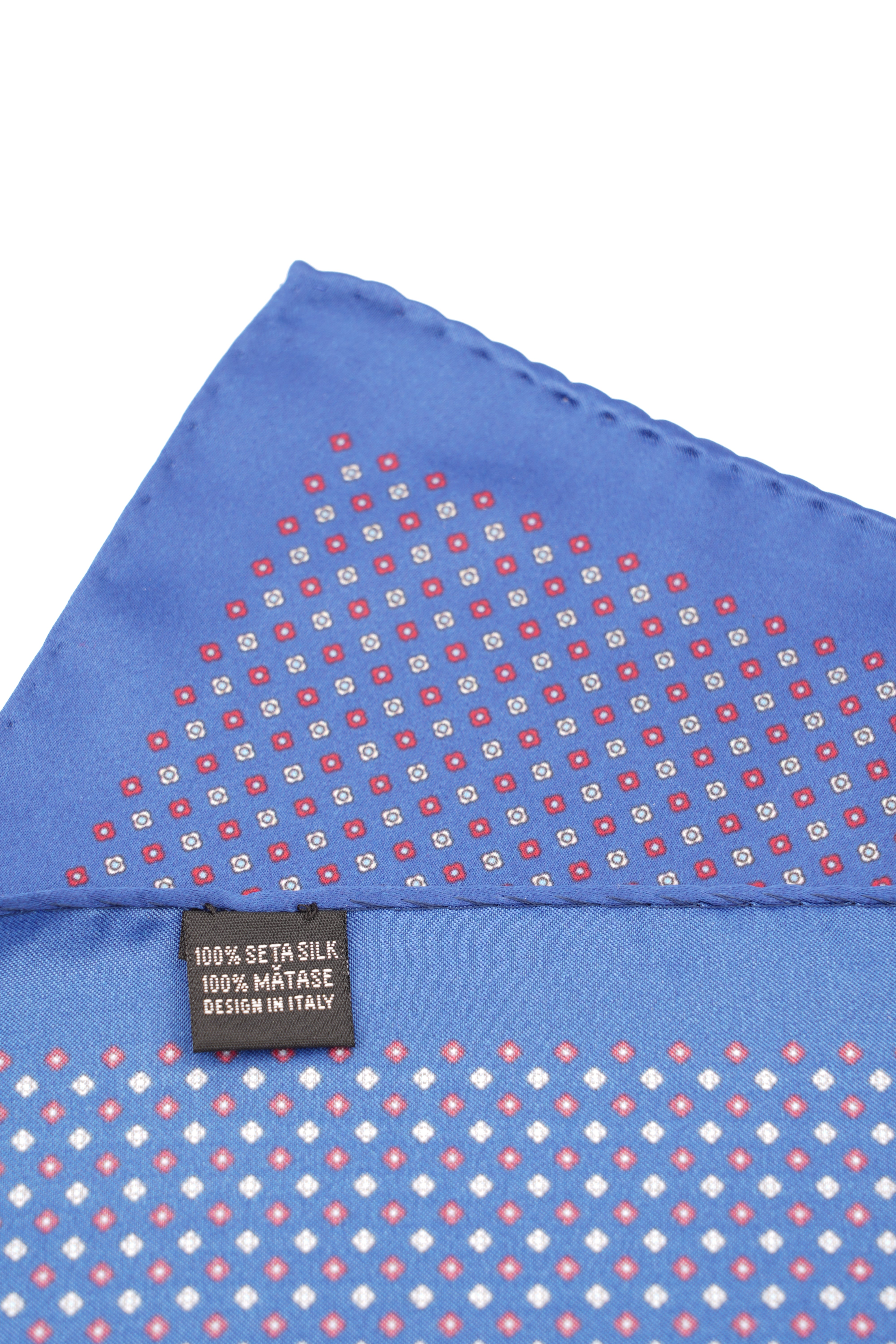 Această batistă de buzunar din poliester, în nuanță albastră cu imprimeu punctat roșu și accente albe, aduce un plus de prospețime și eleganță ținutei tale. Ideală pentru evenimente și apariții smart-casual, se combină ușor cu sacouri închise sau deschise la culoare.