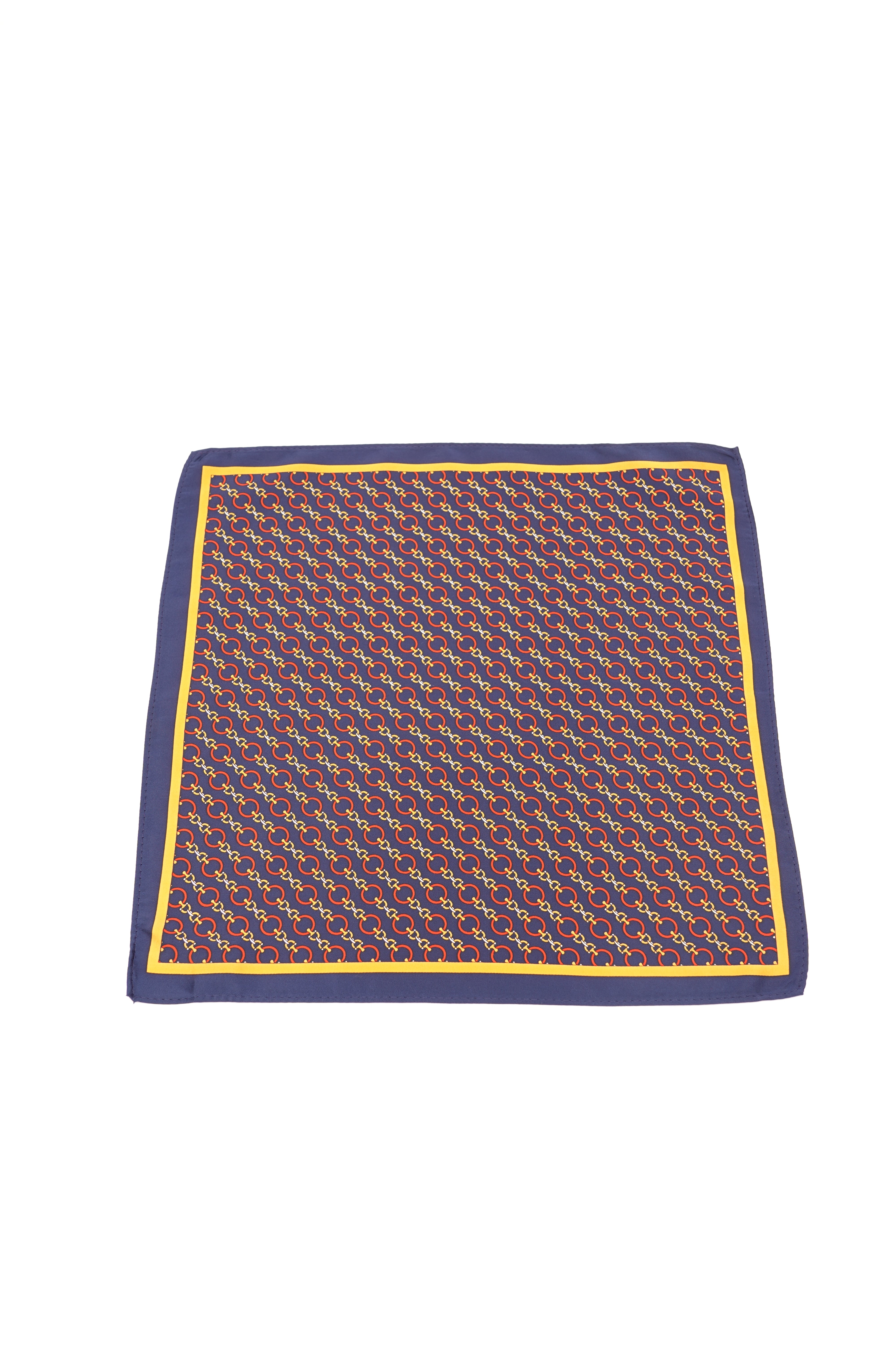 - Batistă de buzunar albastru închis cu imprimeu lanțuri roșii și margine galben-aurie