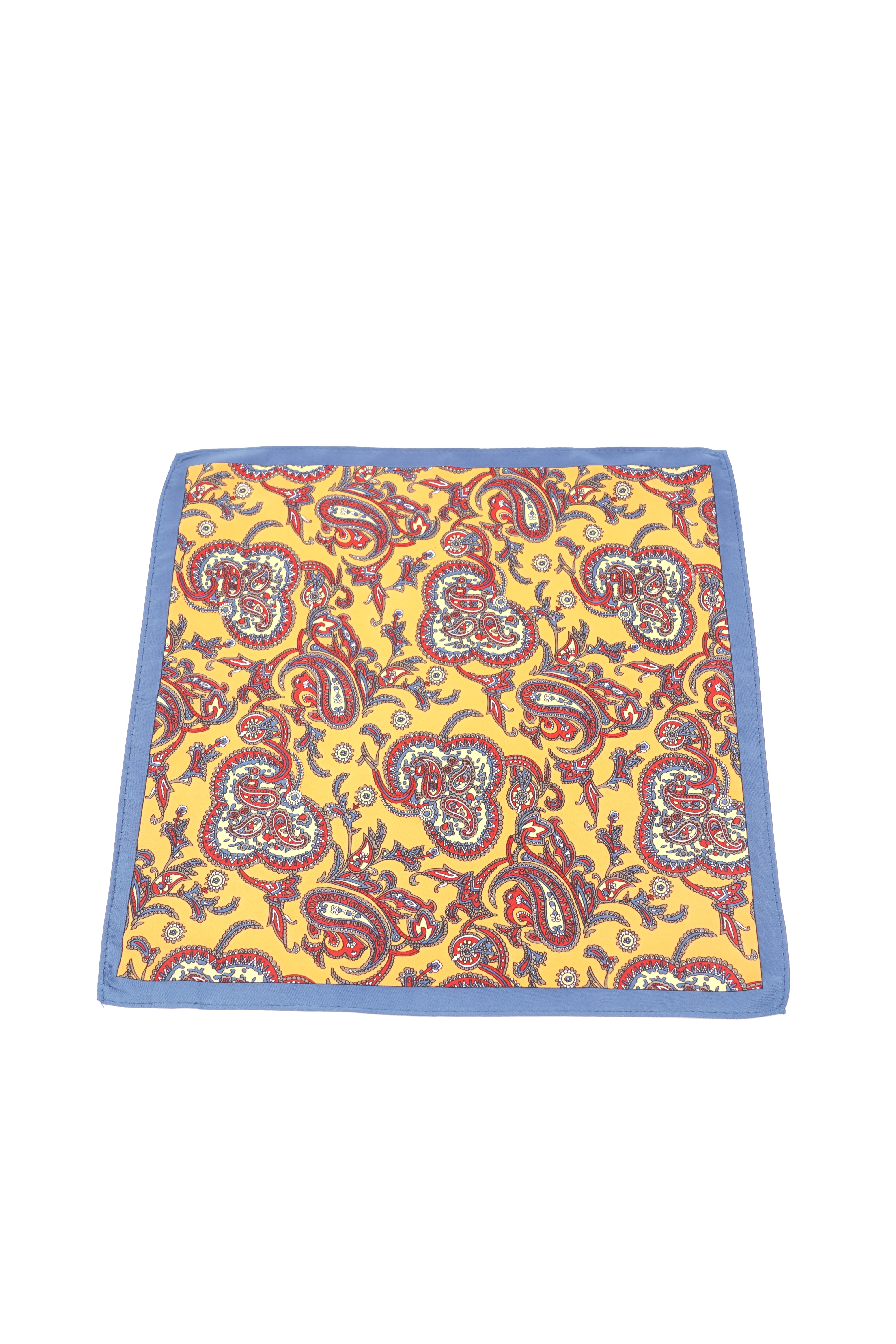 - Batistă de buzunar galbenă cu imprimeu paisley multicolor și margine albastră