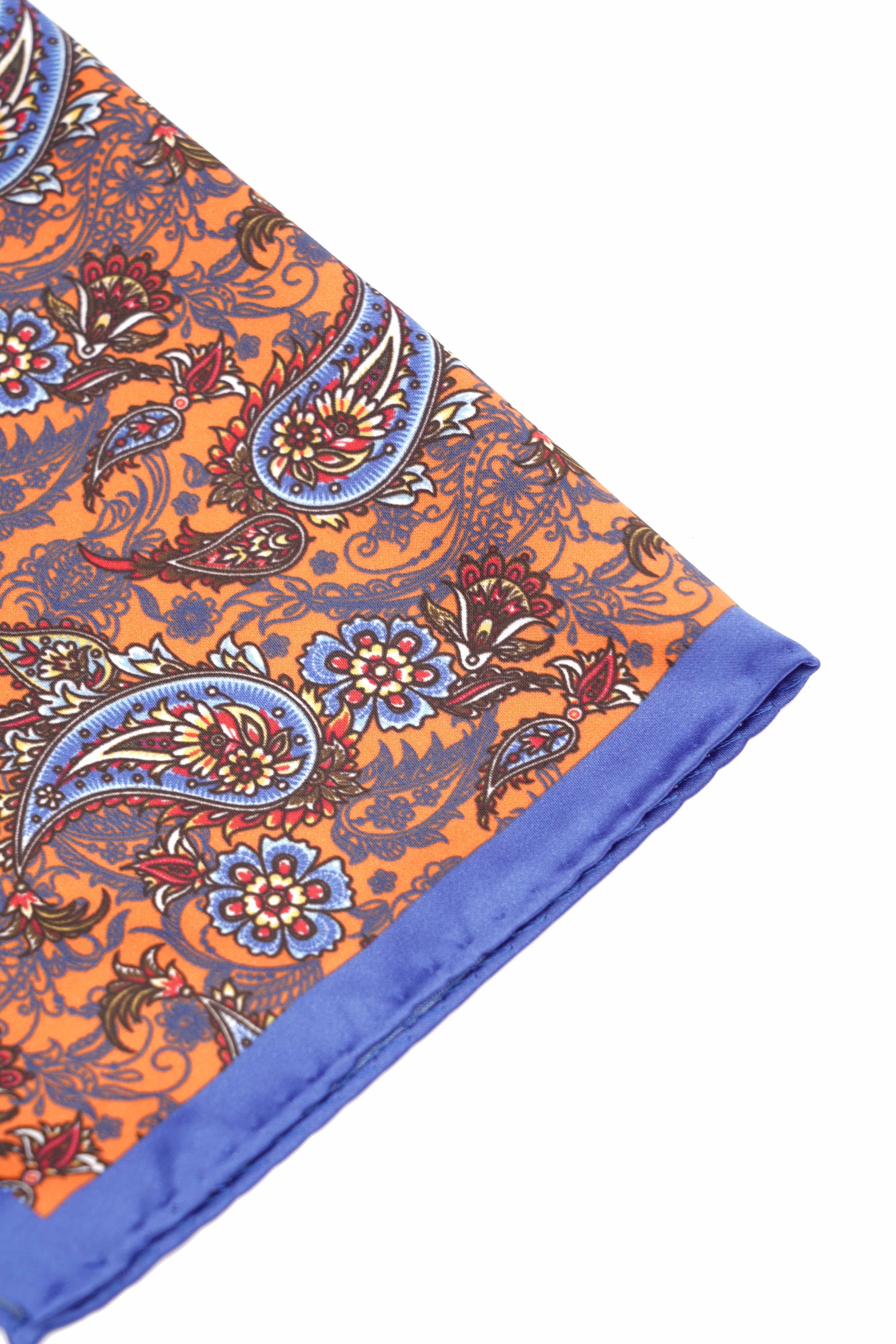 Această batistă de buzunar din poliester, cu fundal portocaliu intens și model paisley în nuanțe de albastru, roșu și alb, este alegerea perfectă pentru un look sofisticat și nonconformist. O poți purta la evenimente speciale sau pentru a adăuga un strop de personalitate unei ținute business.