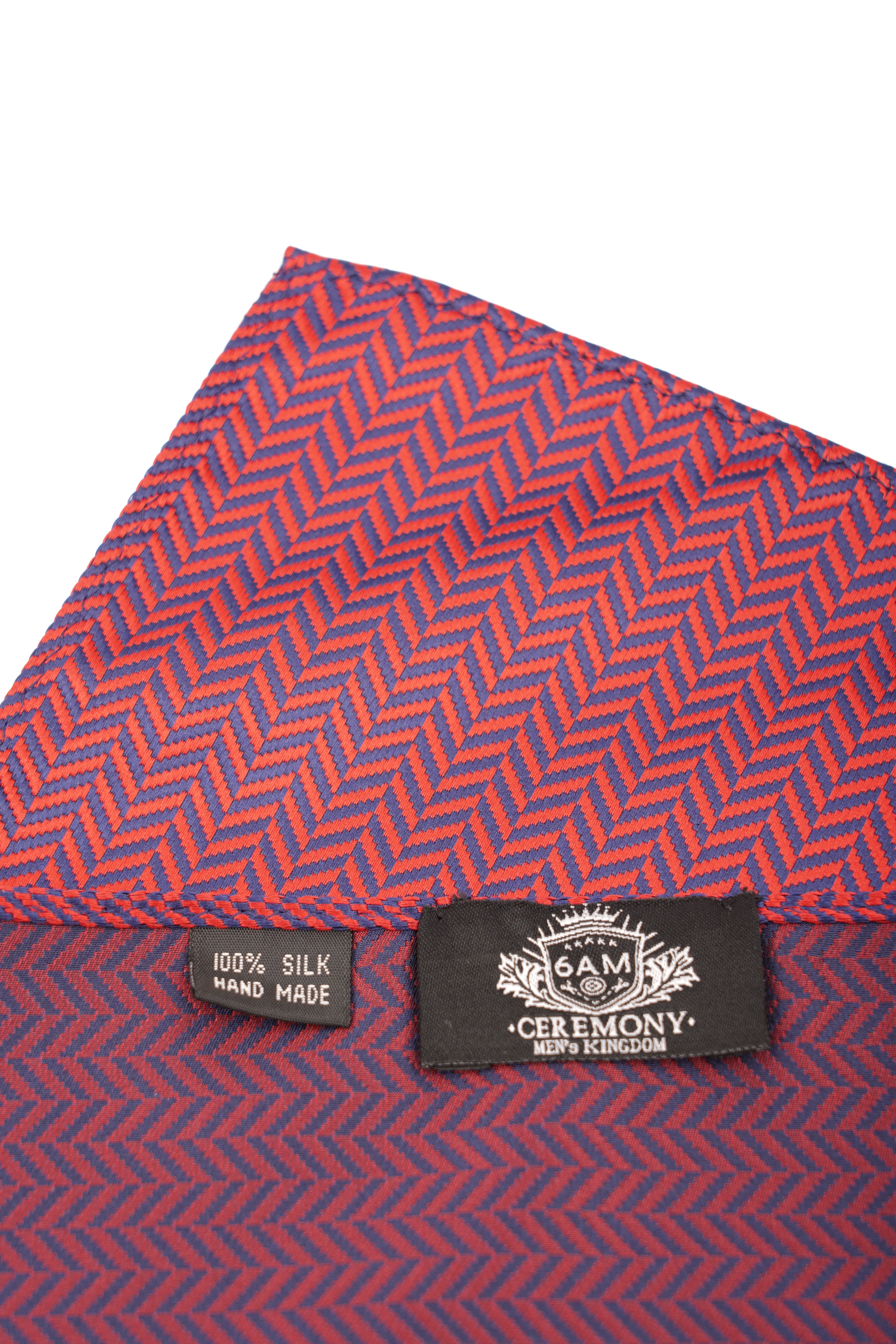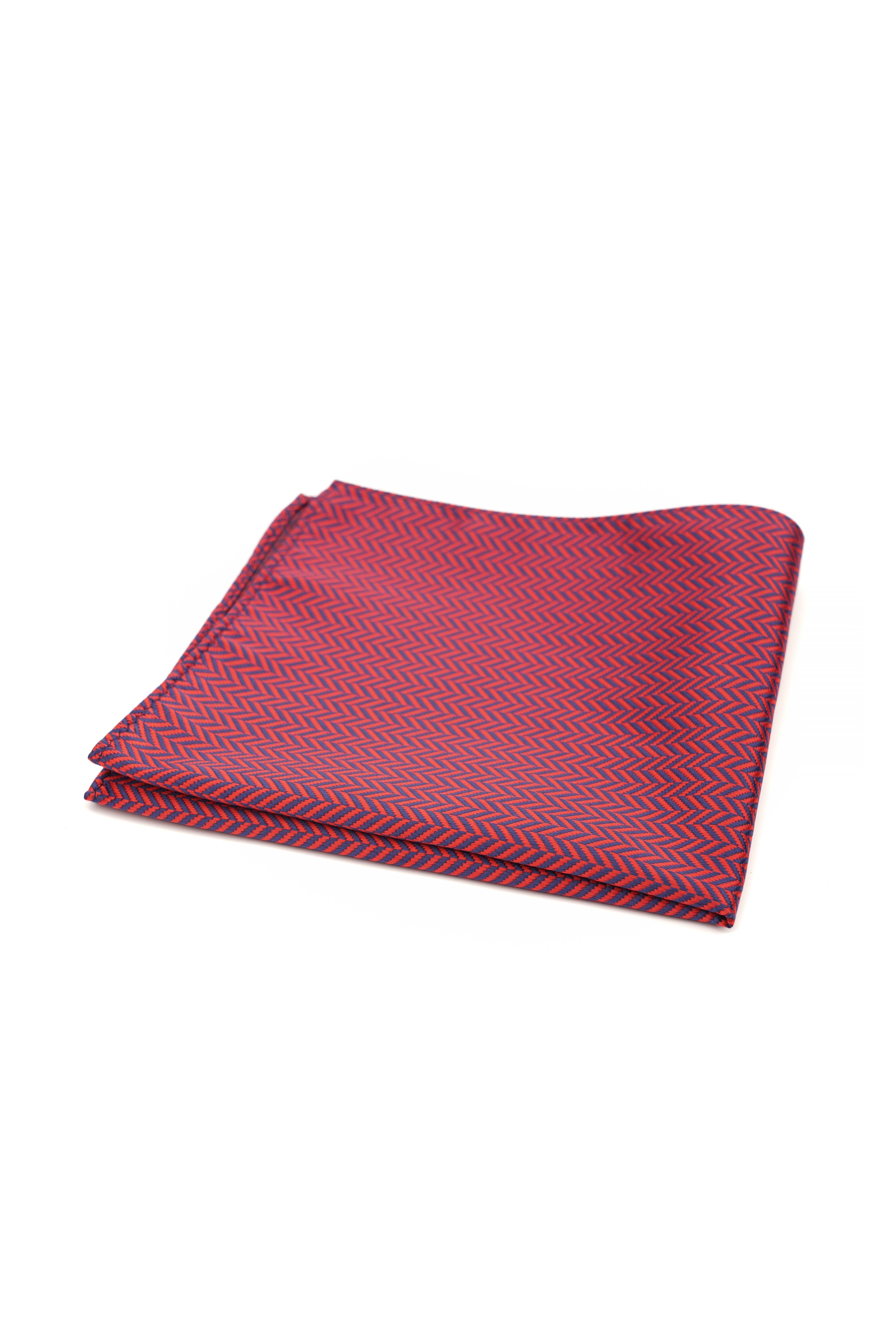 Batistă de buzunar roșie cu imprimeu zig-zag bleumarin