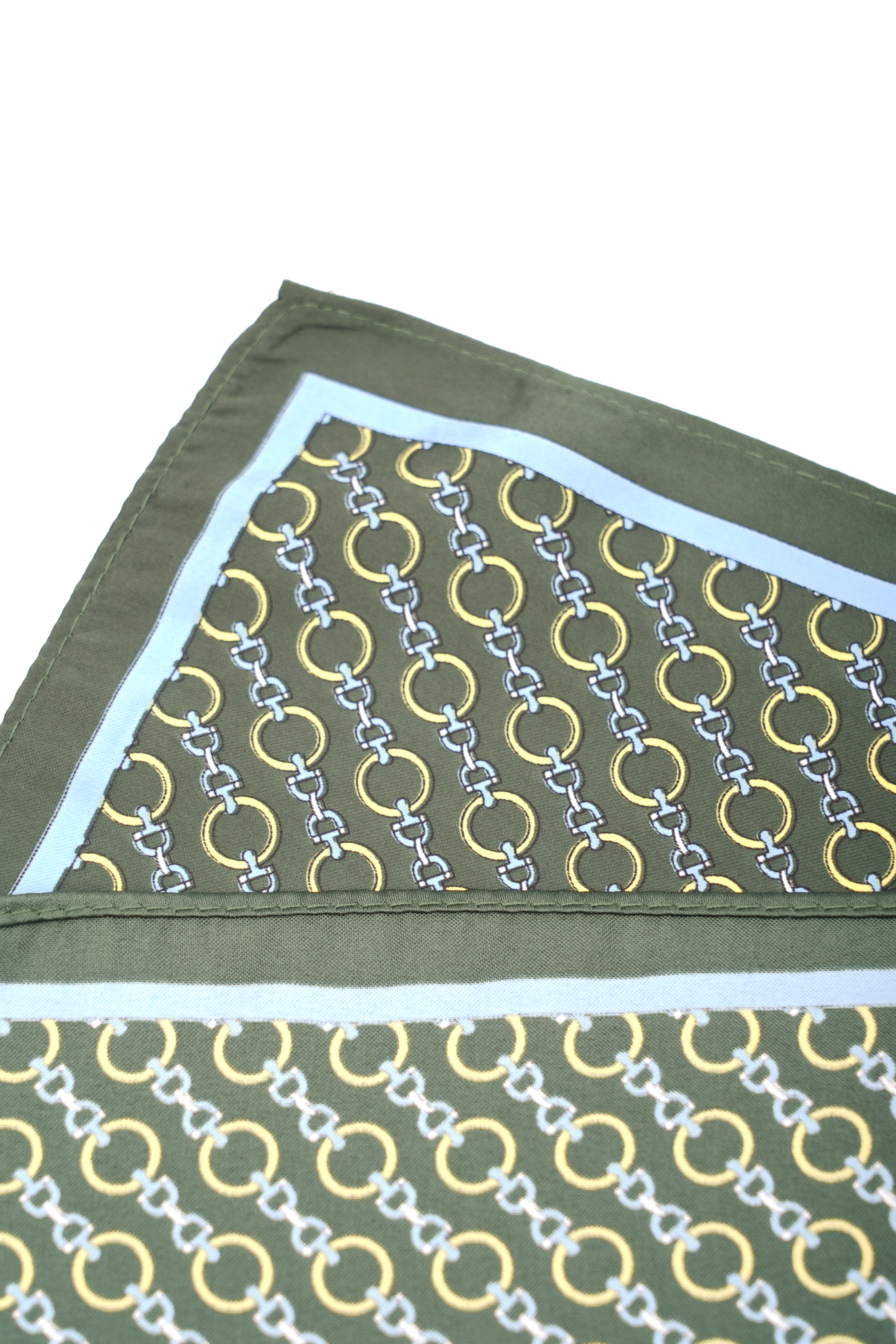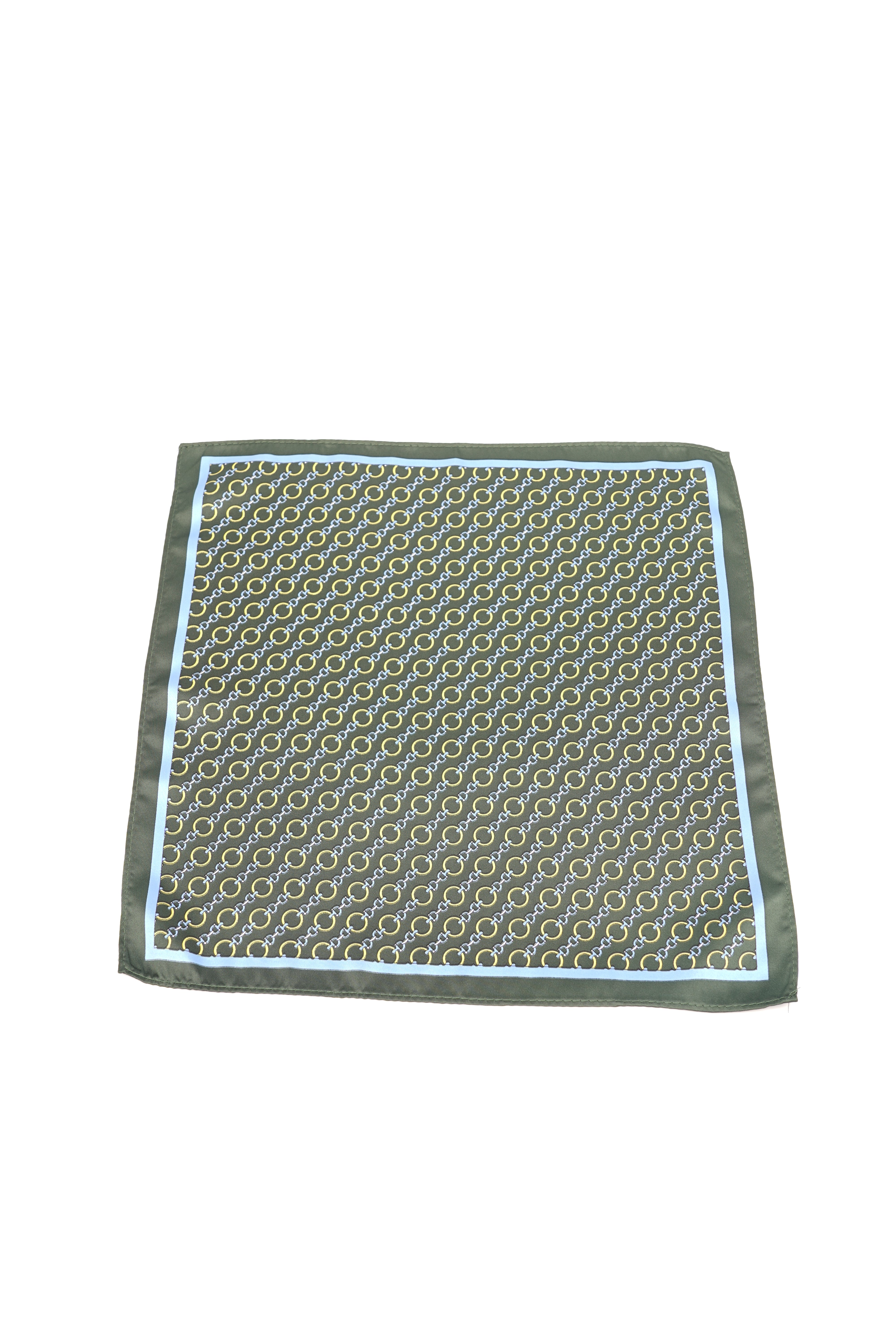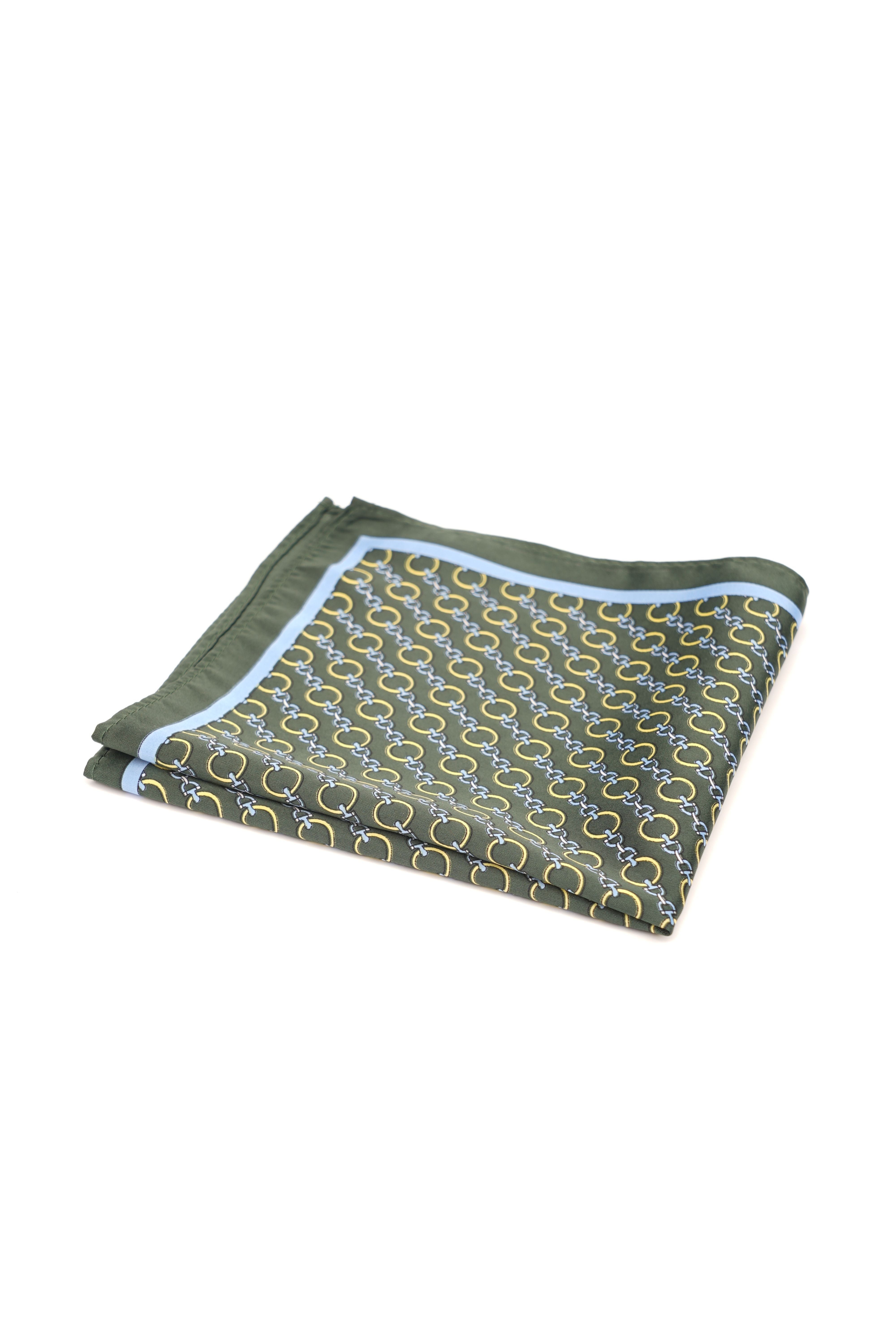 - Batistă de buzunar verde-oliv cu imprimeu geometric și margine albastră