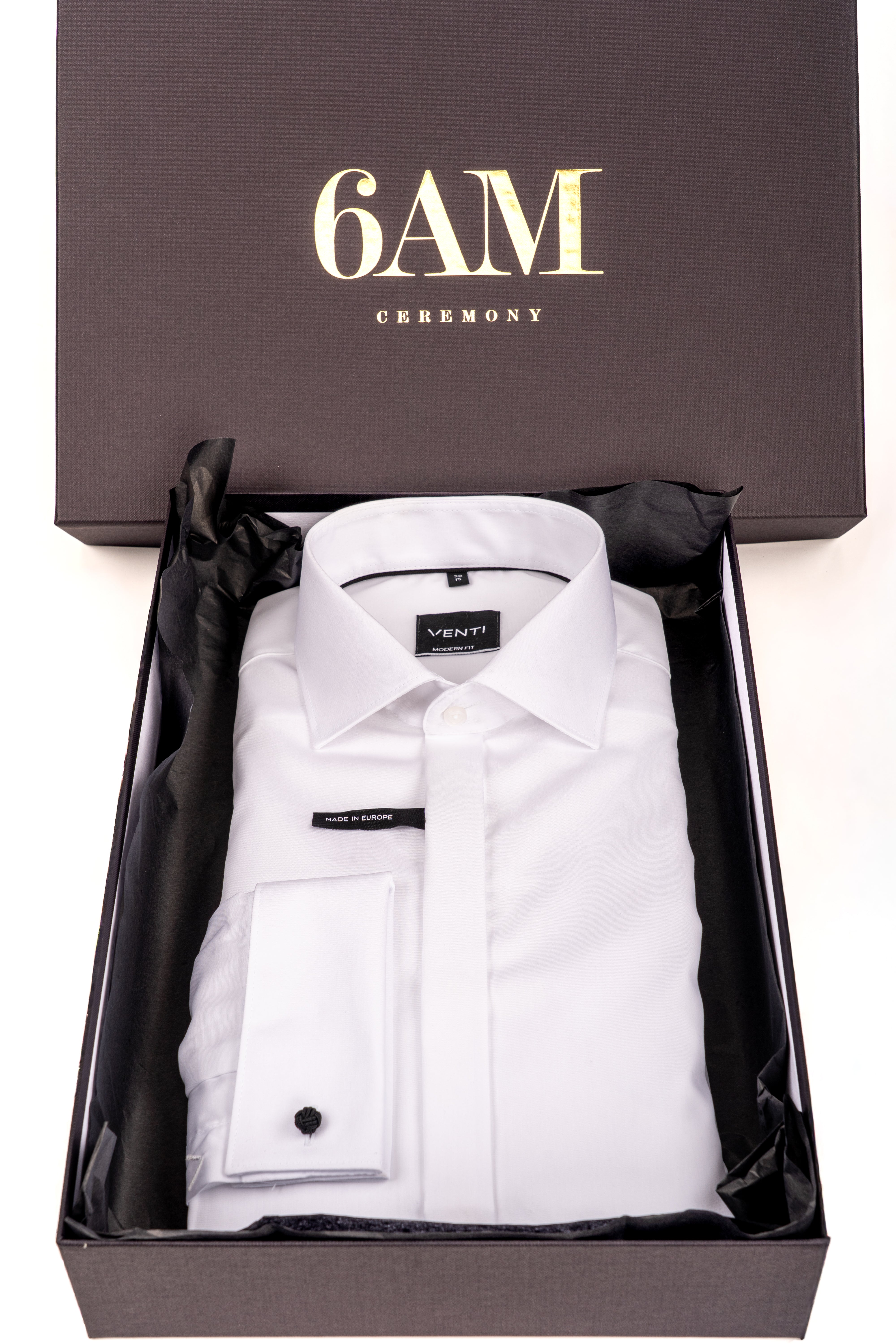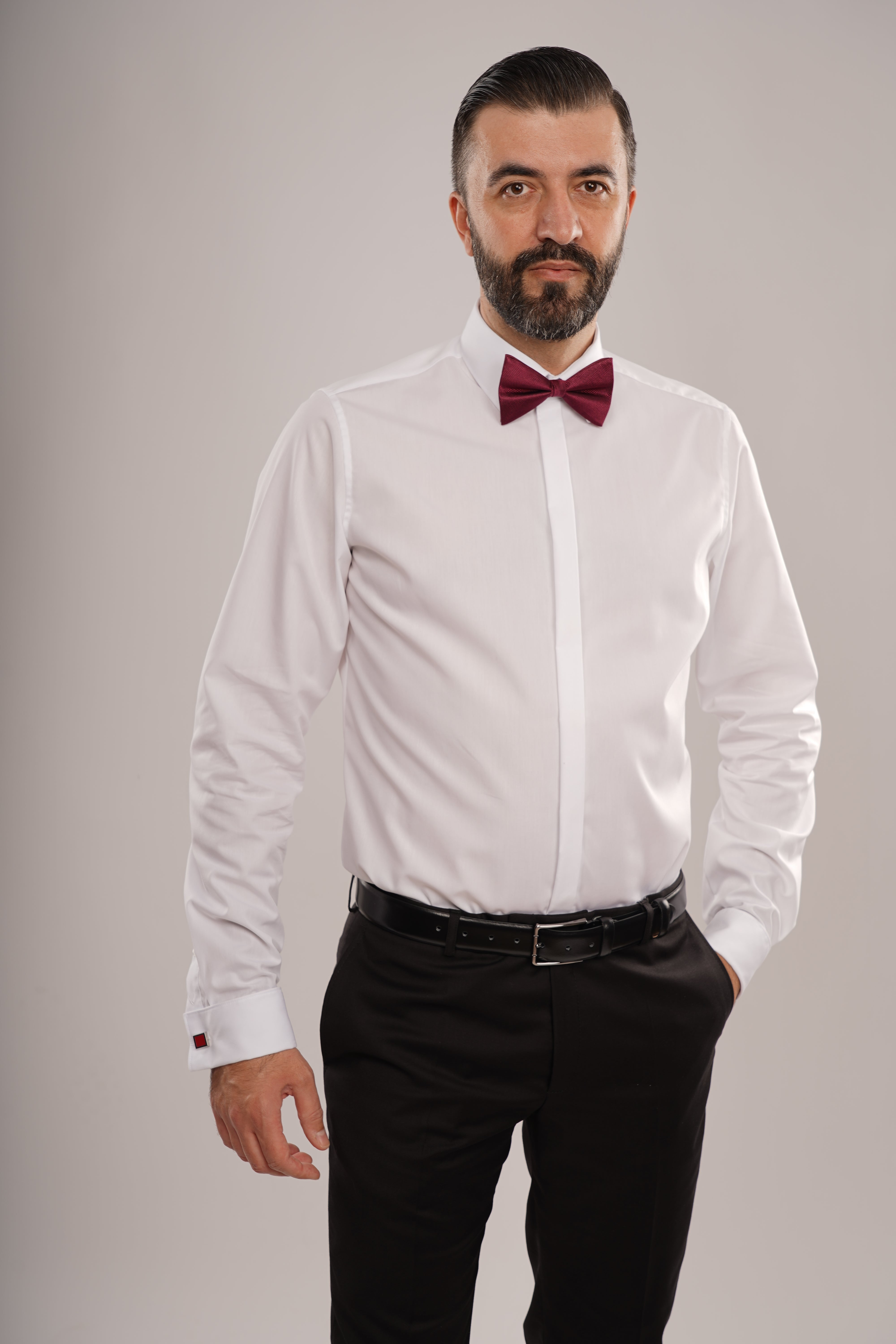 O cămașă elegantă pentru bărbați, realizată din bumbac superfin într-o nuanță impecabilă de alb, ideală pentru ținute formale, evenimente speciale și apariții business rafinate. Textura curată și gulerul clasic oferă un aspect premium, perfect pentru costume și accesorizare cu papion sau cravată.