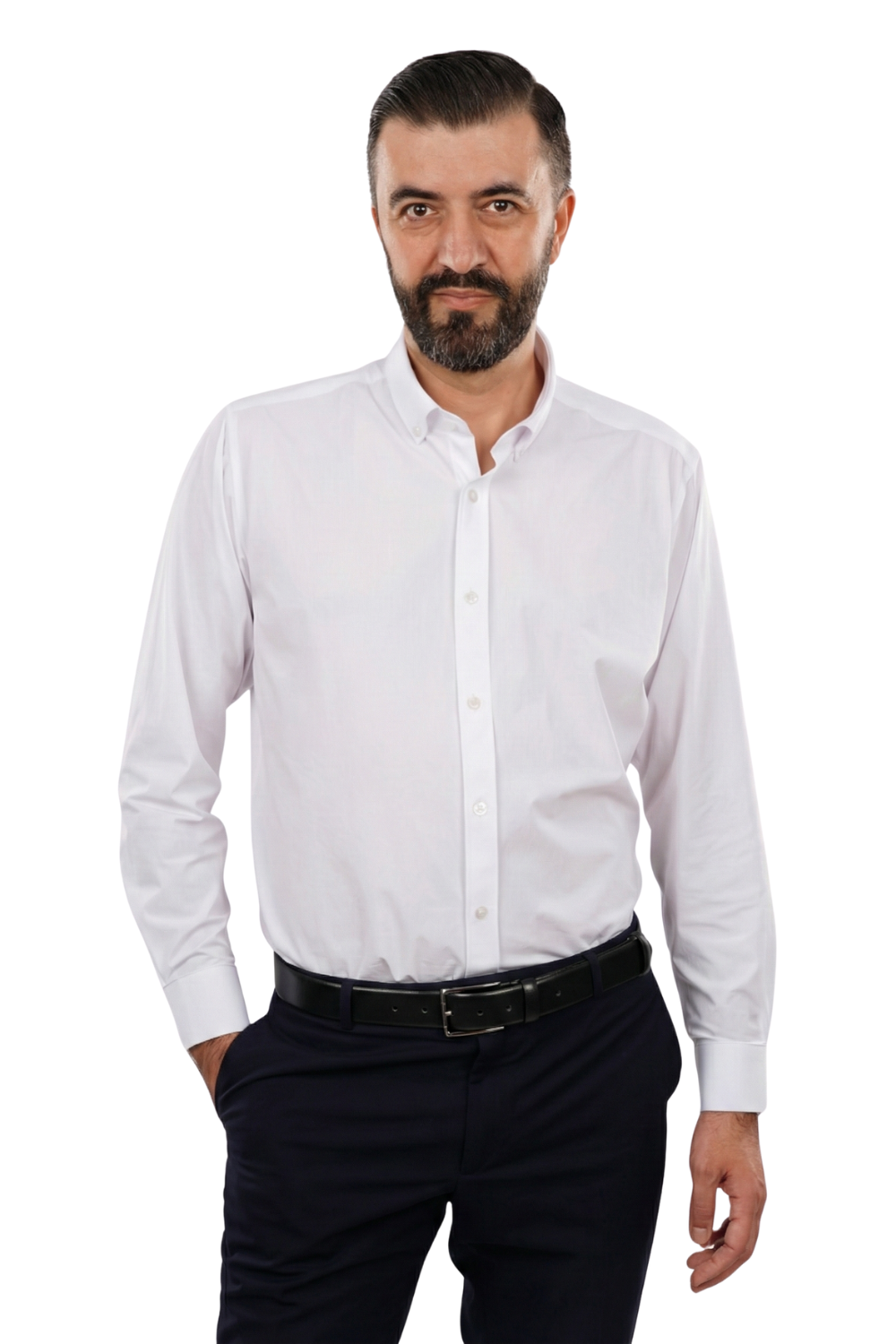 Confecționată din 93% bumbac și 7% elastan, cămașa oferă elasticitate superioară, confort excelent și mobilitate naturală. Croiala slim este disponibilă din XS până la 2XL, asigurând o așezare impecabilă pe corp. Dispune de mansete simple, guler prins cu nasturi și nasturi perlați integrați armonios în design. O piesă premium, concepută pentru bărbații care caută o cămașă albă elegantă, practică și foarte confortabilă.