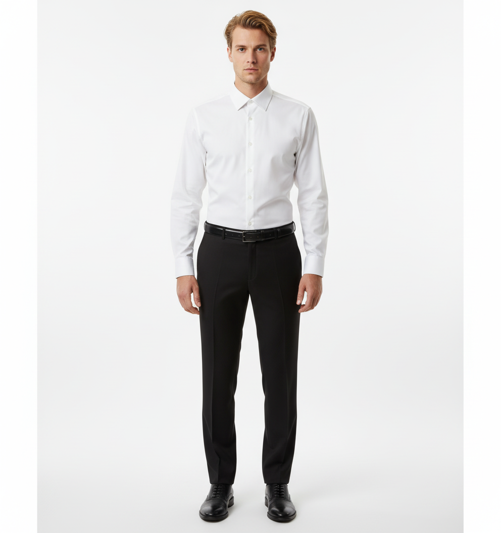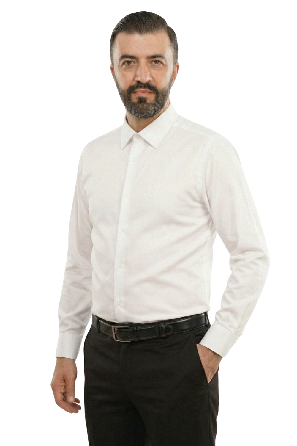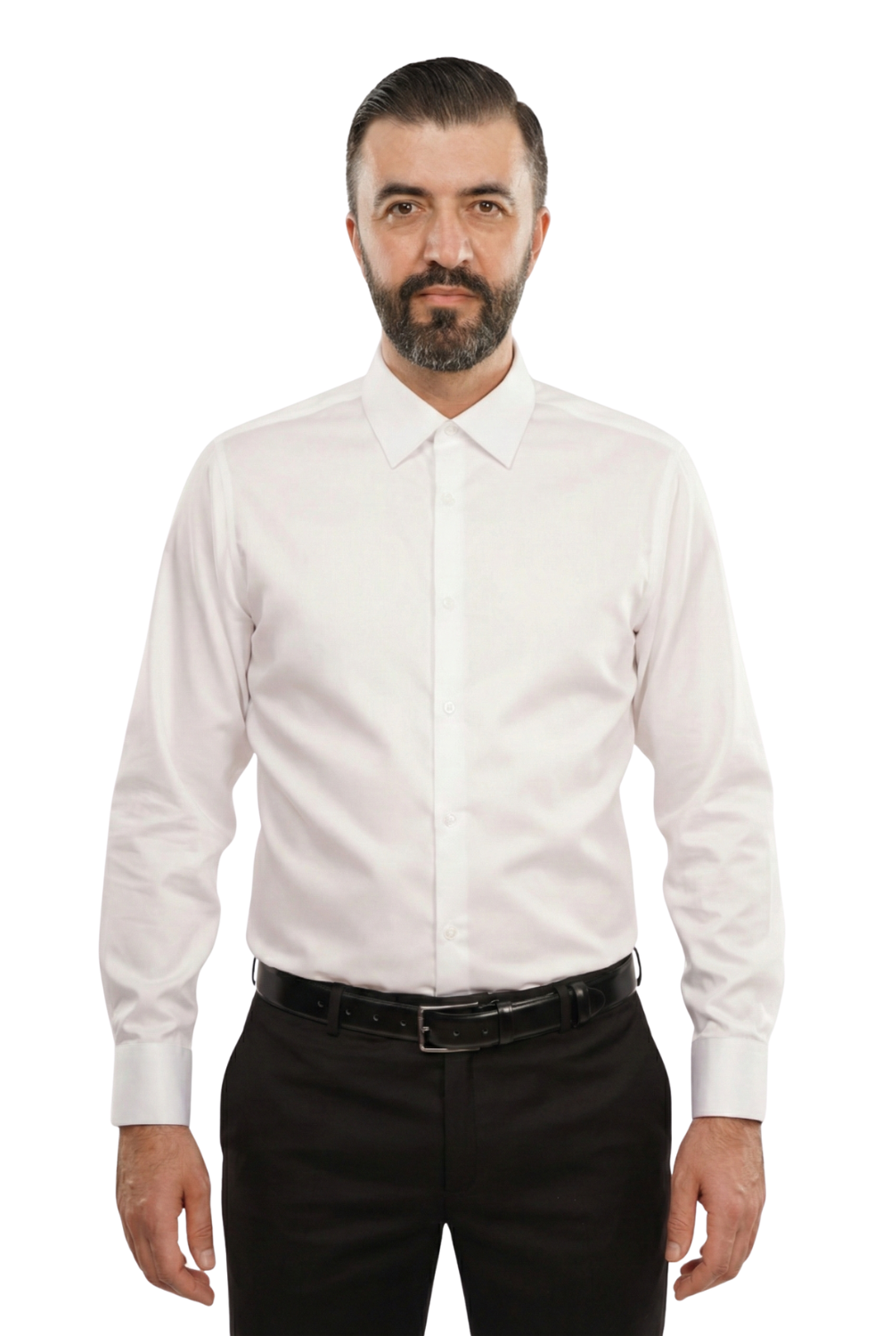 O cămașă elegantă pentru bărbați, realizată din bumbac superfin într-o nuanță pură de alb, ideală pentru ținute business și evenimente formale. Gulerul clasic și linia curată oferă un aspect premium, echilibrat și ușor de integrat în orice outfit elegant.