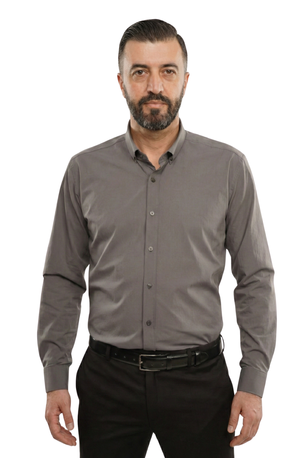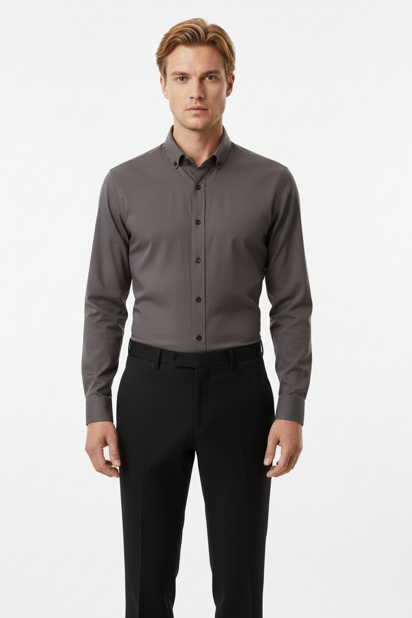 O cămașă elegantă pentru bărbați, într-o nuanță modernă de gri, definită de gulerul button-down și de stilul rafinat, potrivit pentru ținute smart-casual și business relaxed. Designul curat și detaliile discrete îi conferă un aspect premium, ideal pentru cei care preferă o camasă versatilă și contemporană.