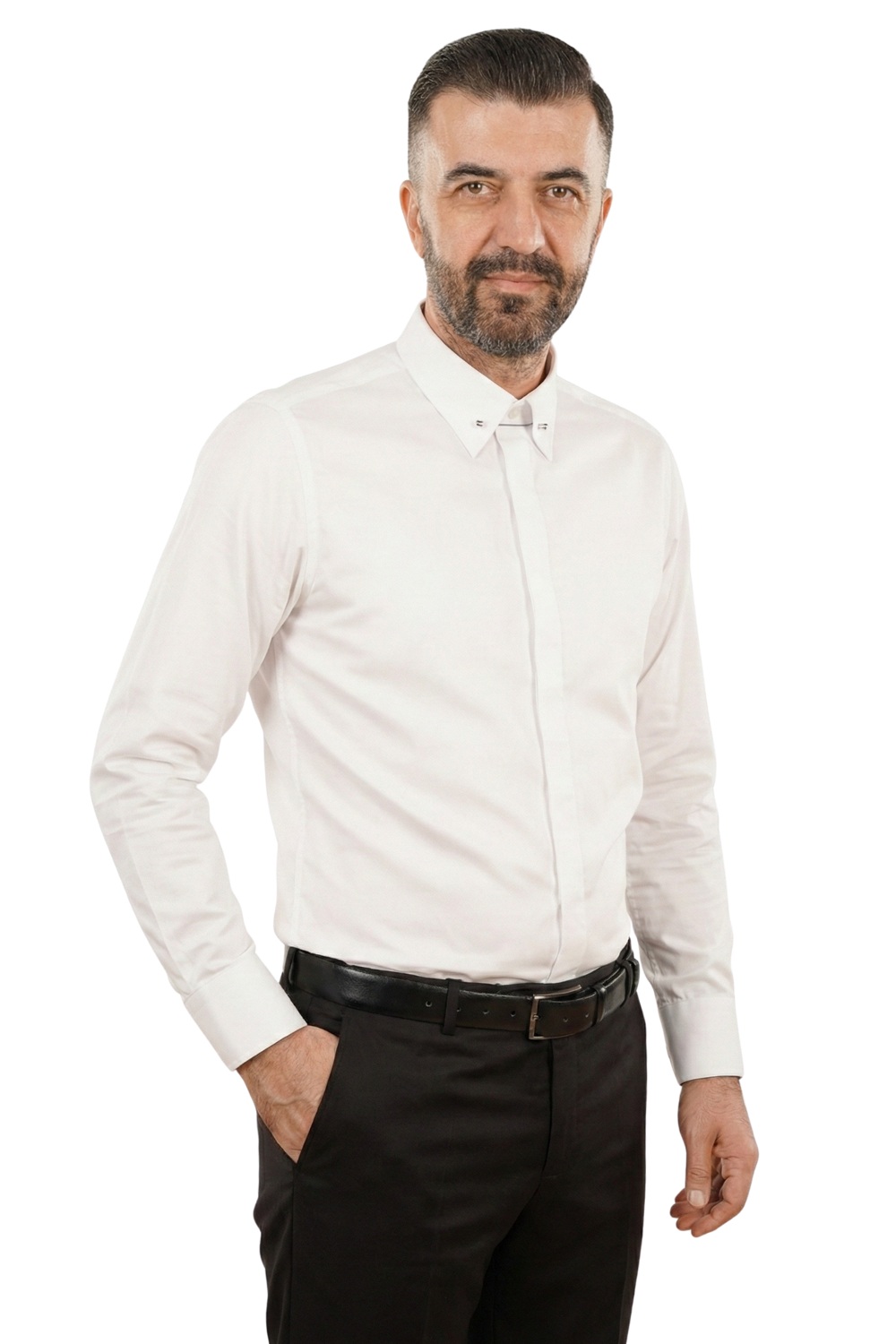 Cămașă Bărbați Albă cu Guler Pin - 100% Bumbac