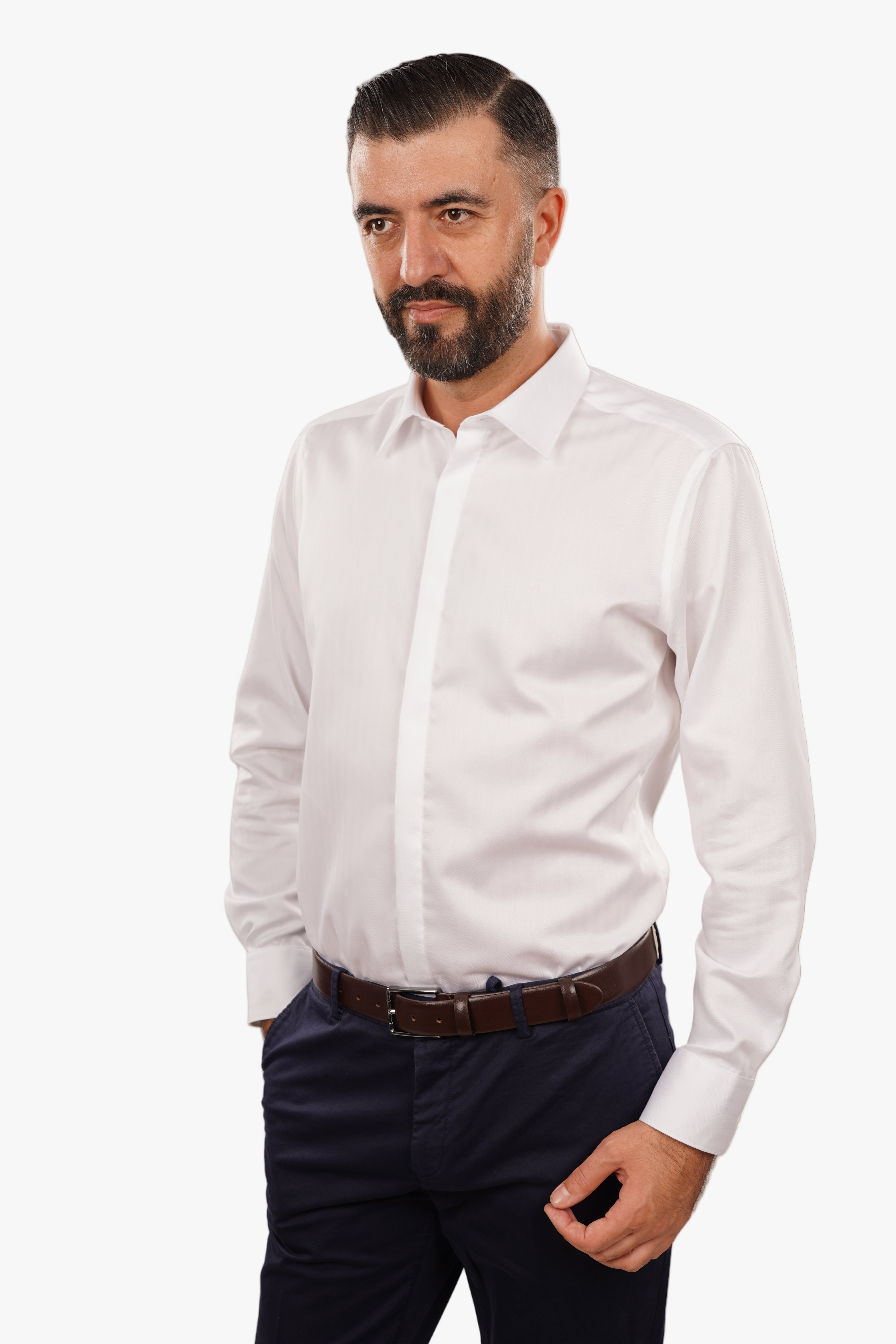 Cămașă Bărbați Albă Clasică cu Nasturi Acoperiți 6AM