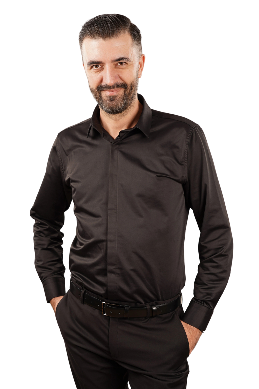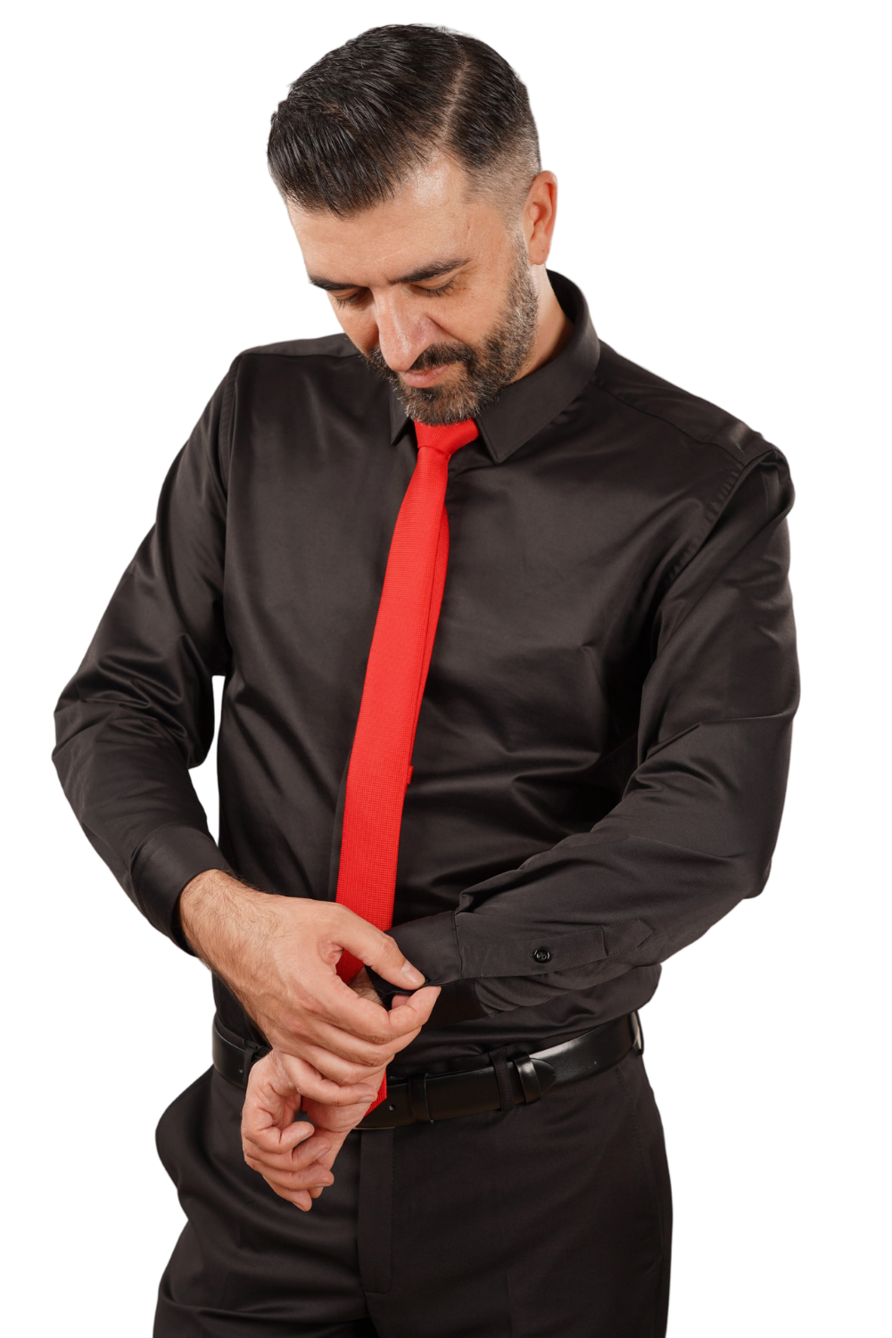 Elegantă și impunătoare, această cămașă neagră exprimă rafinament discret și siguranță de sine. Designul cu nasturi acoperiți și croiala slim fit oferă o linie curată și modernă, ideală pentru evenimente formale, cine elegante sau ținute de seară.
