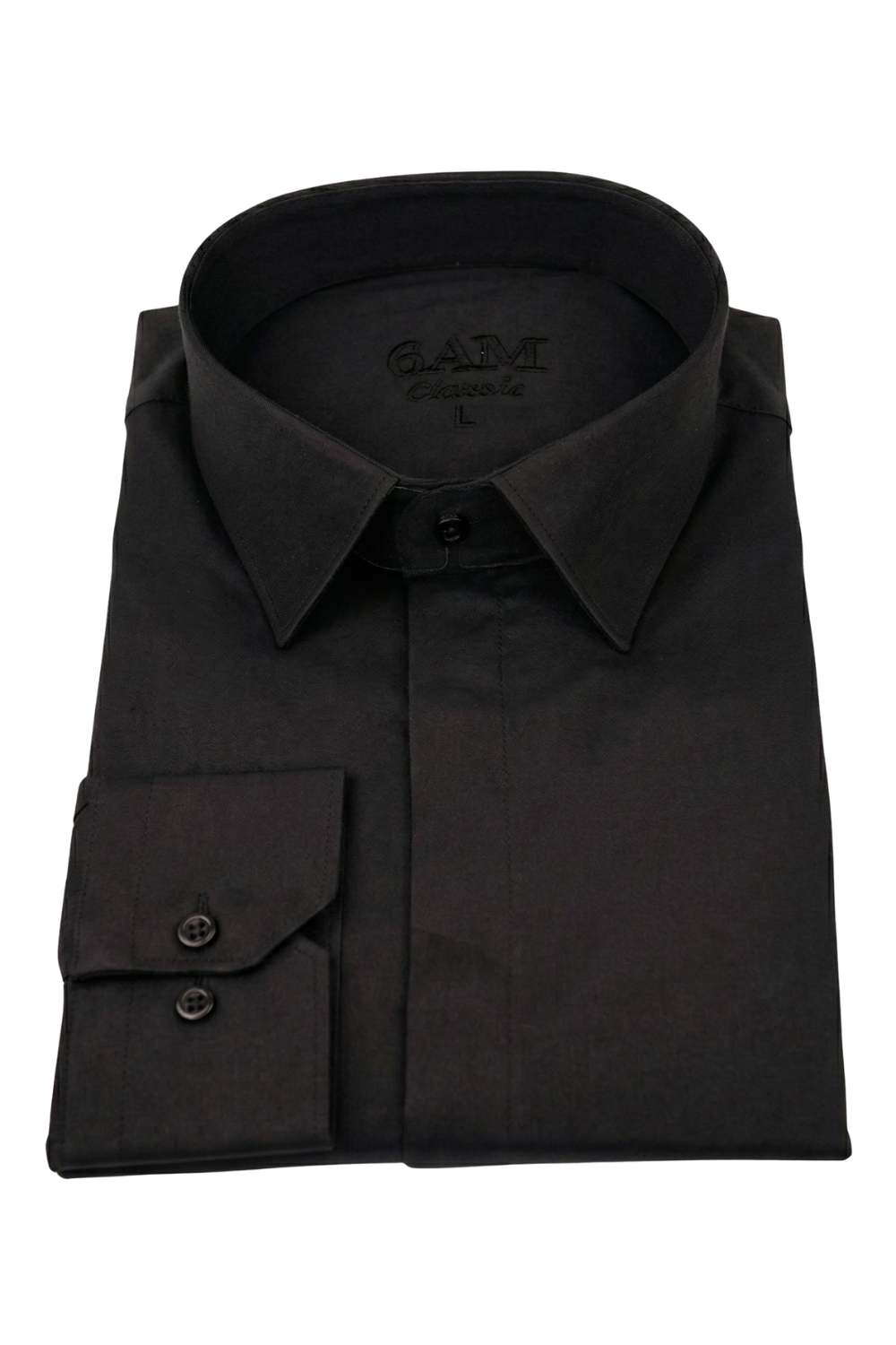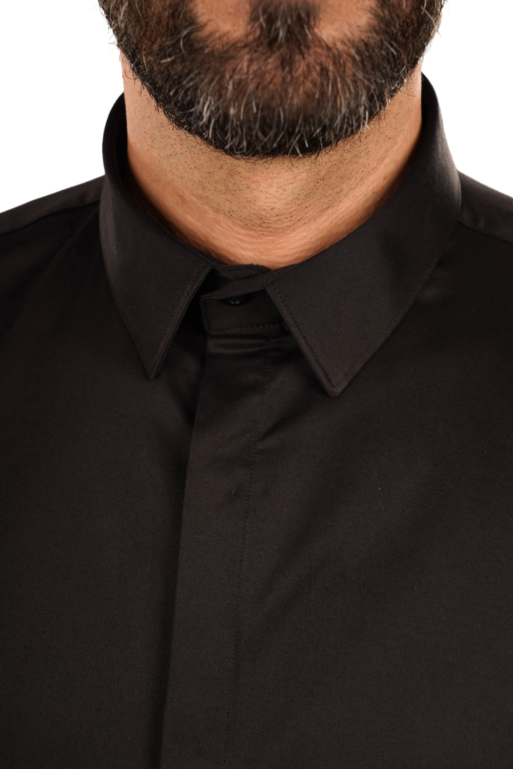 Cămașă Bărbați Neagră din Bumbac cu Nasturi Acoperiți