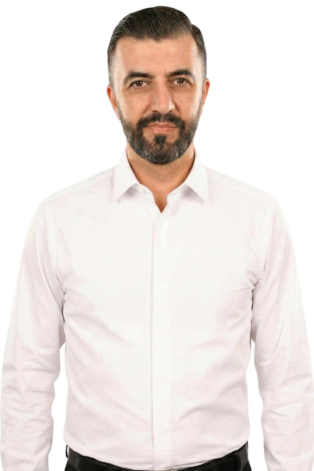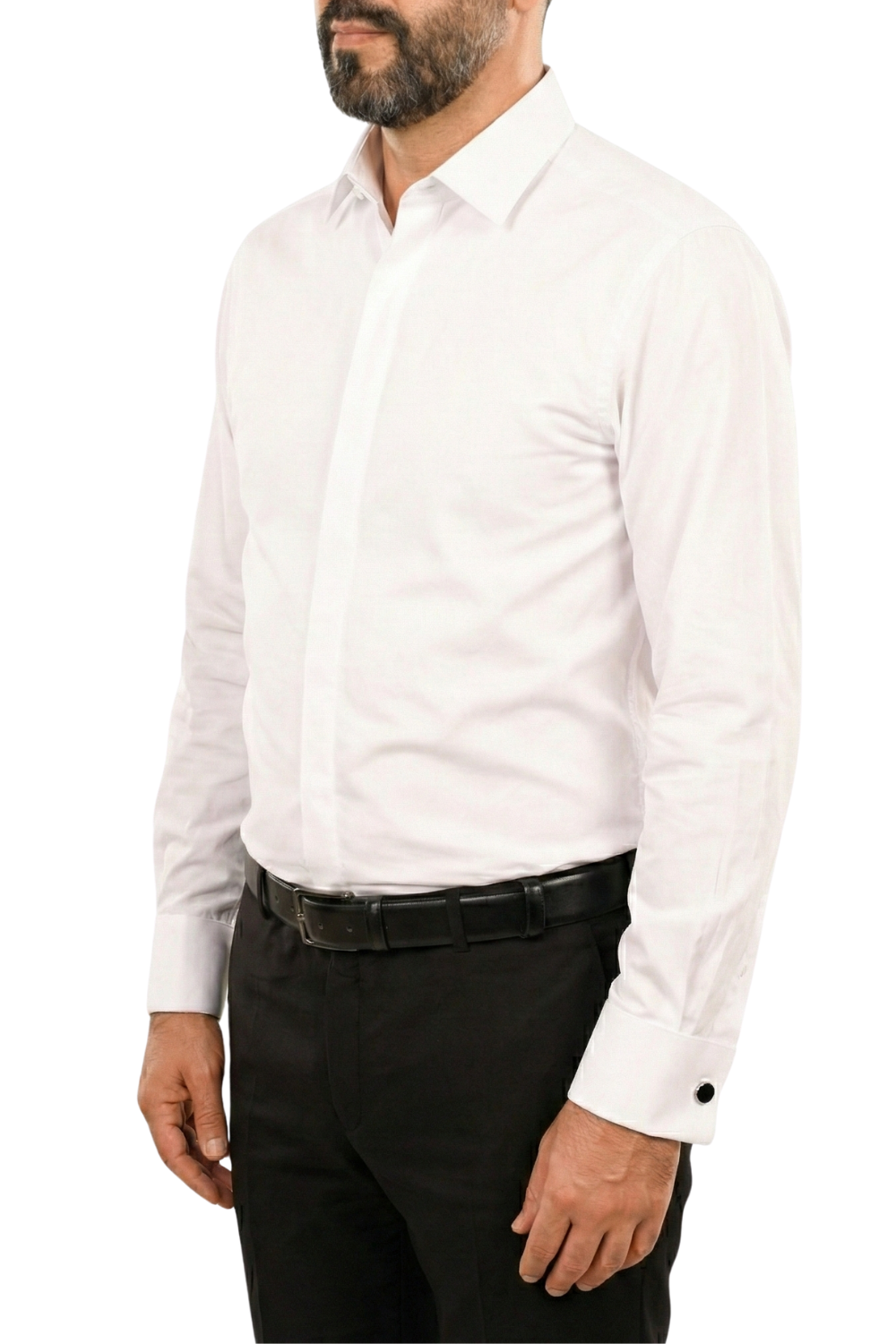 Cămașă Bărbați Albă cu Nasturi Acoperiți și Manșete pentru Butoni
