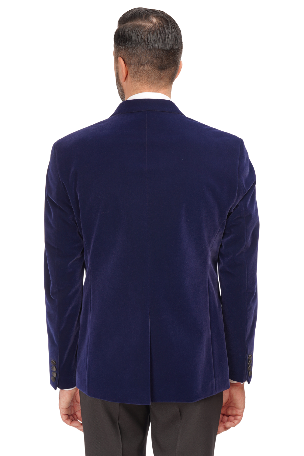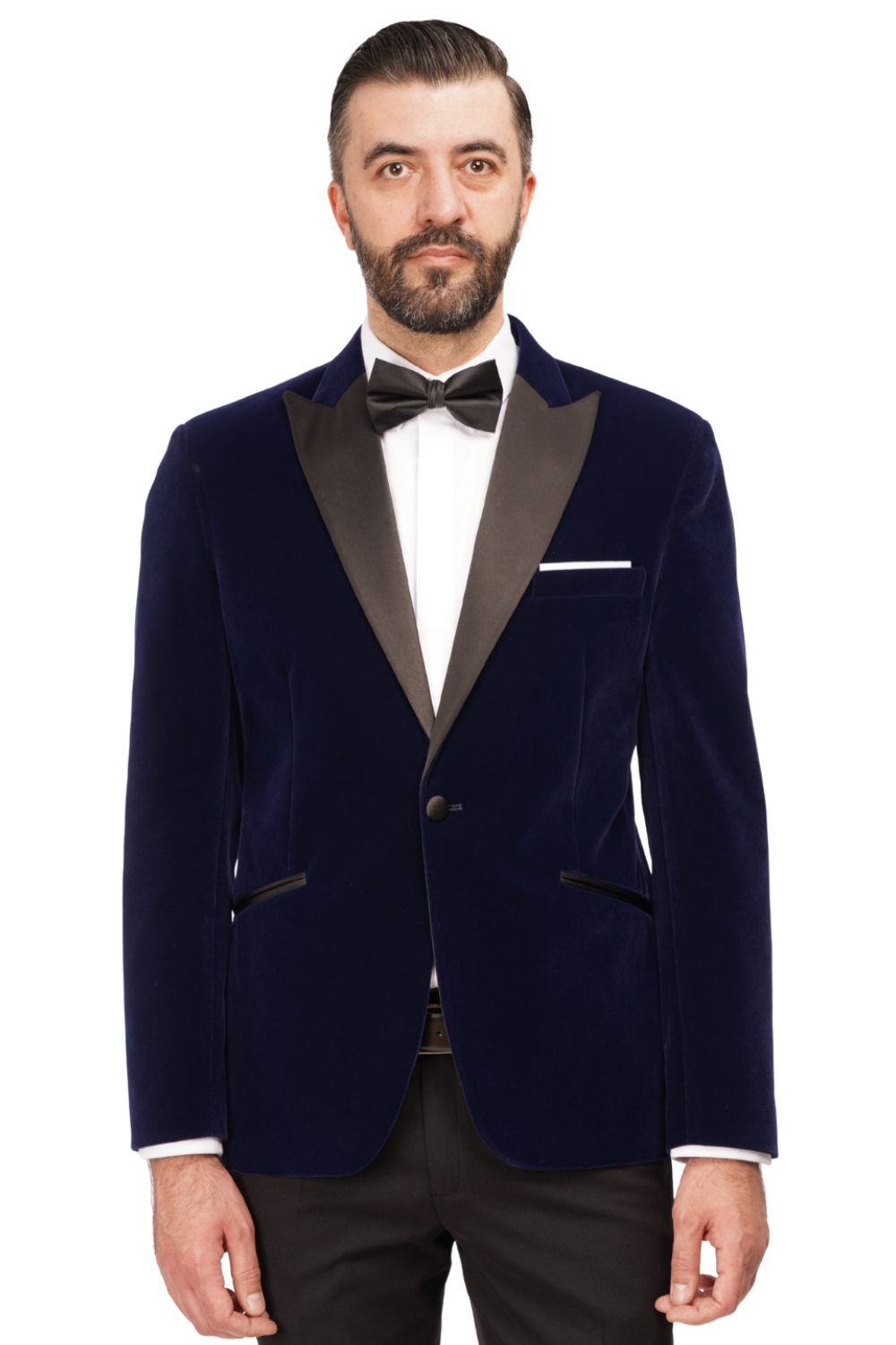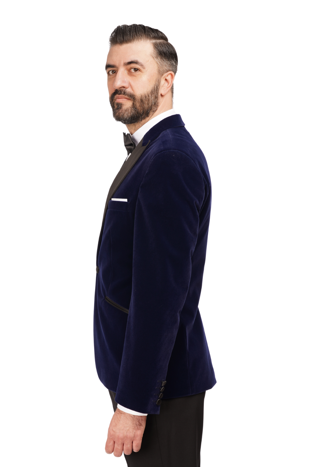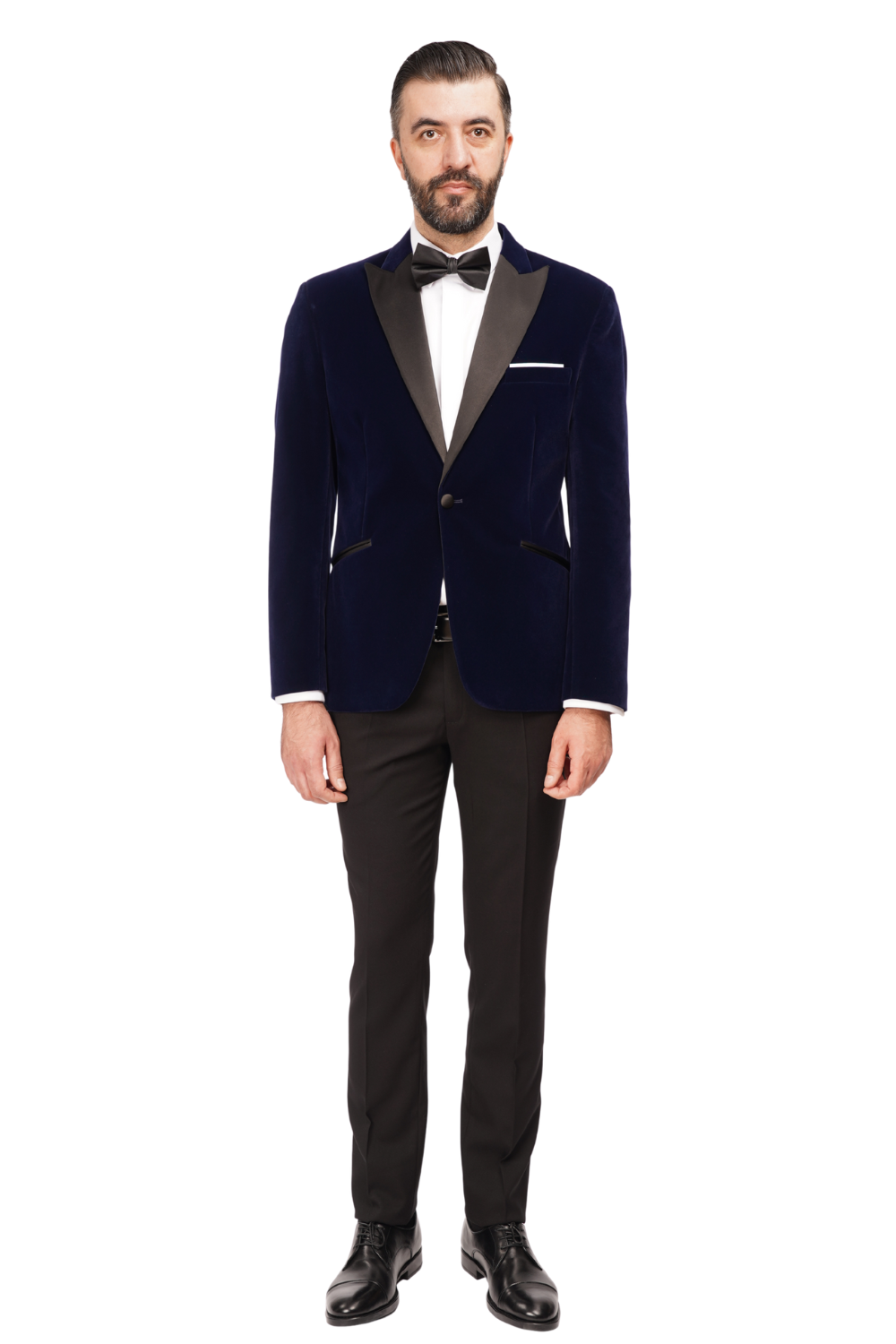 Smoking cu Sacou din Catifea Bleumarin și Pantaloni Negri 6AM310