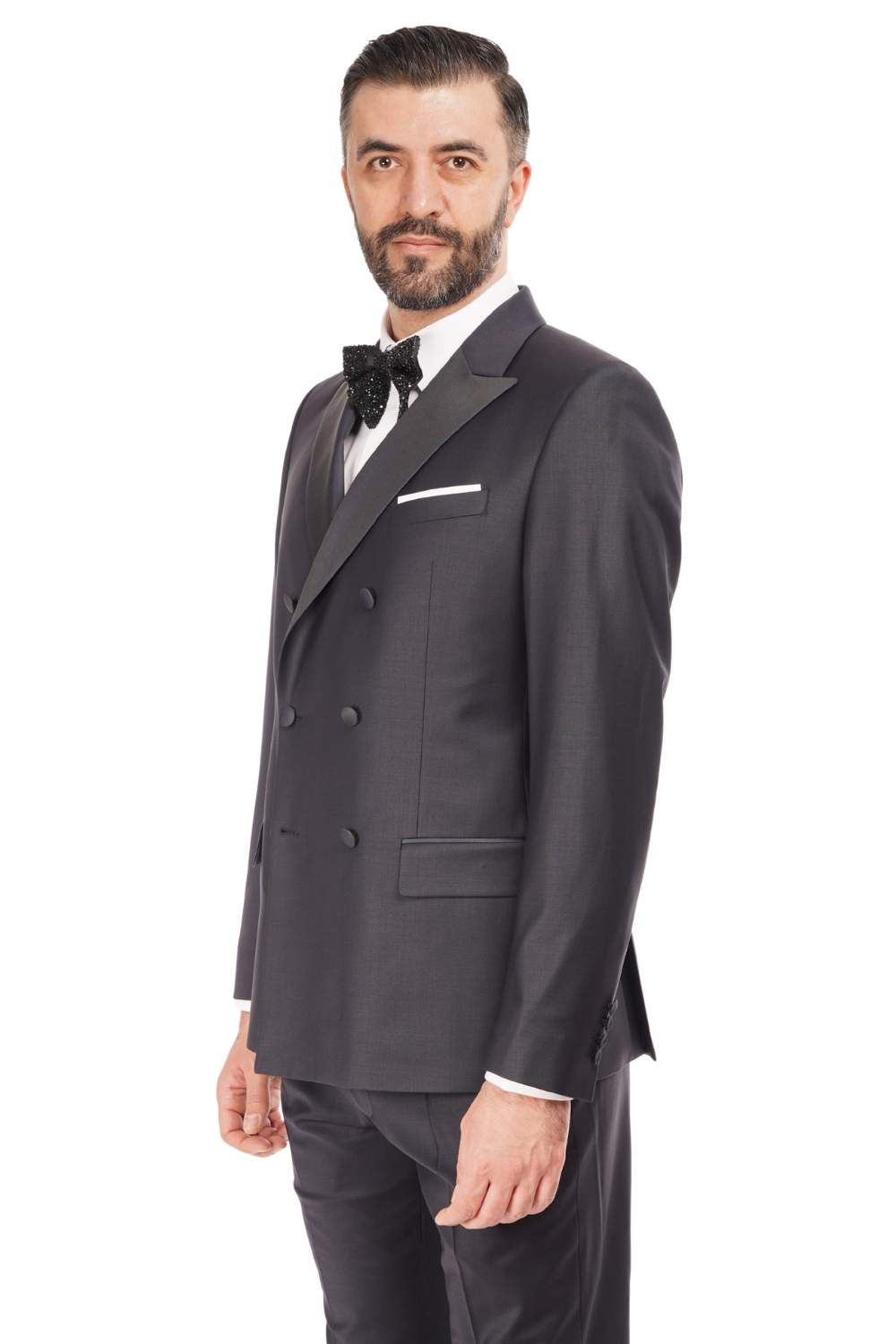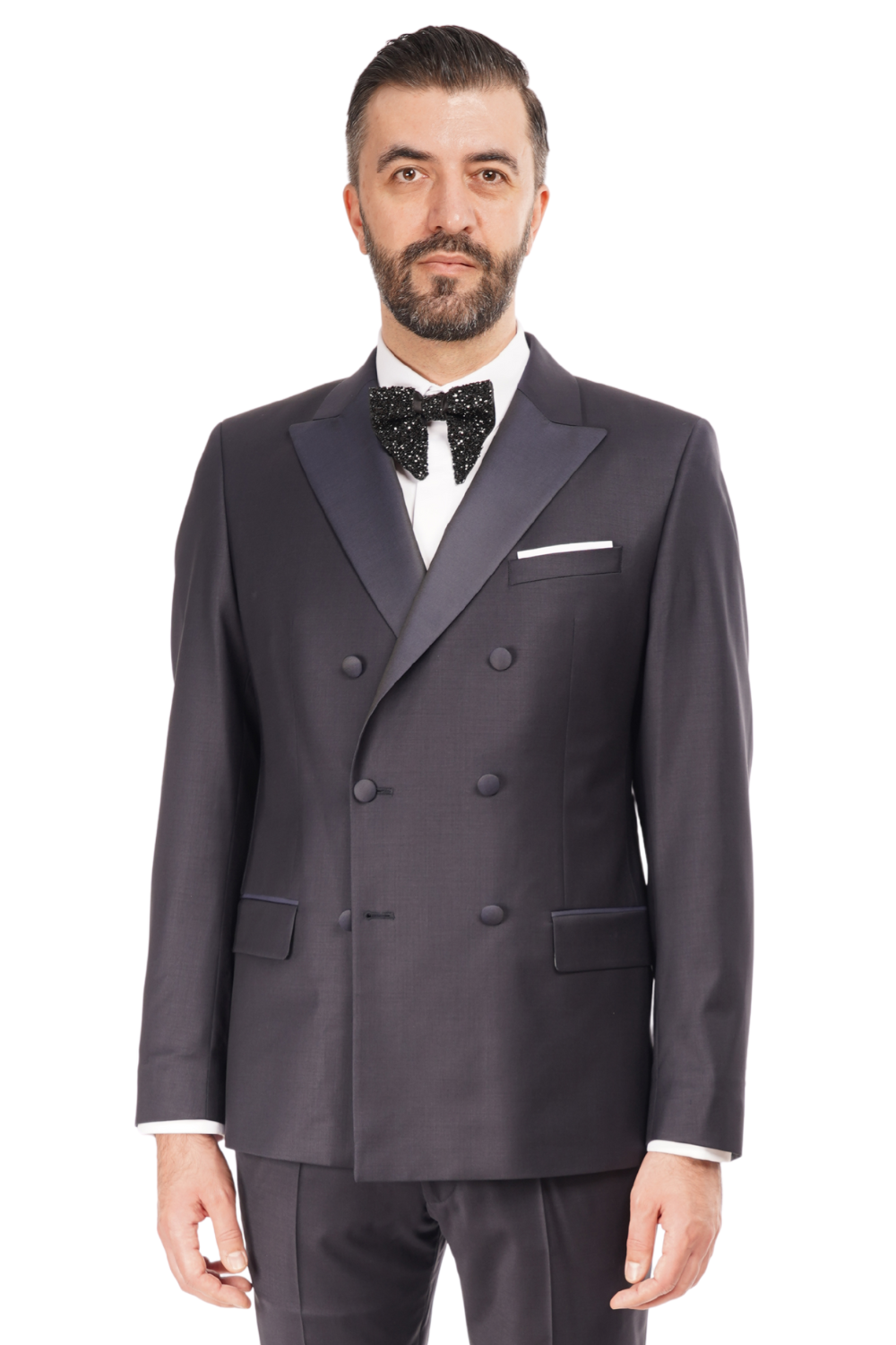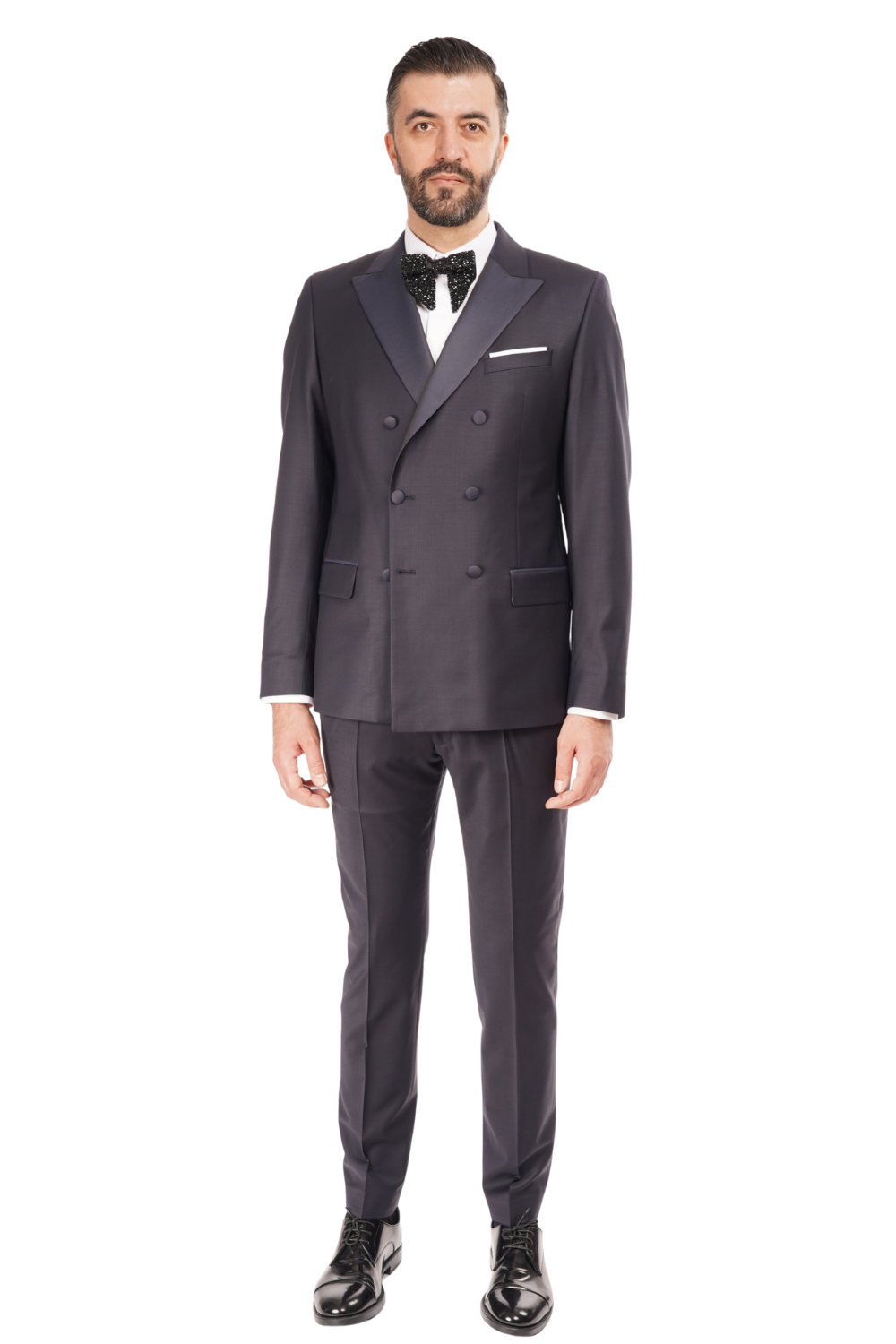 Smoking la Două Rânduri de Nasturi din Lână Premium Extrafină - Bleumarin - 1009342