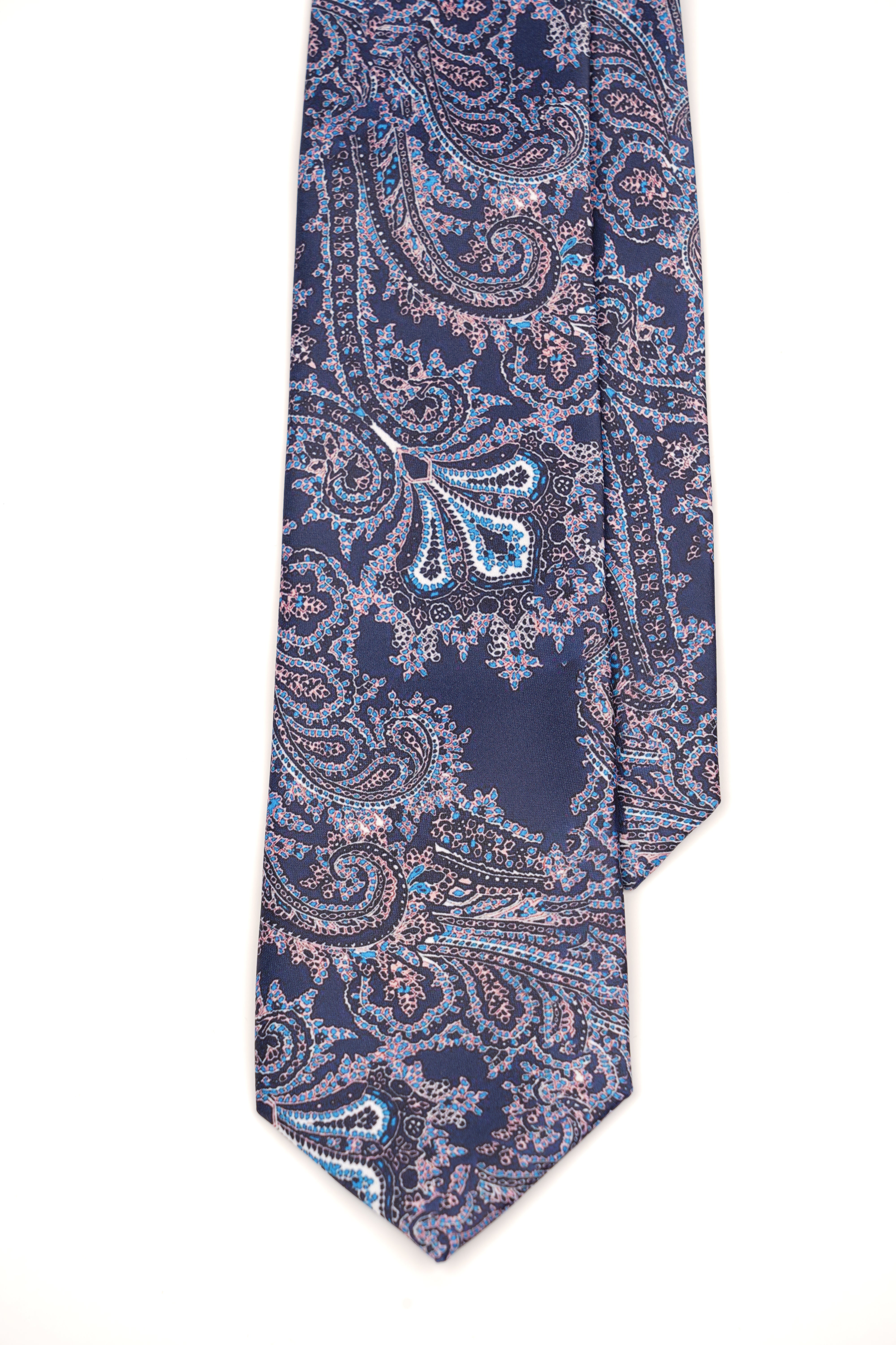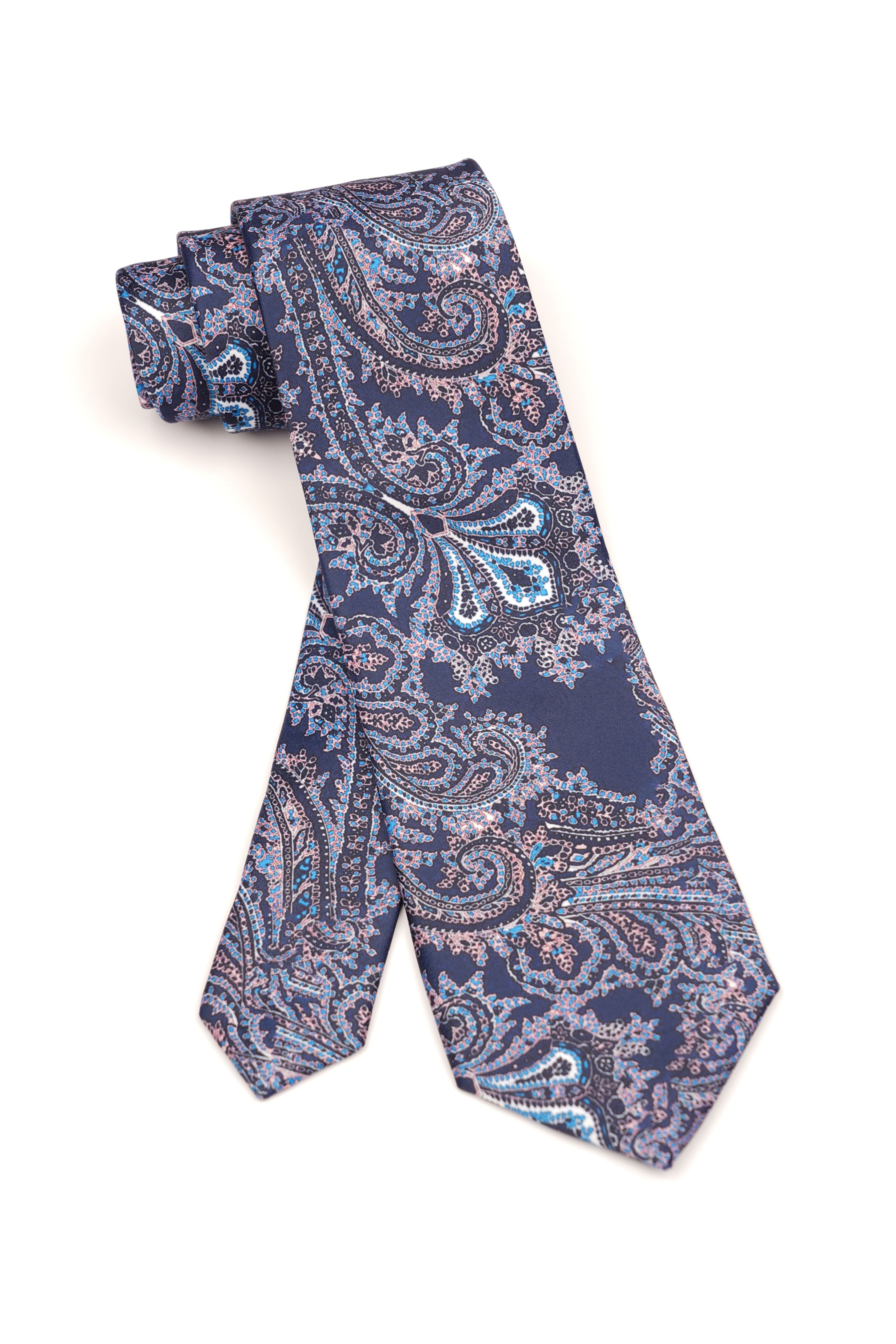 Cravată clasică paisley în nuanțe de albastru și roz pal