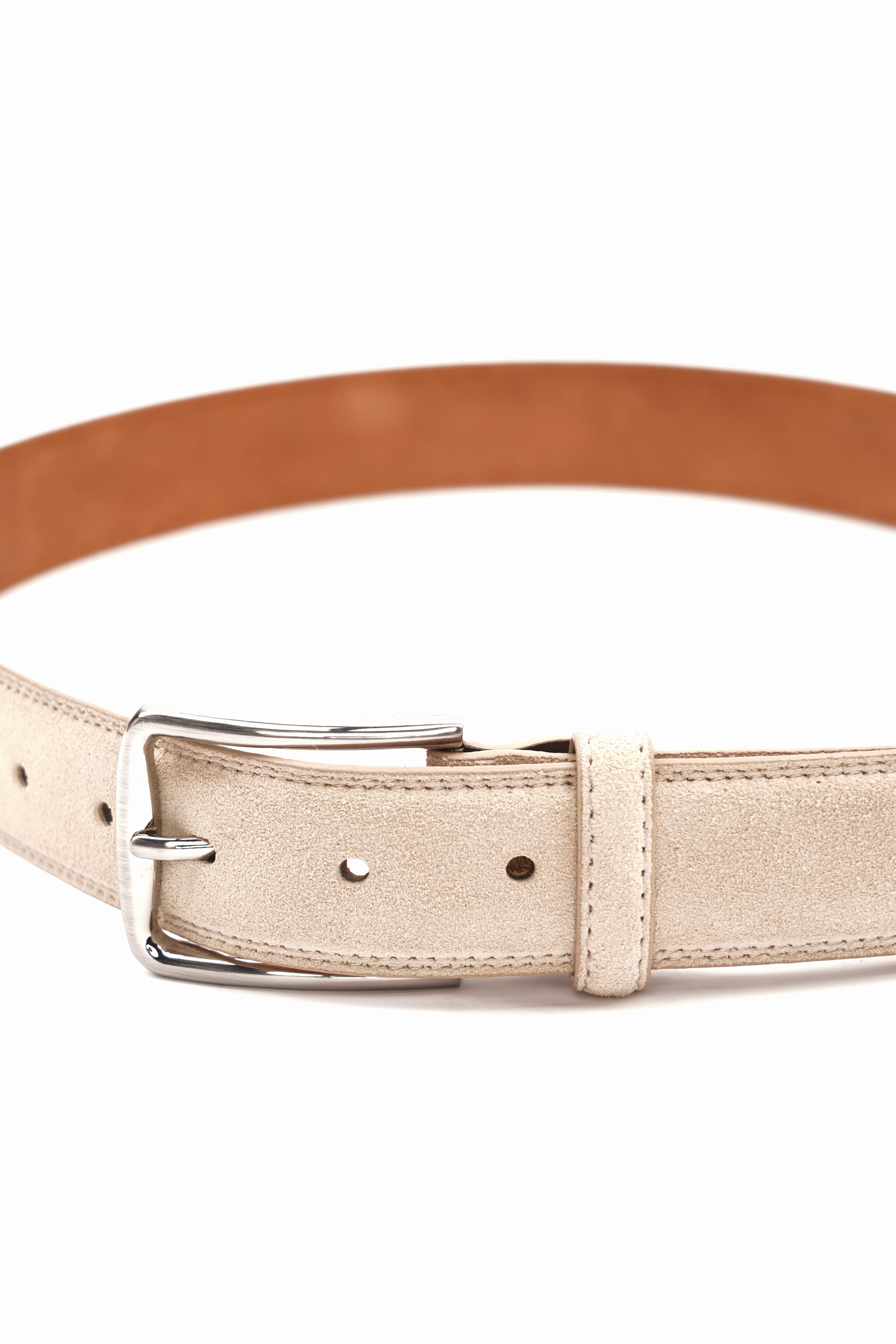 Această curea din piele întoarsă bej aduce o notă de rafinament discret oricărei ținute. Finisajul moale, catifelat, și tonul natural al culorii oferă un aspect elegant, ideal pentru un stil casual sofisticat.