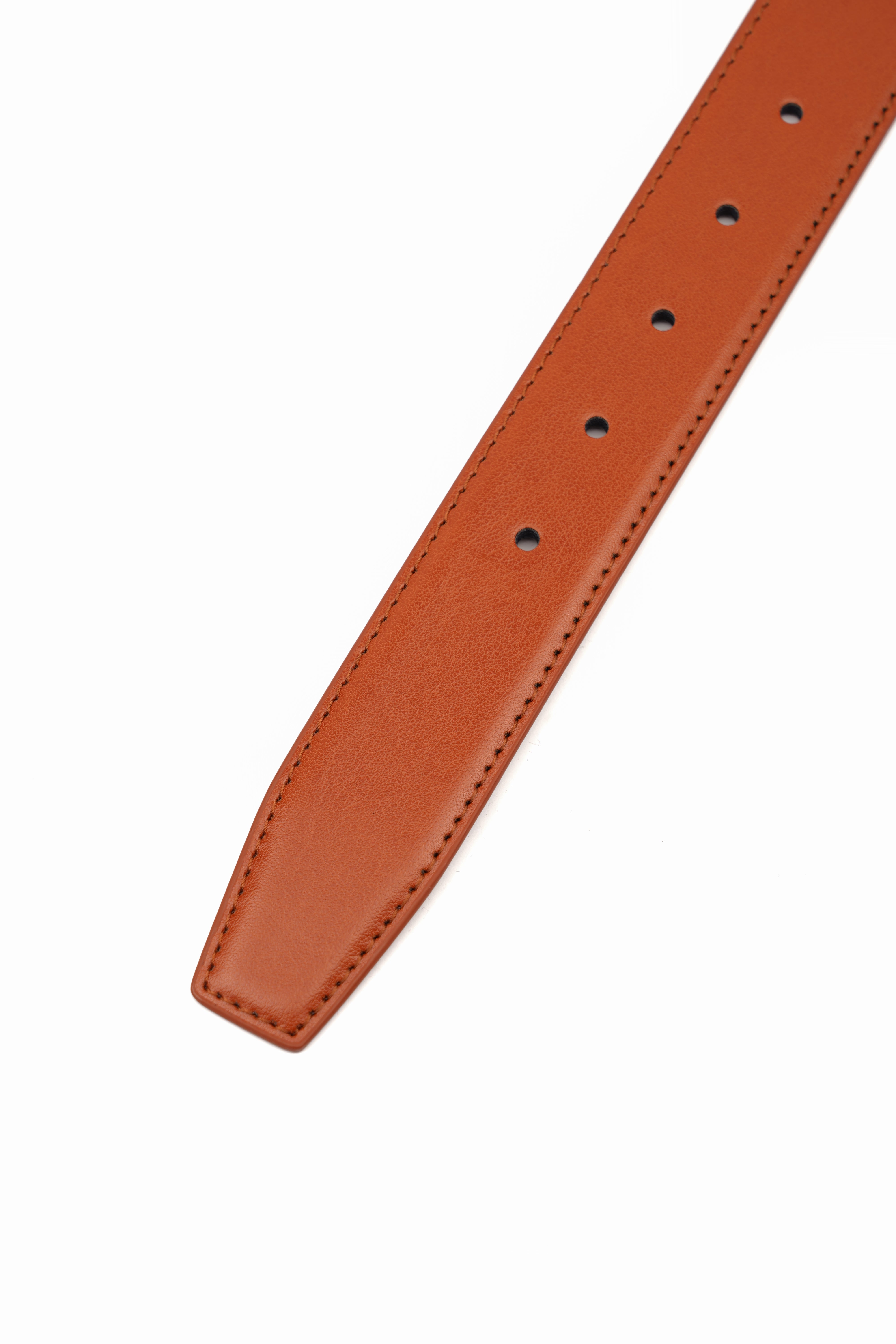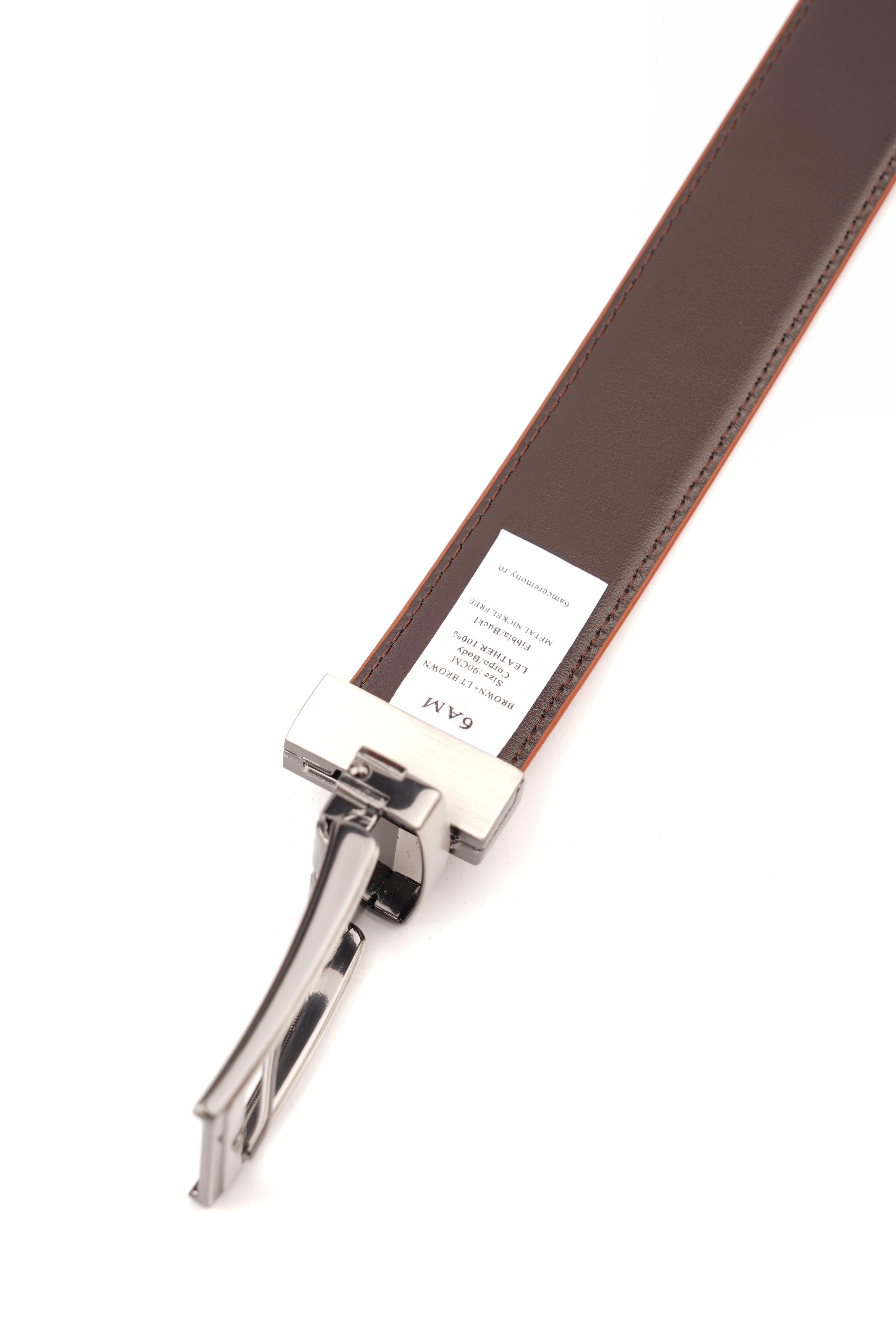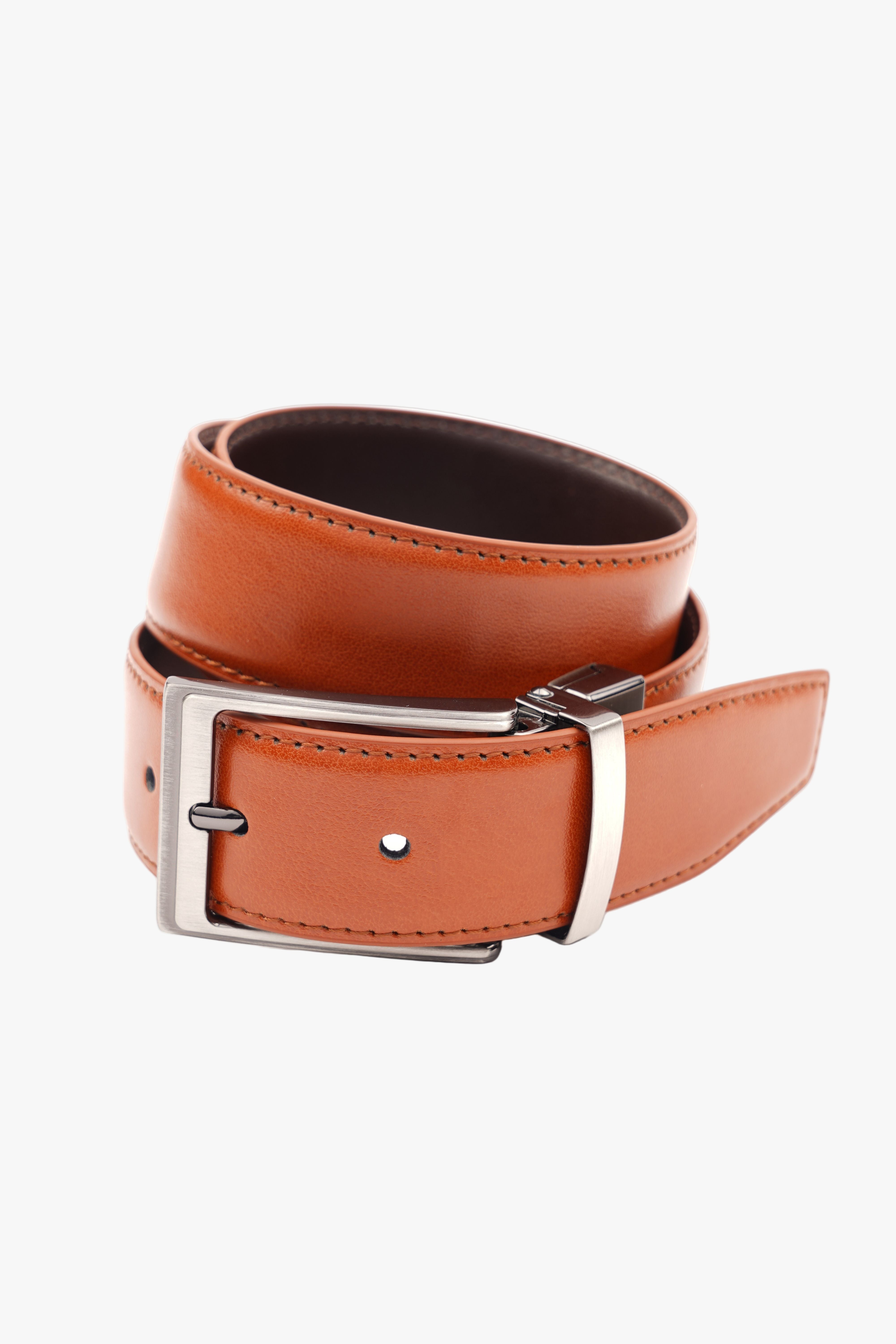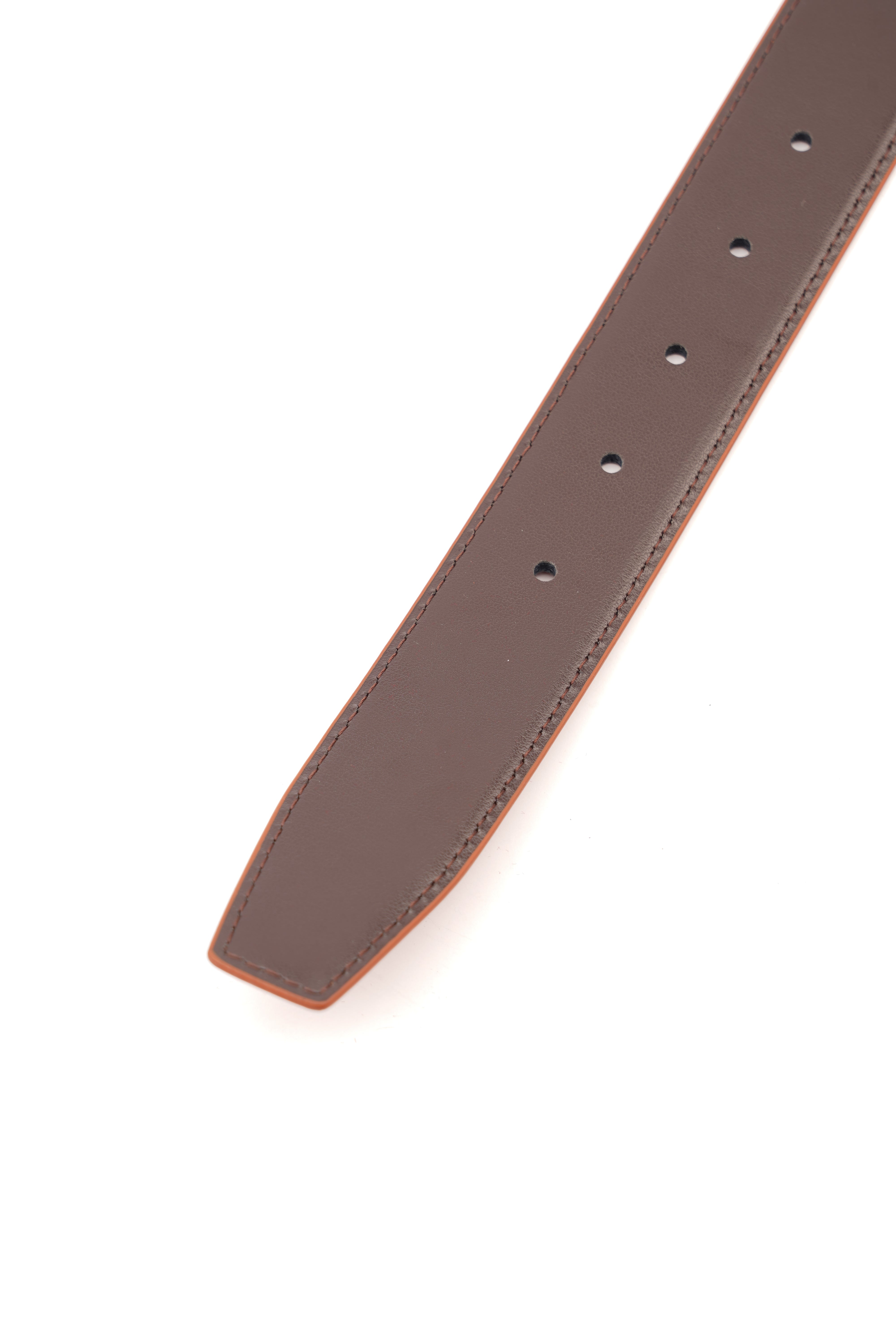 Această curea reversibilă din piele naturală îmbină rafinamentul clasic cu funcționalitatea modernă. Contrastul elegant dintre maro deschis și maro închis oferă versatilitate, permițând adaptarea rapidă la diferite ținute — de la costumele business la combinații casual rafinate.