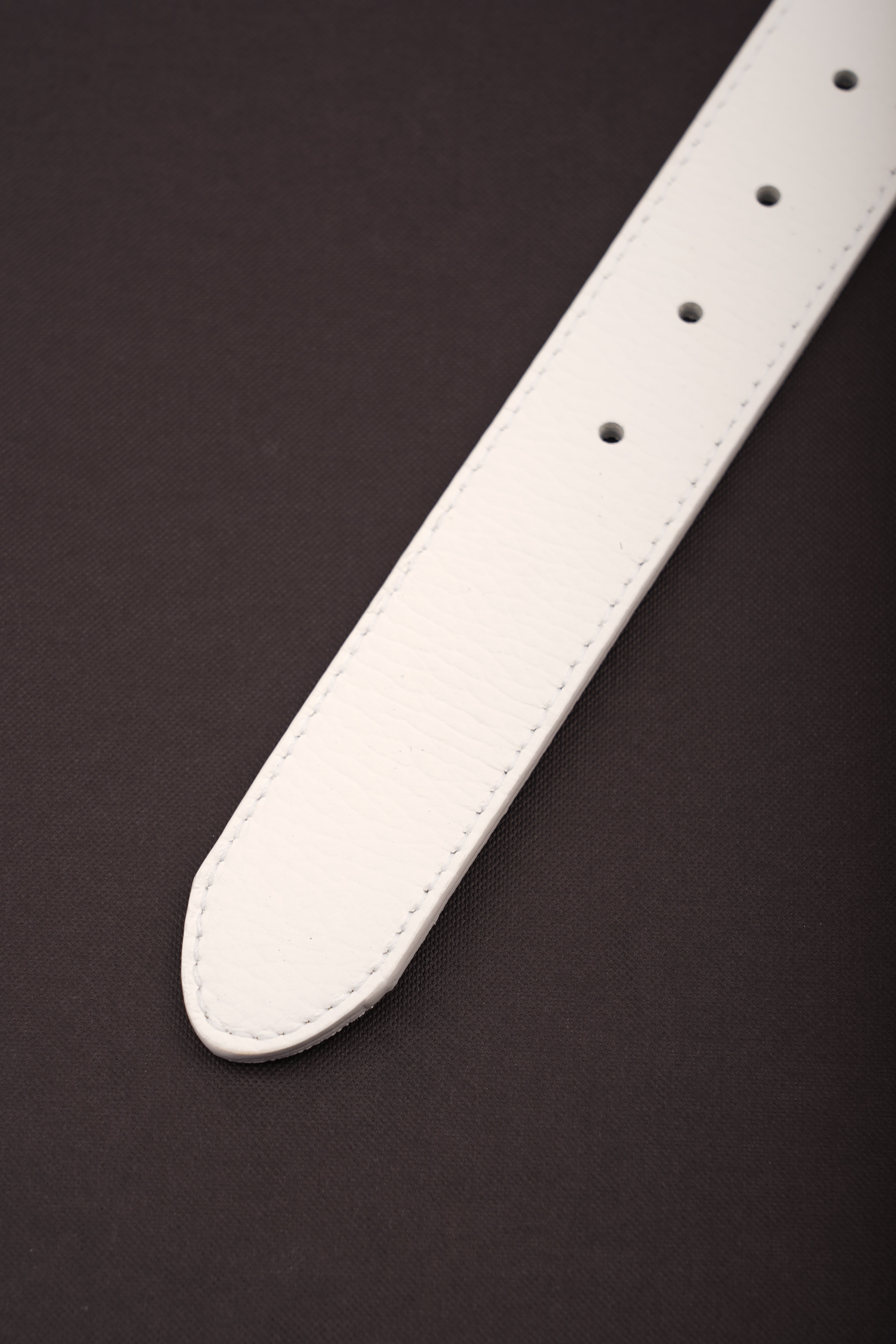 O alegere îndrăzneață și rafinată, această curea din piele naturală albă aduce un plus de eleganță oricărei ținute. Tonul luminos și designul curat inspiră rafinament contemporan, fiind perfectă pentru ținutele de vară, evenimentele speciale sau combinațiile casual premium.