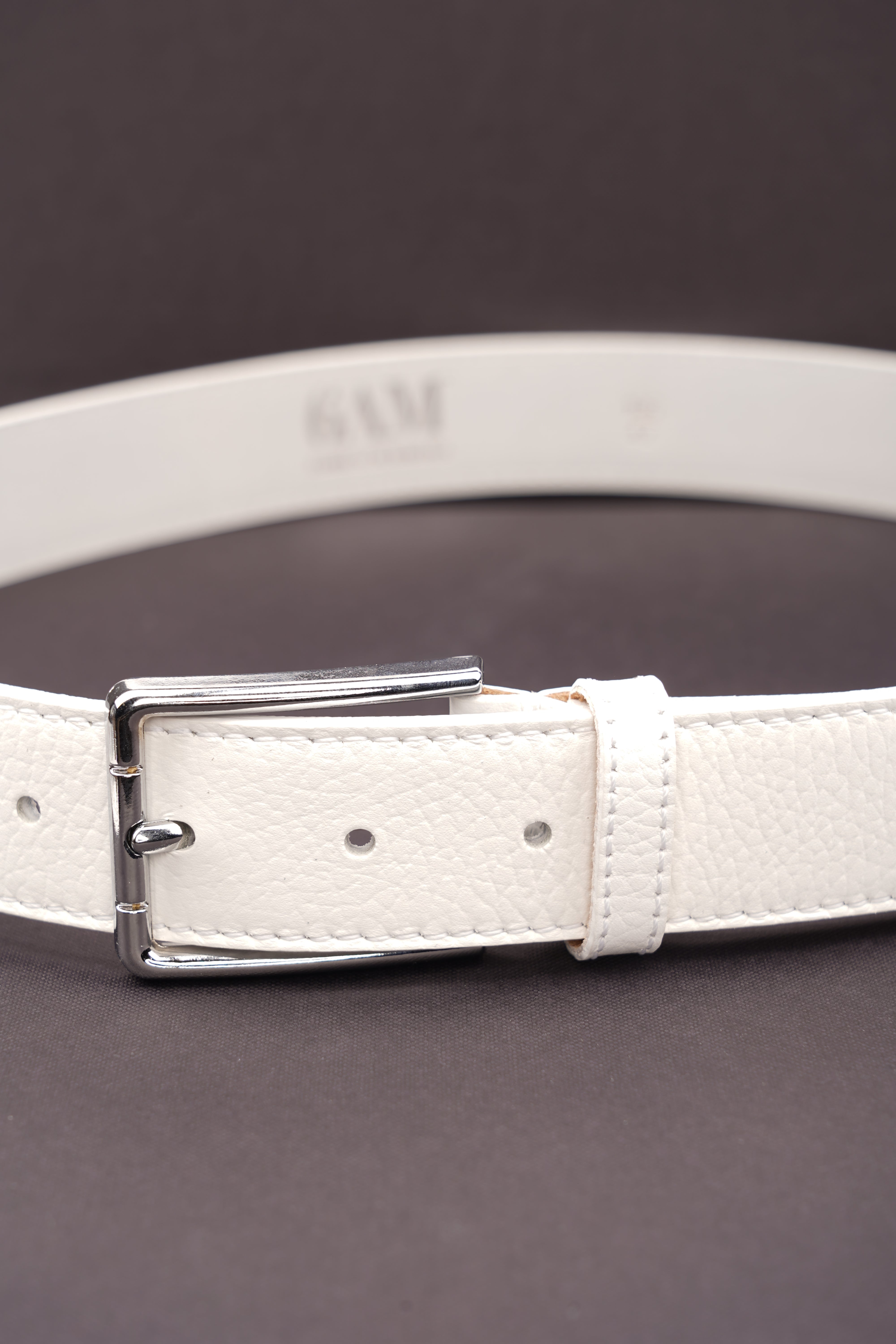 • Curea Bărbați din Piele Naturală Albă cu Cataramă Metalică Lucioasă