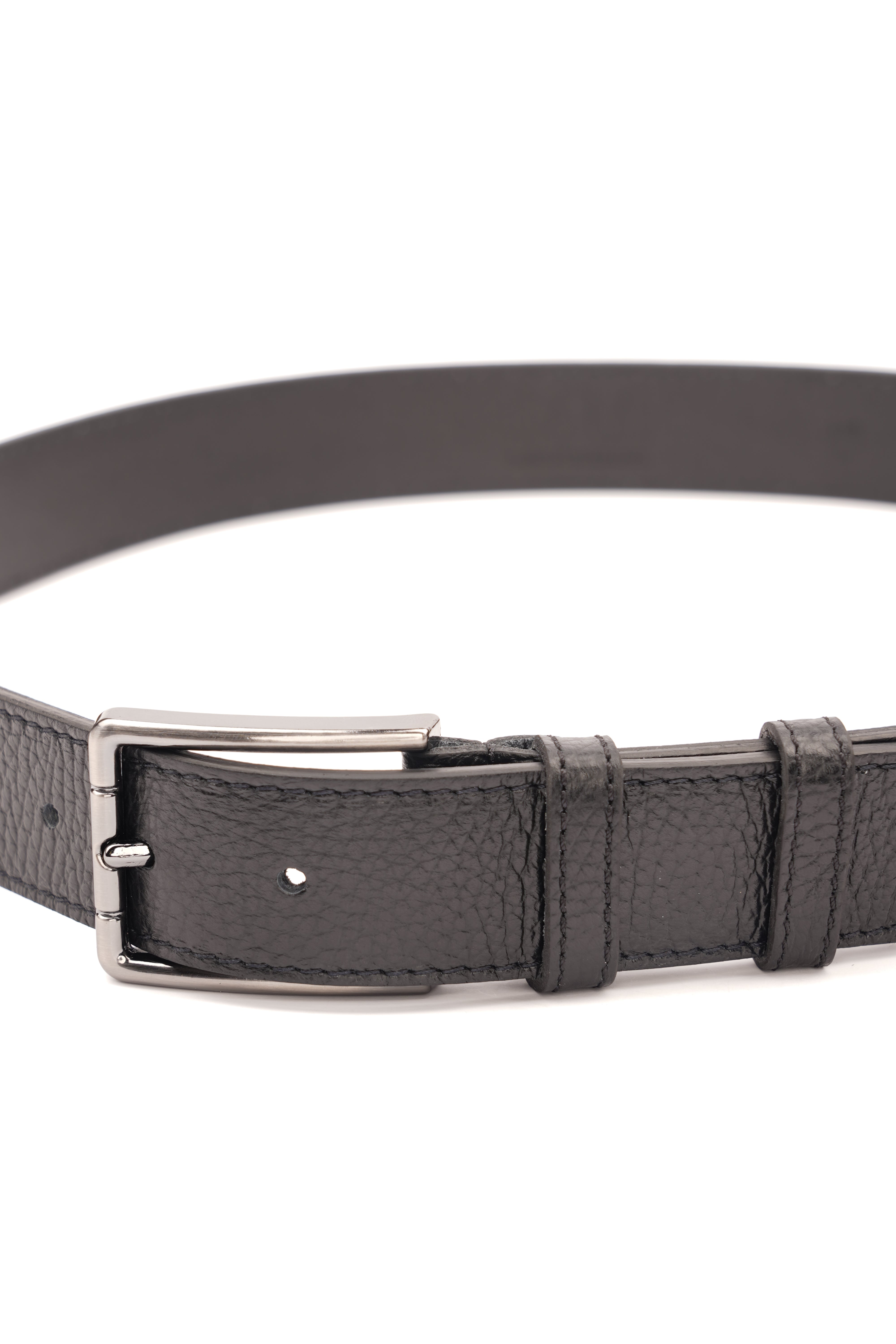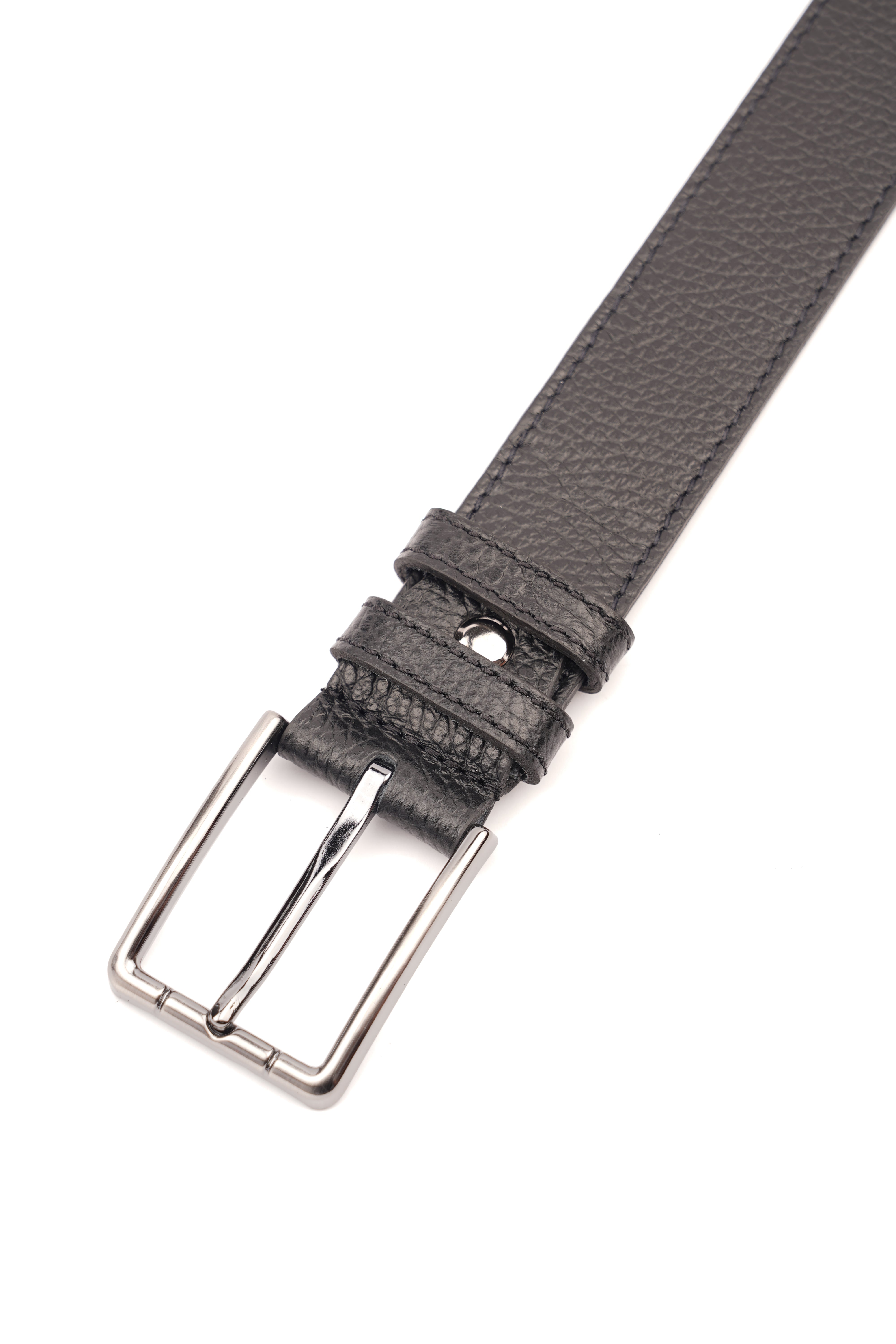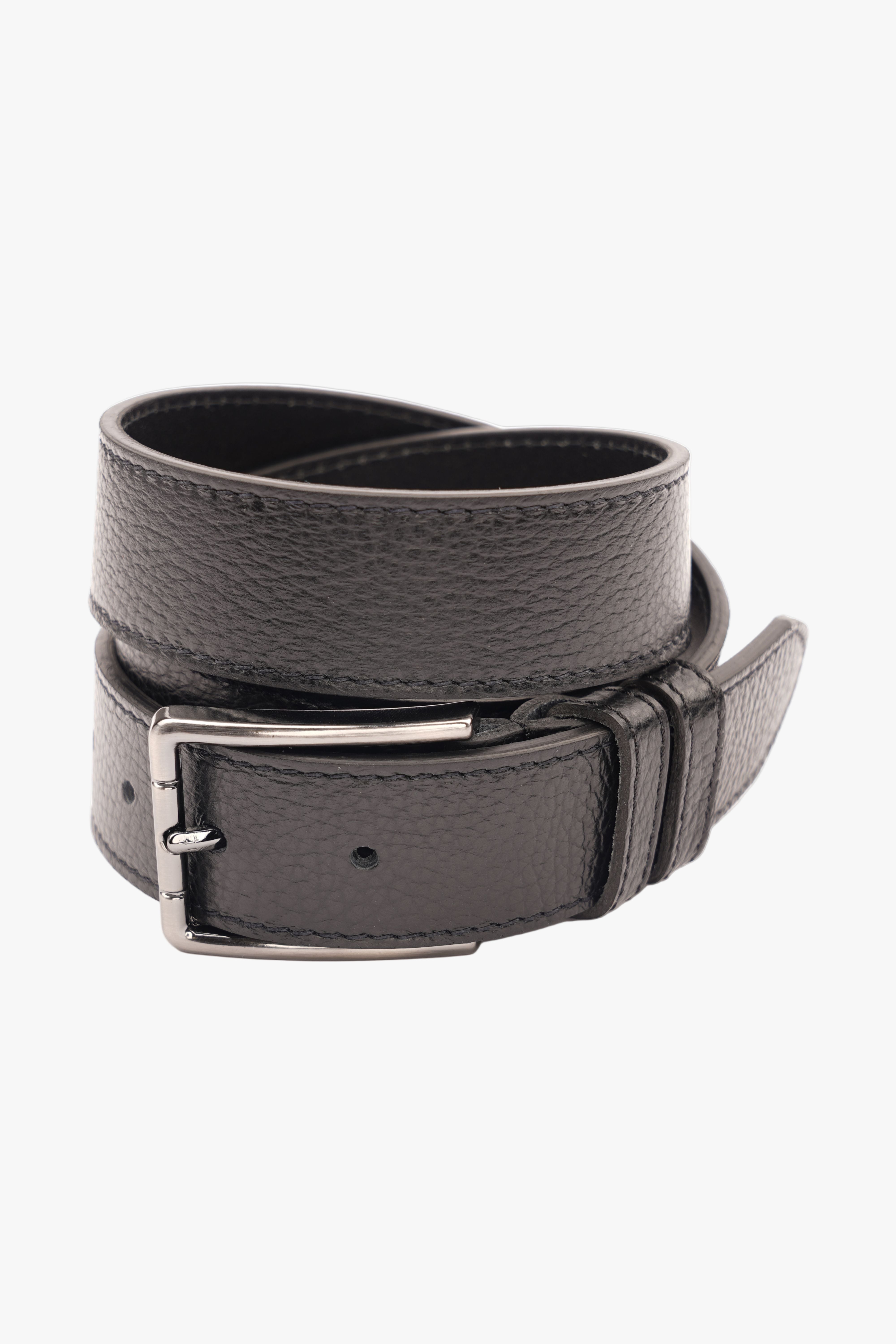 Cu un design clasic reinterpretat în cheie modernă, această curea din piele texturată neagră adaugă un plus de rafinament oricărei ținute masculine. Aspectul ușor granulat al pielii oferă profunzime vizuală și un caracter distinct, potrivit atât pentru stiluri elegante, cât și casual.