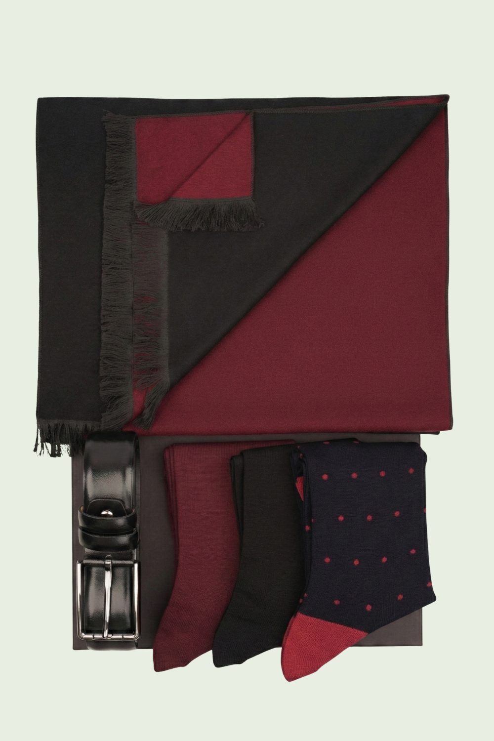 Cutie Cadou Bărbați Eșarfă din Cașmir, Curea din Piele Naturală și Șosete 6AM5024