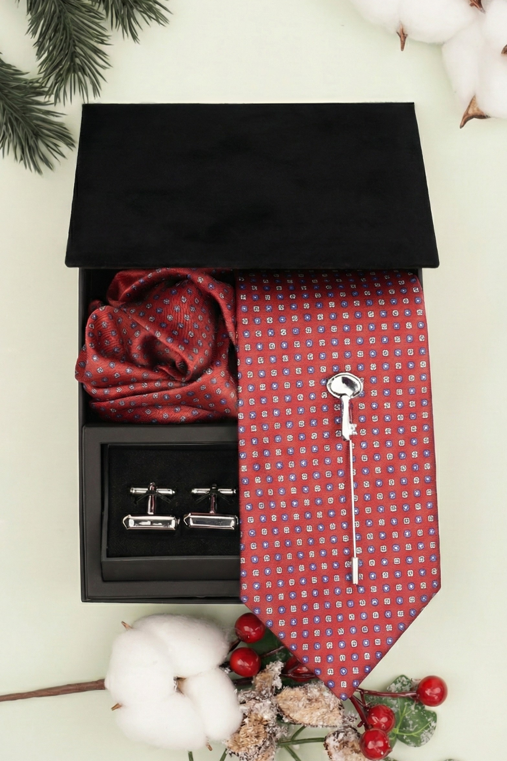 - Cutie Cadou Bărbați Butoni, Cravată, Batistă și Broșă 6AM5023