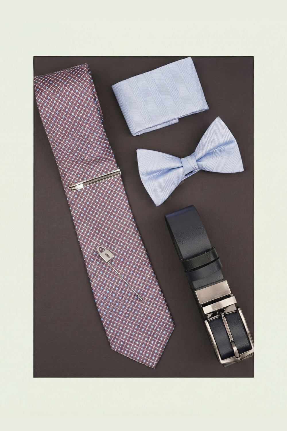 - Cutie Cadou Bărbați Cravată, Ac de Cravată, Batistă, Papion, Curea din Piele Naturală și Broșă 6AM5020