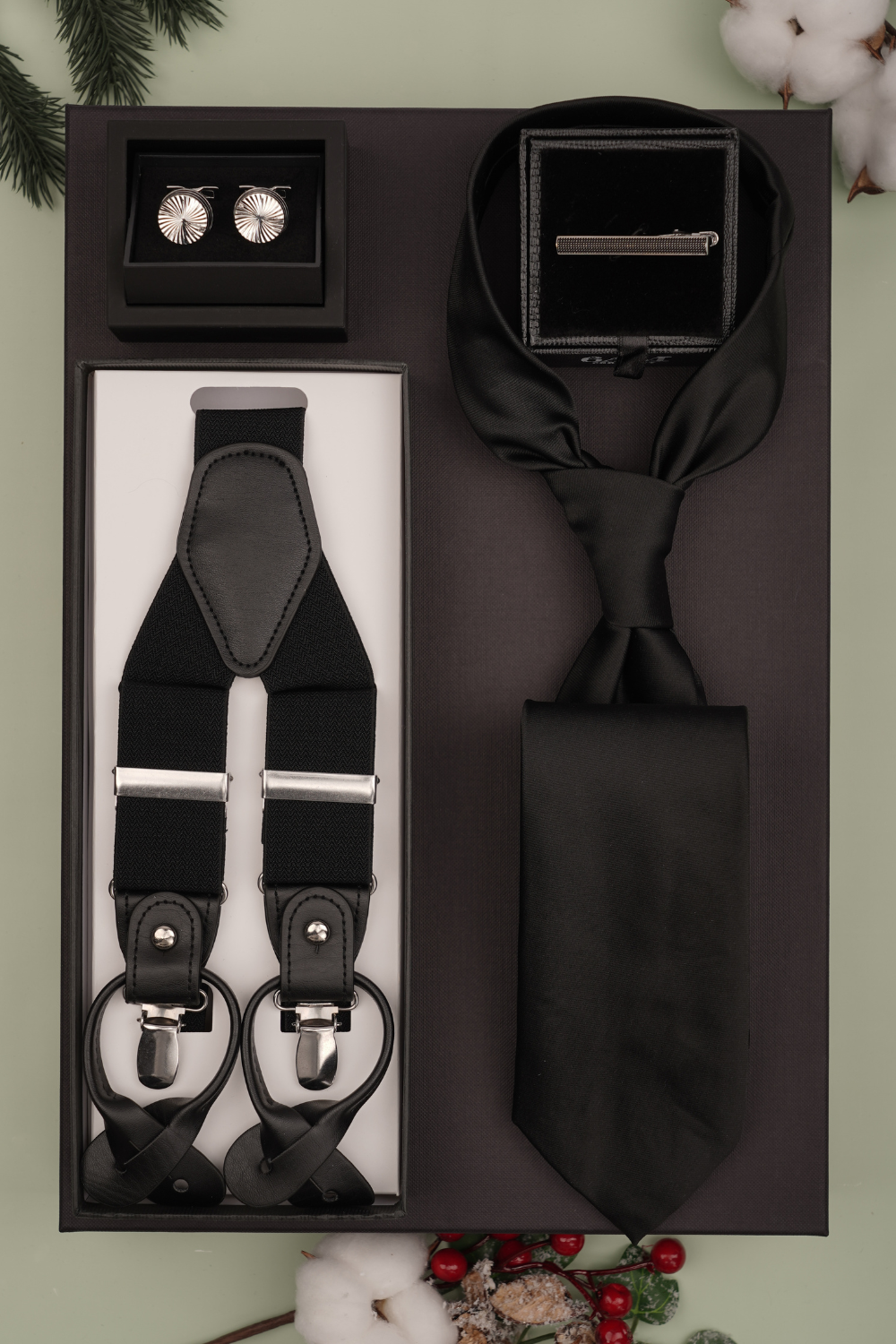 - Cutie Cadou Bărbați Cravată, Ac de Cravată, Butoni și Bretele 6AM5011