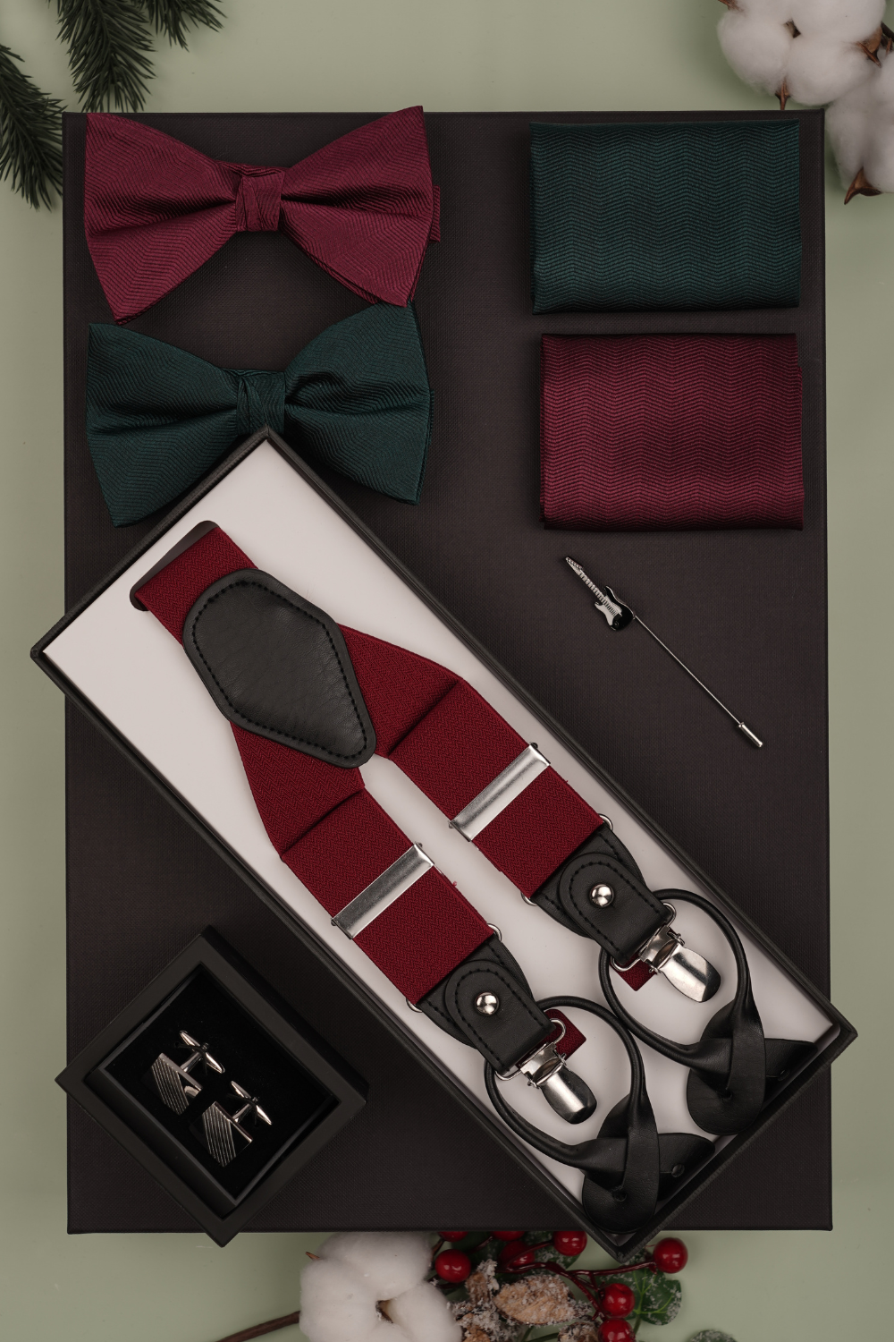 Cutie Cadou Bărbați Papioane si Batiste Asortate, Bretele, Butoni și Broșă 6AM5012