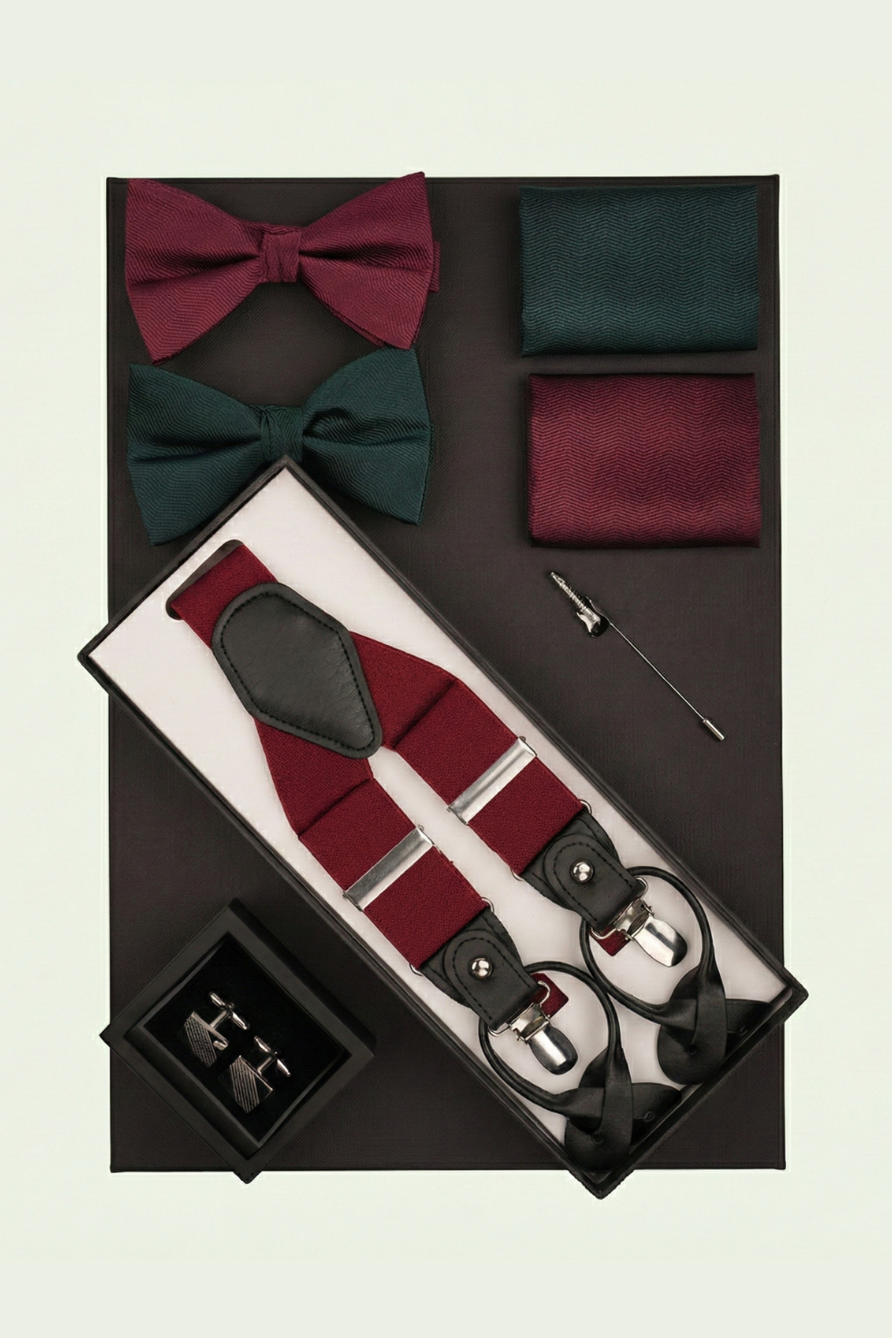 - Cutie Cadou Bărbați Papioane si Batiste Asortate, Bretele, Butoni și Broșă 6AM5012