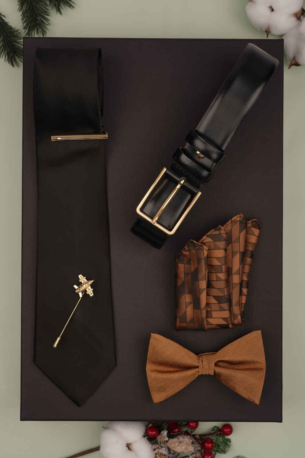 Cutie Cadou Bărbați Papion, Batistă, Curea, Cravată, Ac de Cravată și Broșă 6AM5014