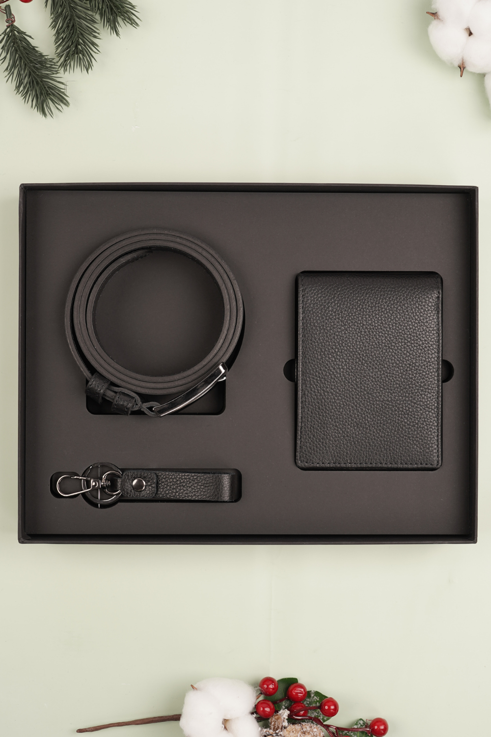 Cutie Cadou Bărbați Portofel, Curea și Breloc din Piele Naturală 6AM5016
