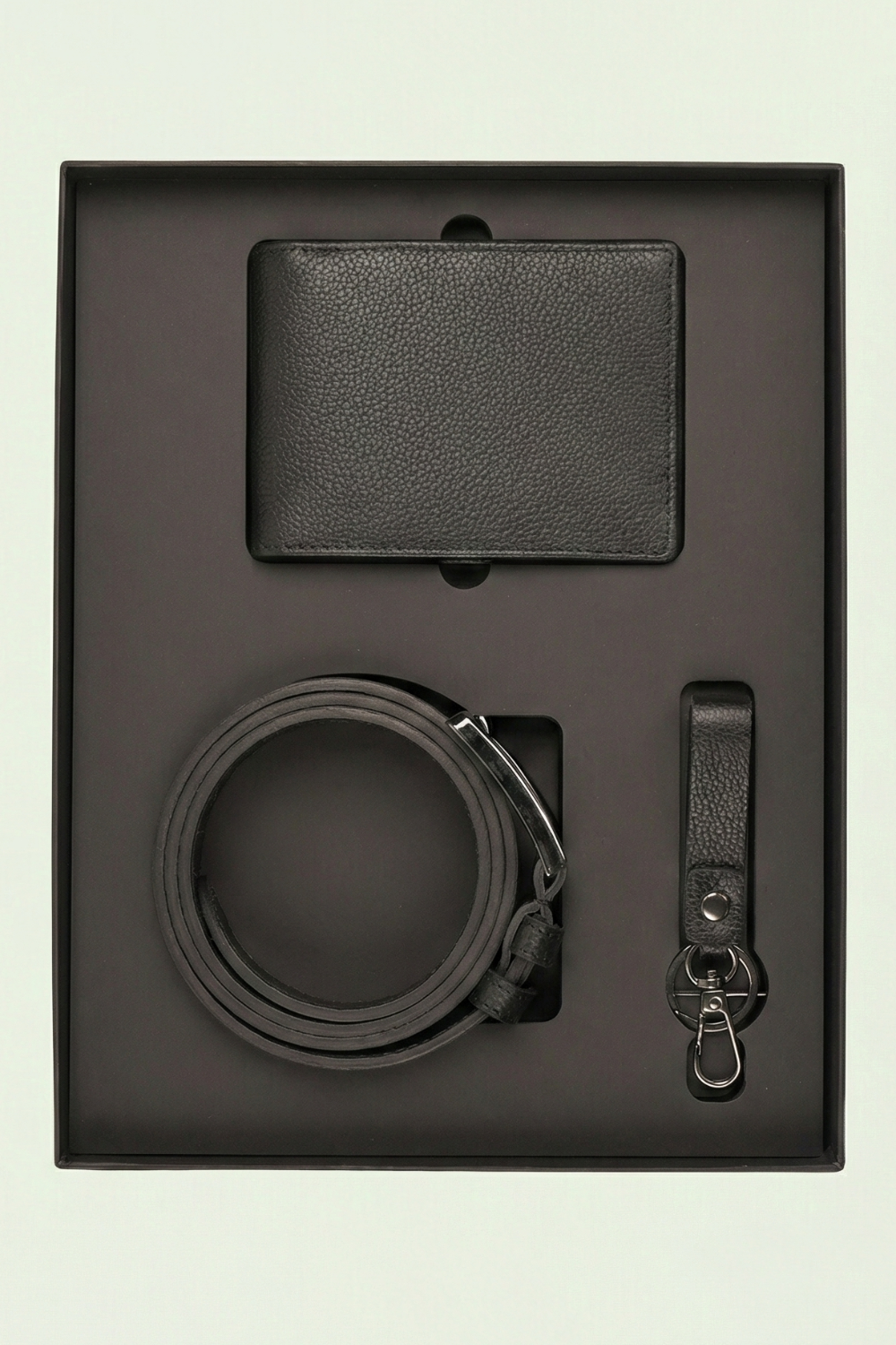 - Cutie Cadou Bărbați Portofel, Curea și Breloc din Piele Naturală 6AM5016