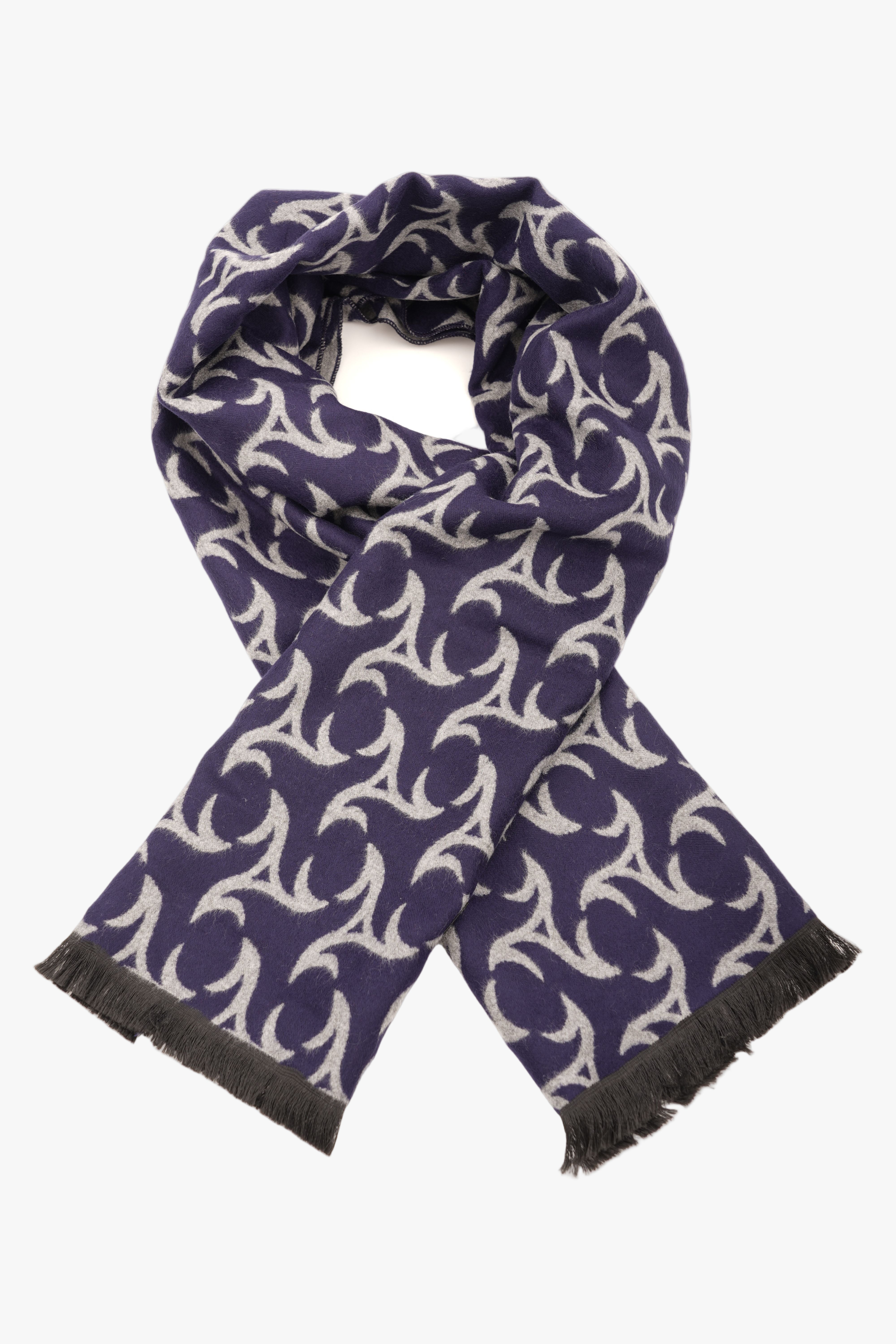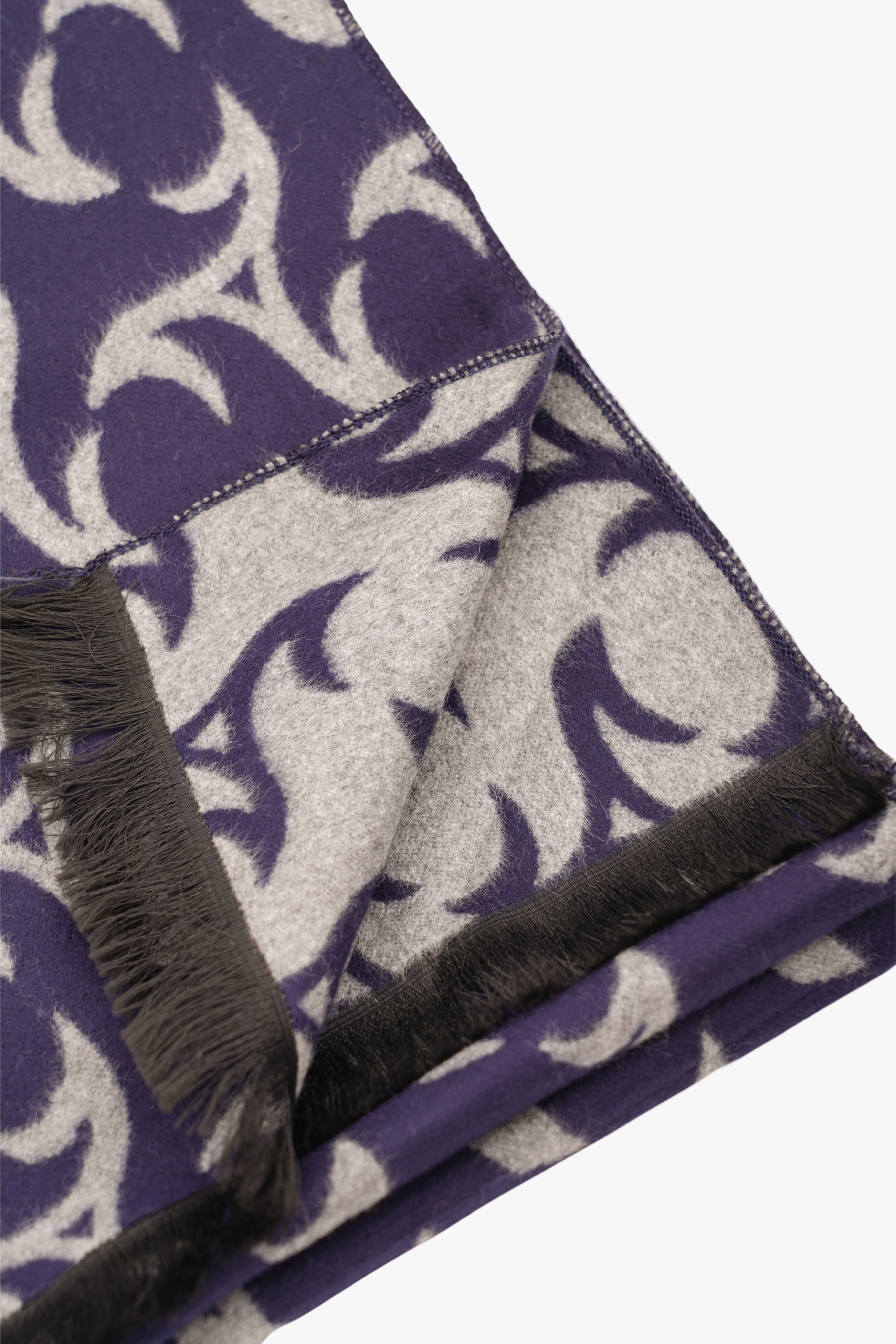 Eșarfă Gri-Bleumarin din Cașmir și Mătase cu Model Abstract