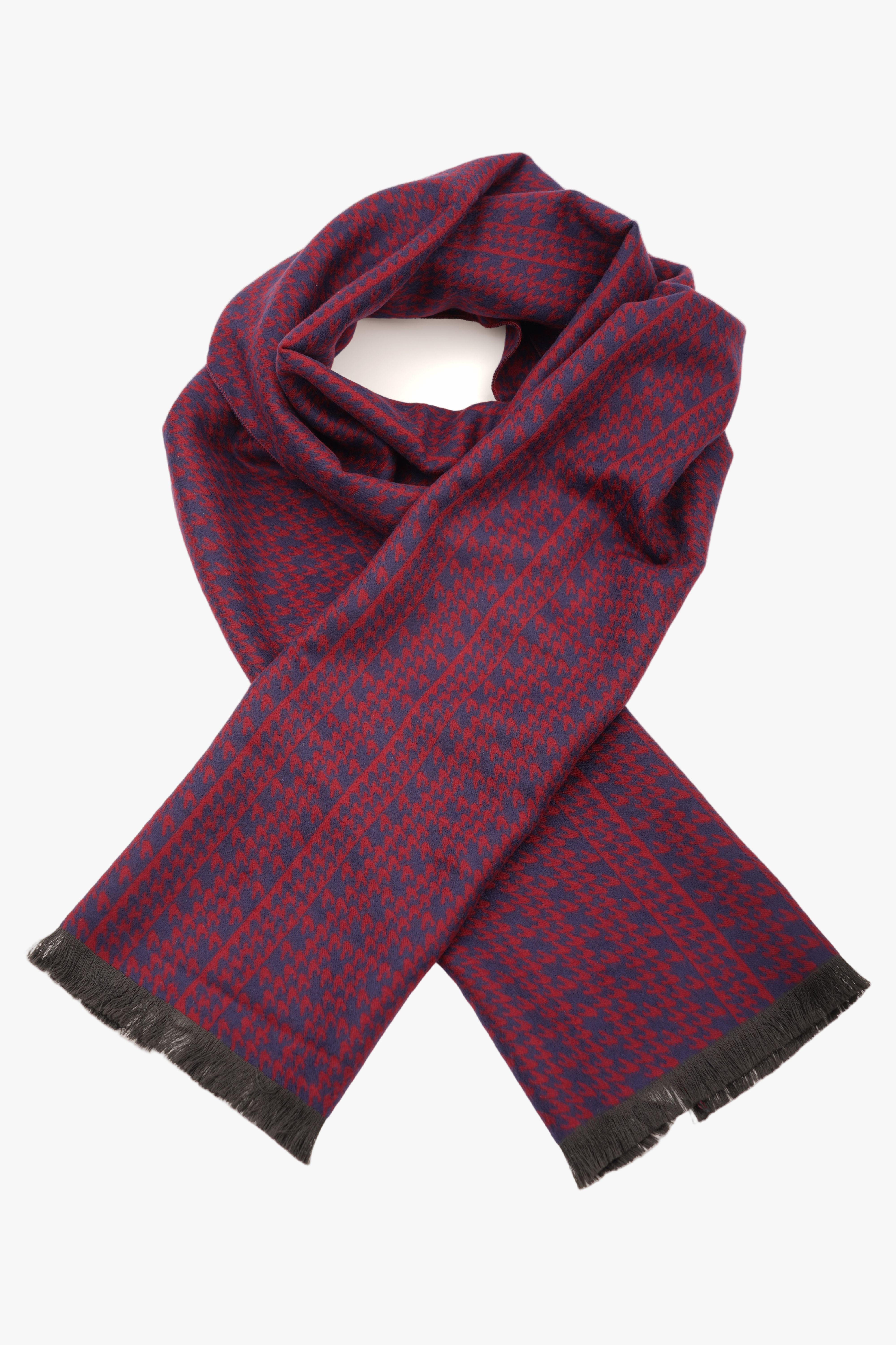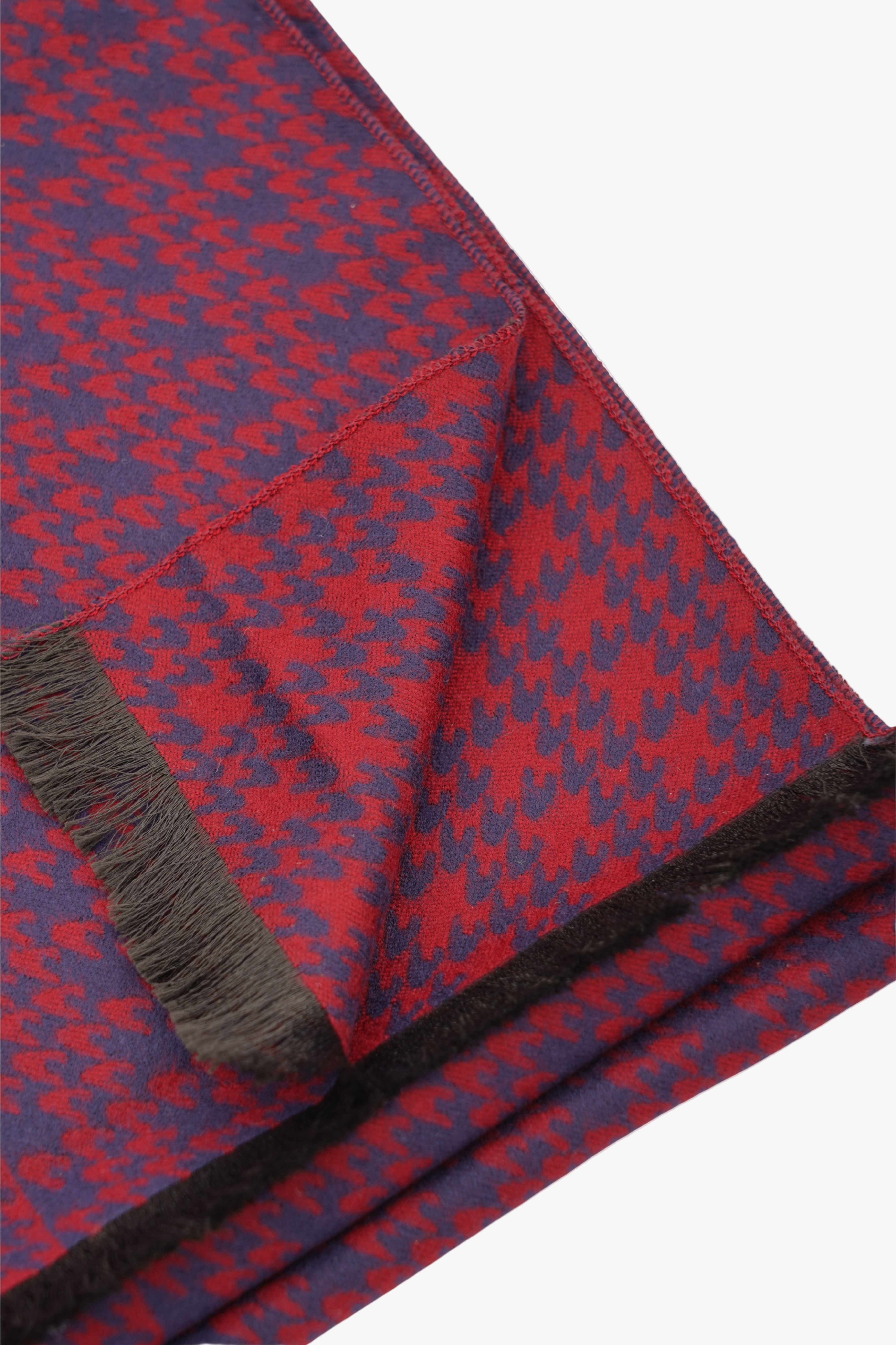Eșarfă Roșu-Bleumarin din Cașmir și Mătase cu Model Discret