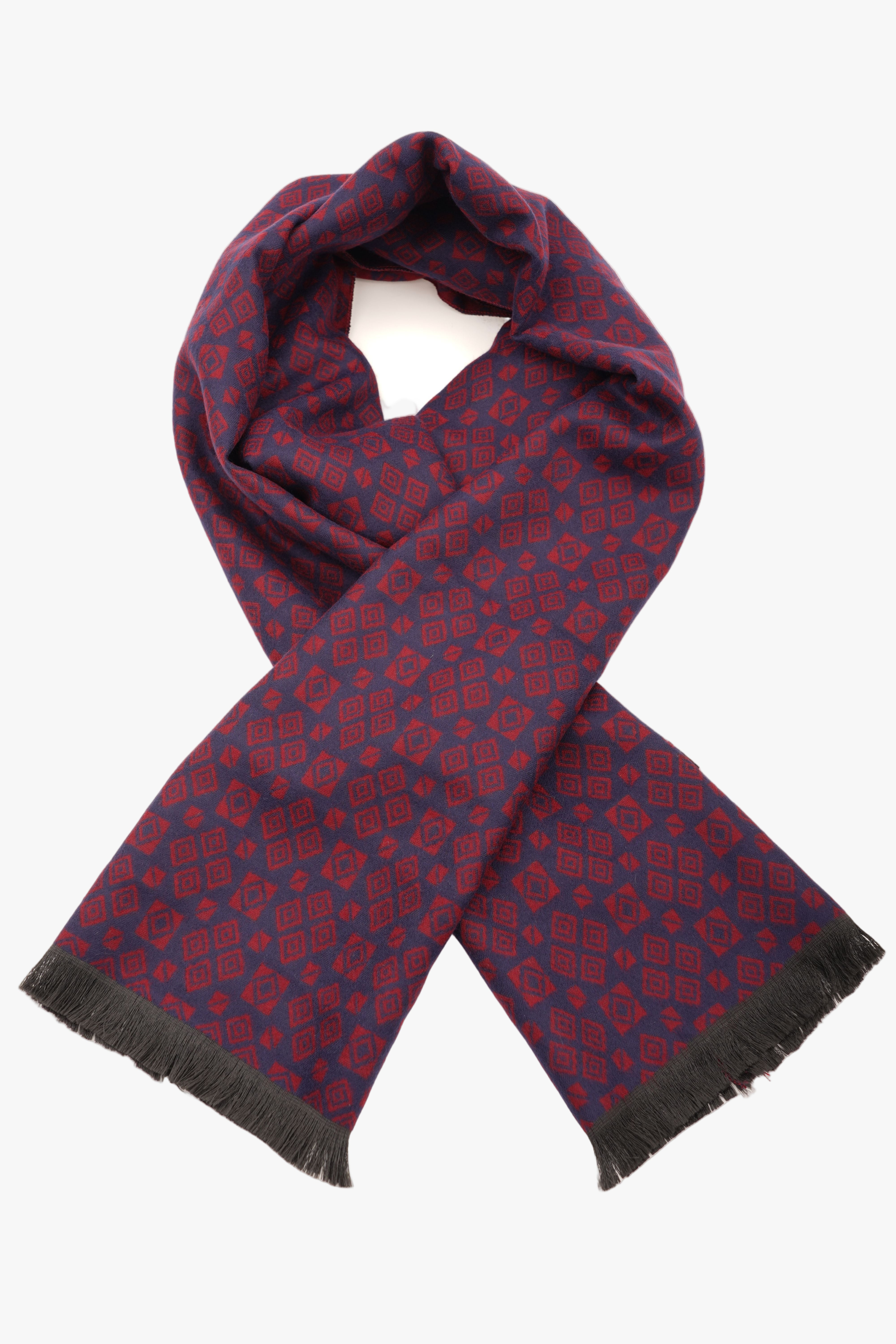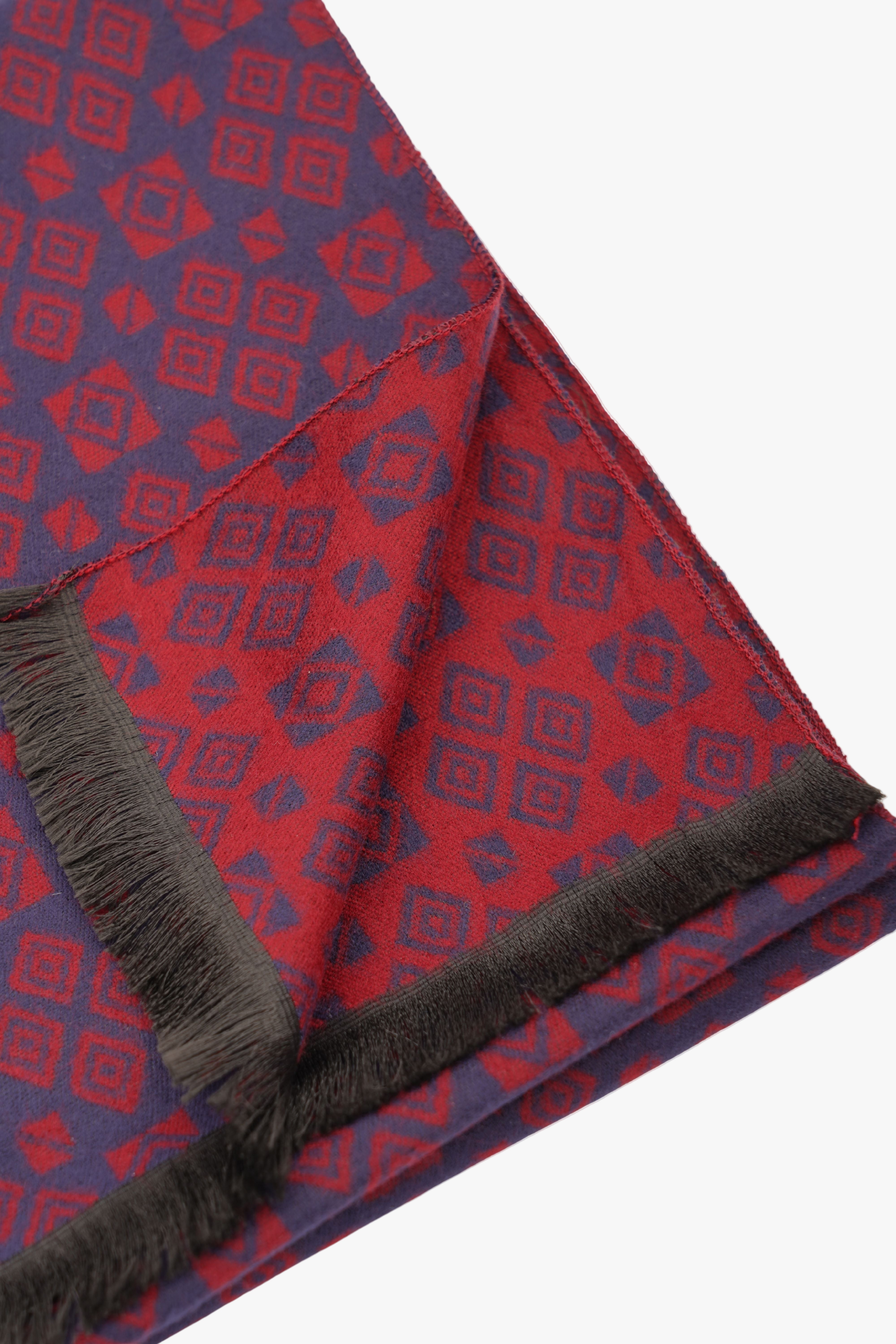 Eșarfă Roșu-Bleumarin din Cașmir și Mătase cu Model Geometric