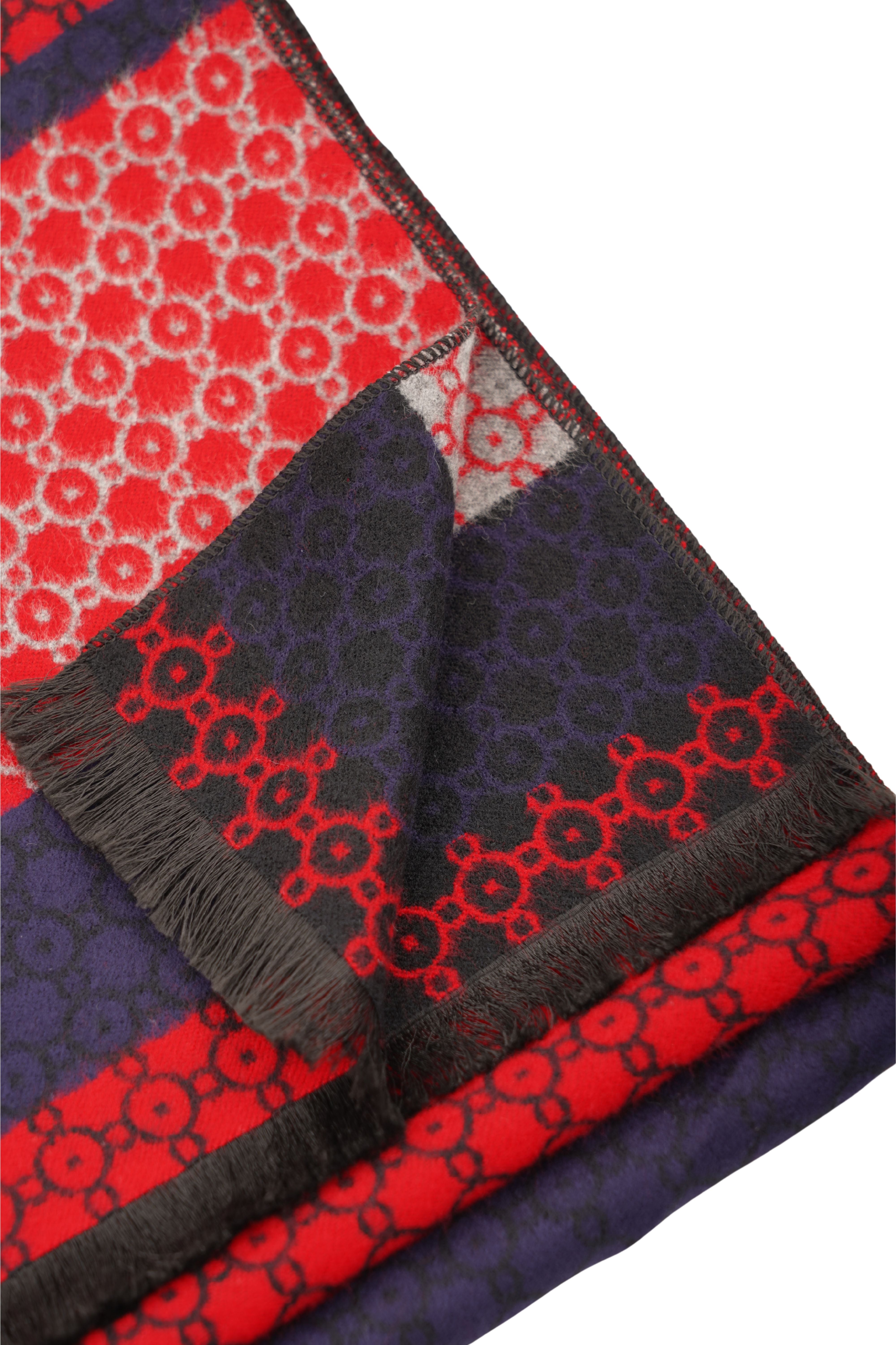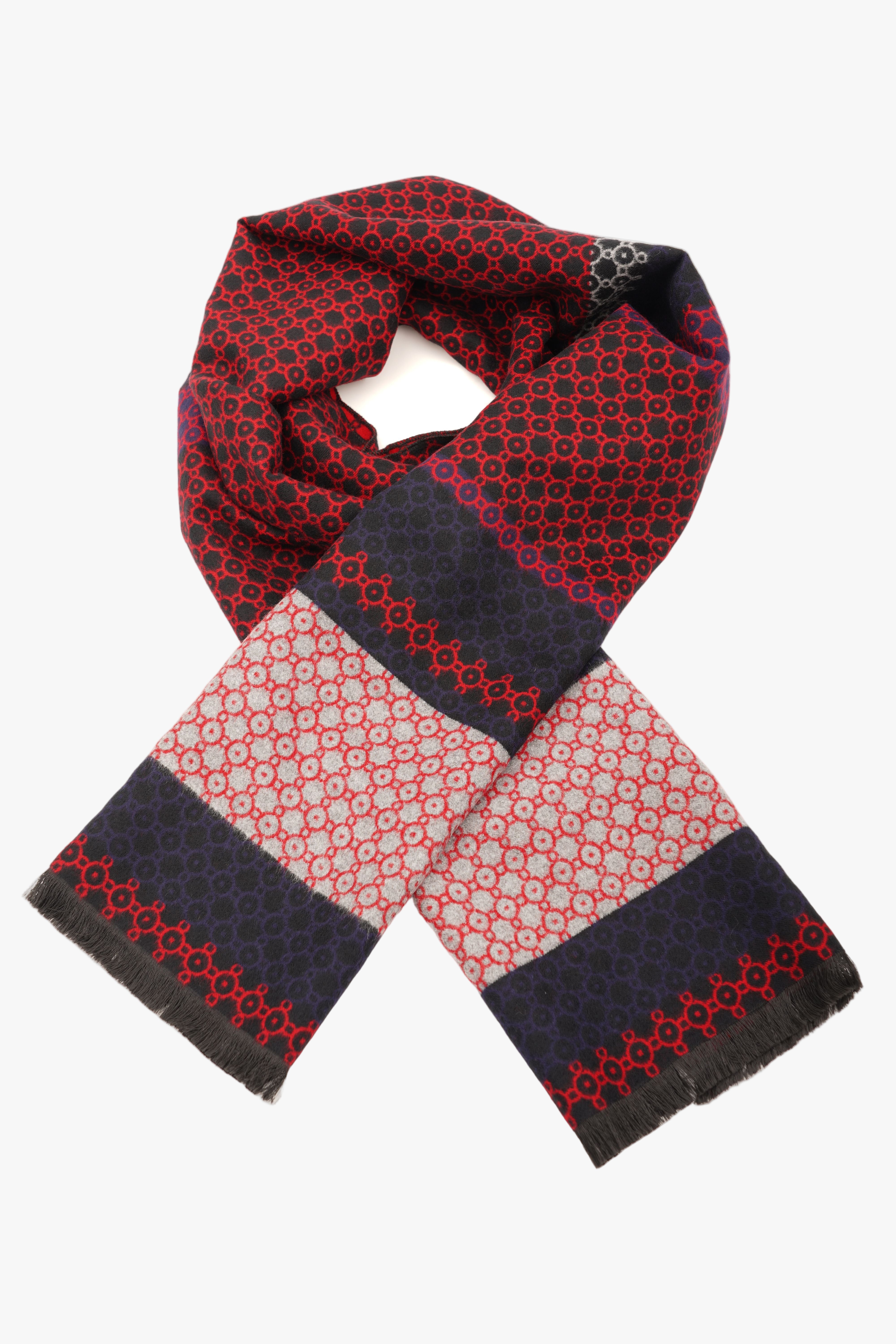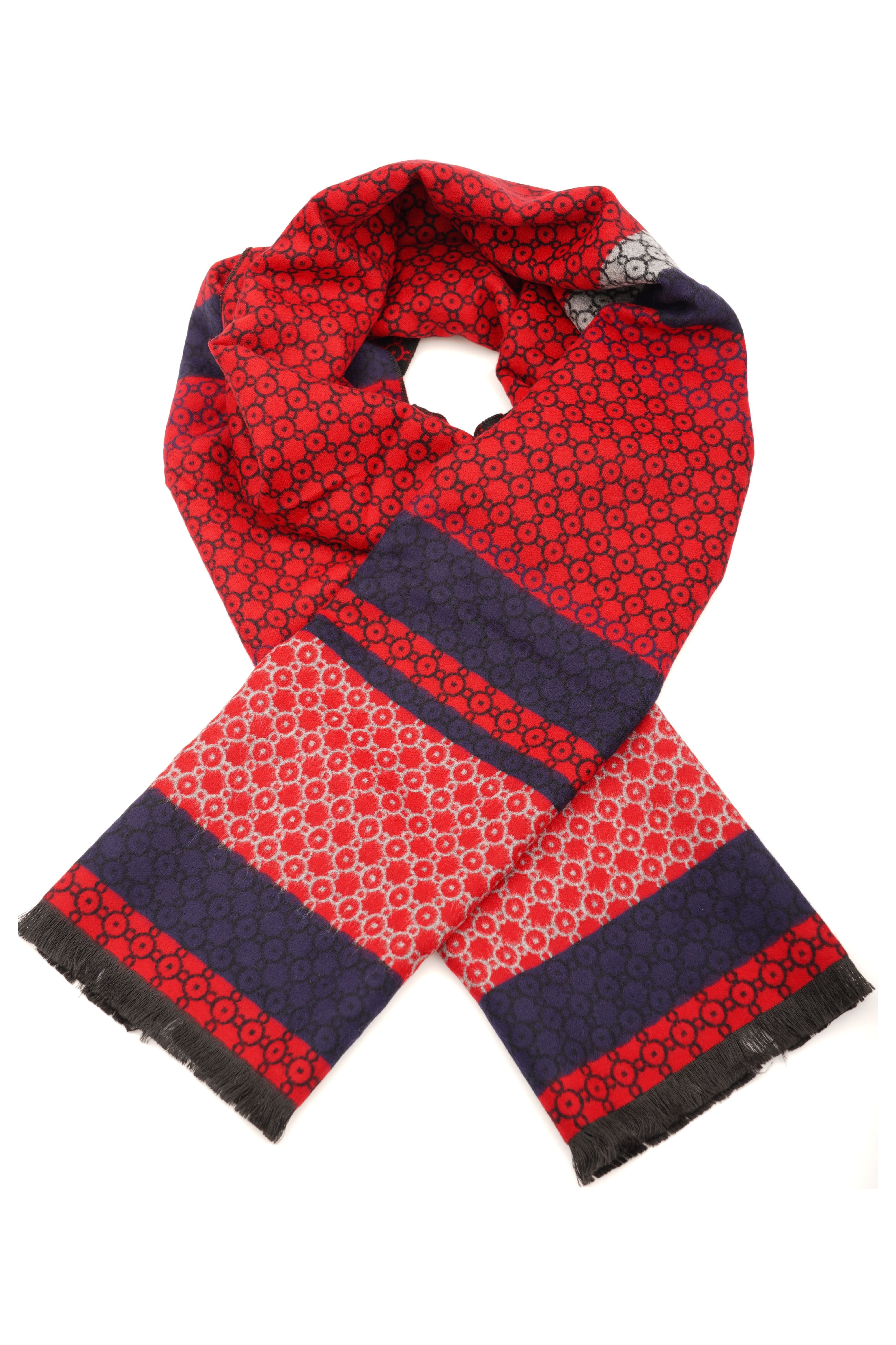 Eșarfă Roșu-Bleumarin din Cașmir și Mătase cu Model Geometric