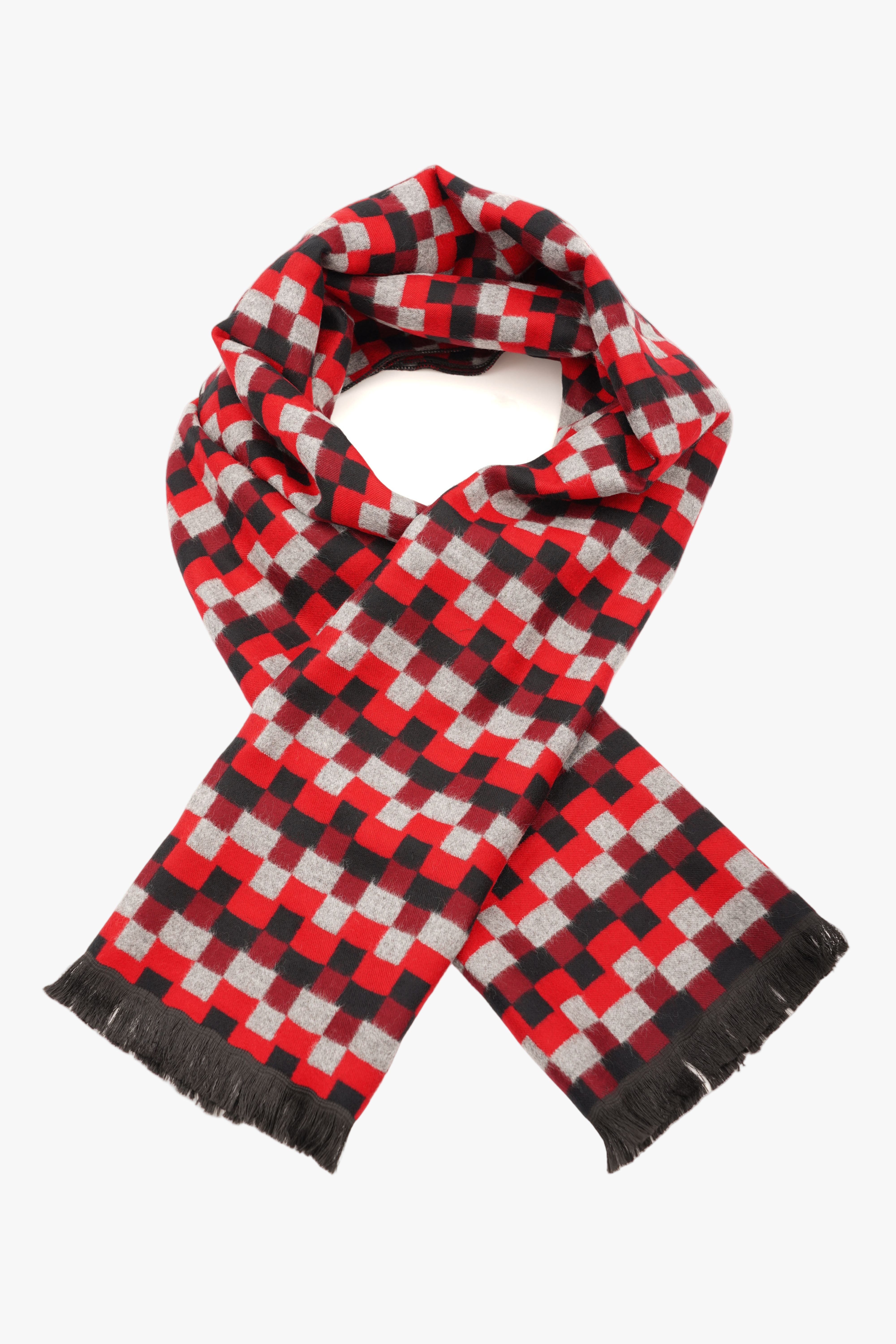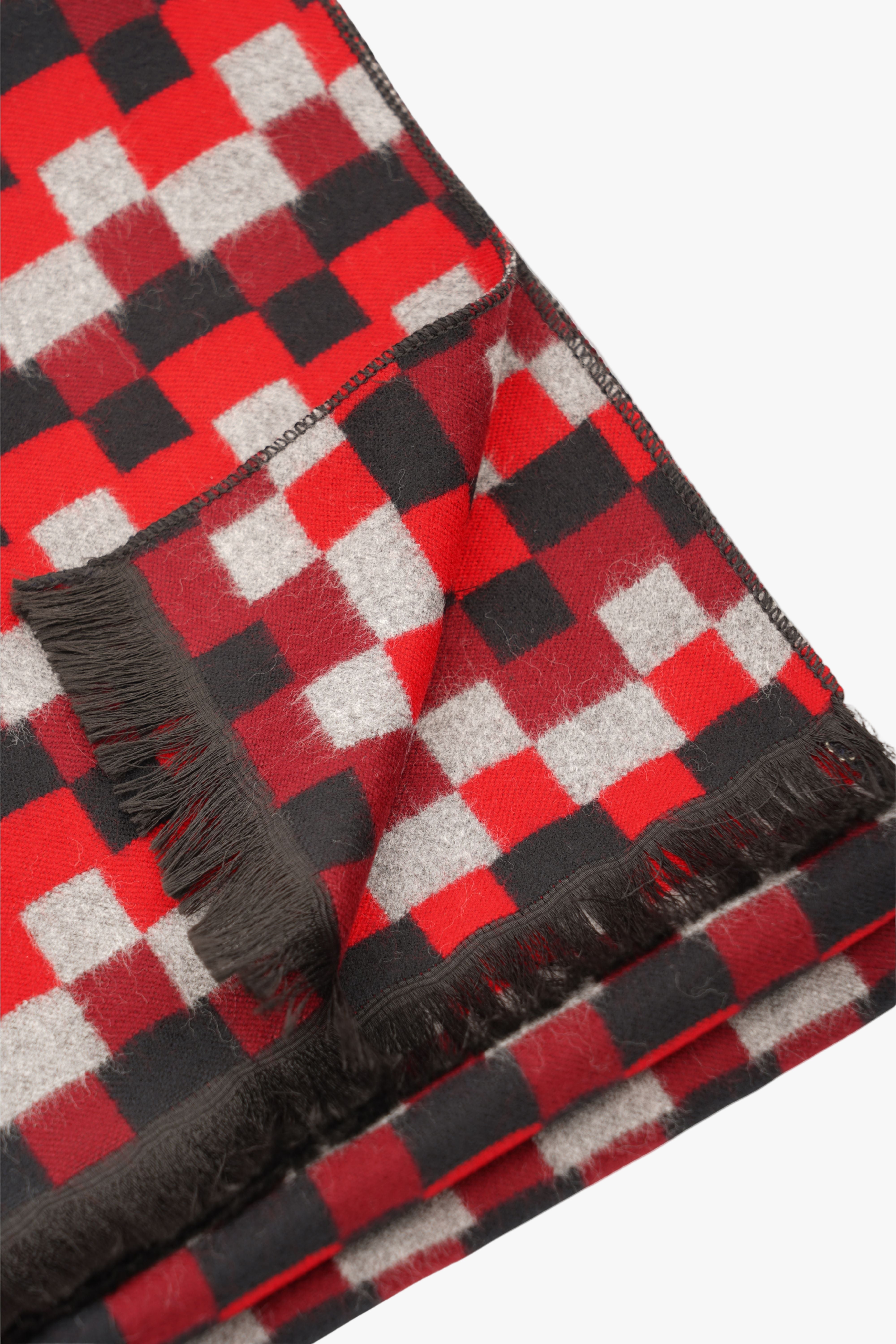 Eșarfă Roșu-Gri din Cașmir și Mătase cu Model Carouri