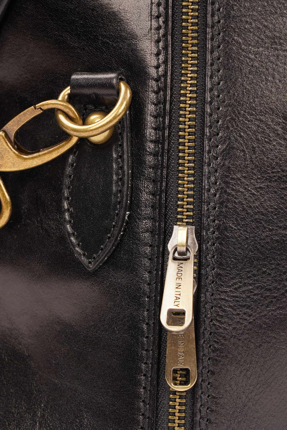 Geanta de voiaj din piele naturală neagră, realizată în Italia, oferă un aspect modern și elegant, potrivit atât pentru călătorii, cât și pentru utilizare zilnică. Pielea autentică are un luciu rafinat și o textură fină, evidențiind calitatea materialului și atenția la detalii. Accesoriile metalice aurii și cusăturile precise completează un design premium, creat pentru durabilitate.