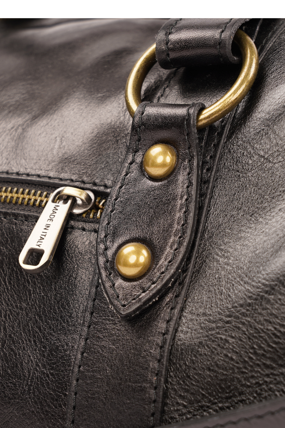 Geantă de Voiaj din Piele Naturală Neagră – Made in Italy