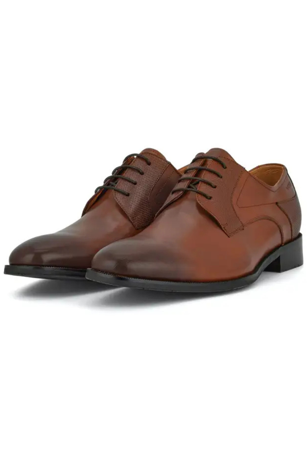 Nuanța caldă de maro deschis (cognac) prezintă un finisaj manual tip „burnished” la vârf, ceea ce conferă pantofului o profunzime cromatică deosebită. Fiind fabricați în Germania, acești pantofi garantează standarde înalte de calitate și confort. Designul tip Derby și talpa flexibilă îi fac ideali pentru bărbatul activ care are nevoie de o încălțăminte versatilă, capabilă să facă tranziția de la o zi la birou la un eveniment social de seară.