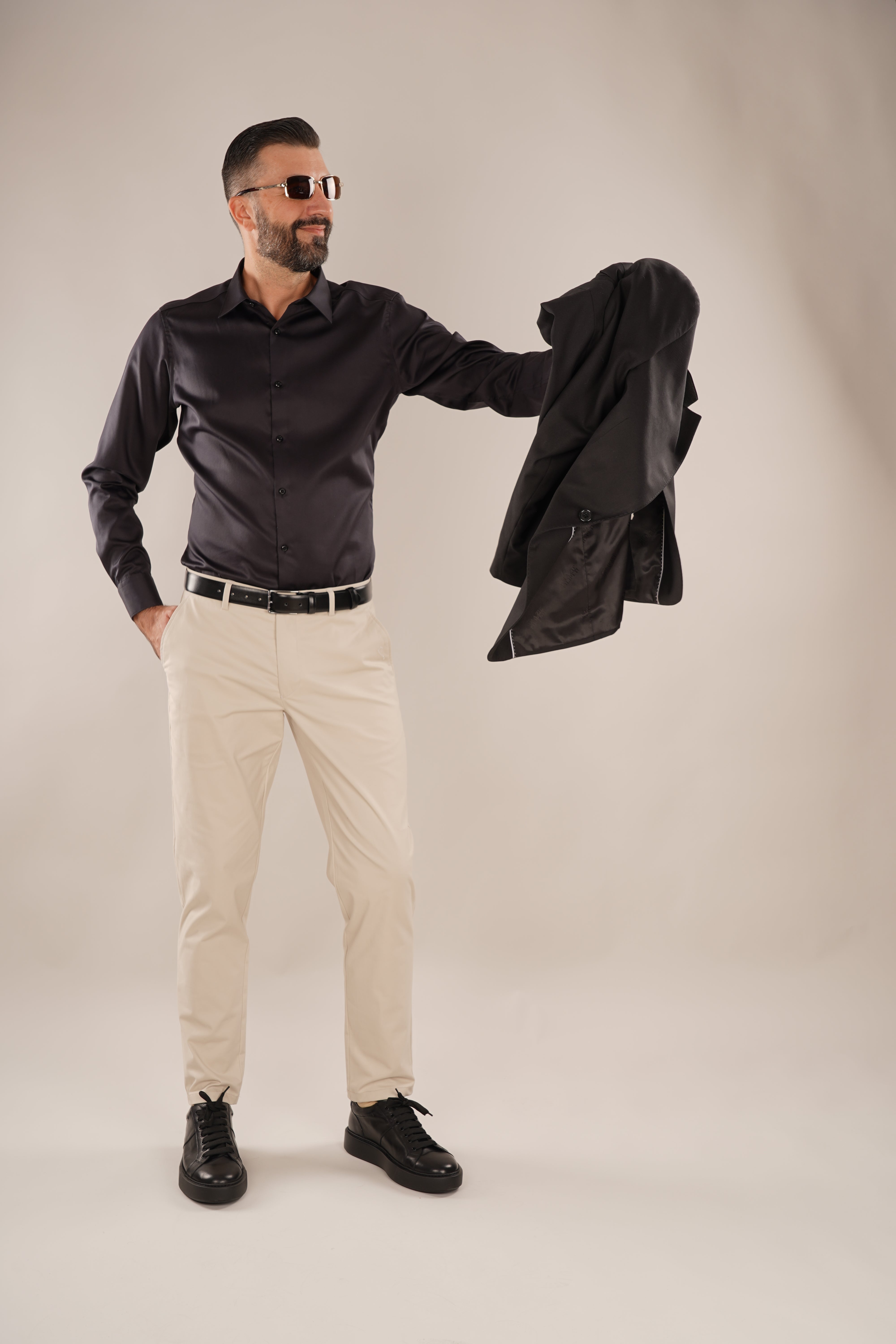 Realizați dintr-o țesătură de calitate, compusă din 97% bumbac natural și 3% elastan, pantalonii oferă confort superior, respirabilitate și libertate de mișcare. Designul clasic Chino, completat de buzunare laterale și la spate, asigură un aspect rafinat, iar materialul moale și rezistent îi face potriviți pentru purtare zilnică, în orice sezon. Perfect echilibrați între stil și funcționalitate, acești pantaloni devin rapid o piesă esențială în garderoba masculină.