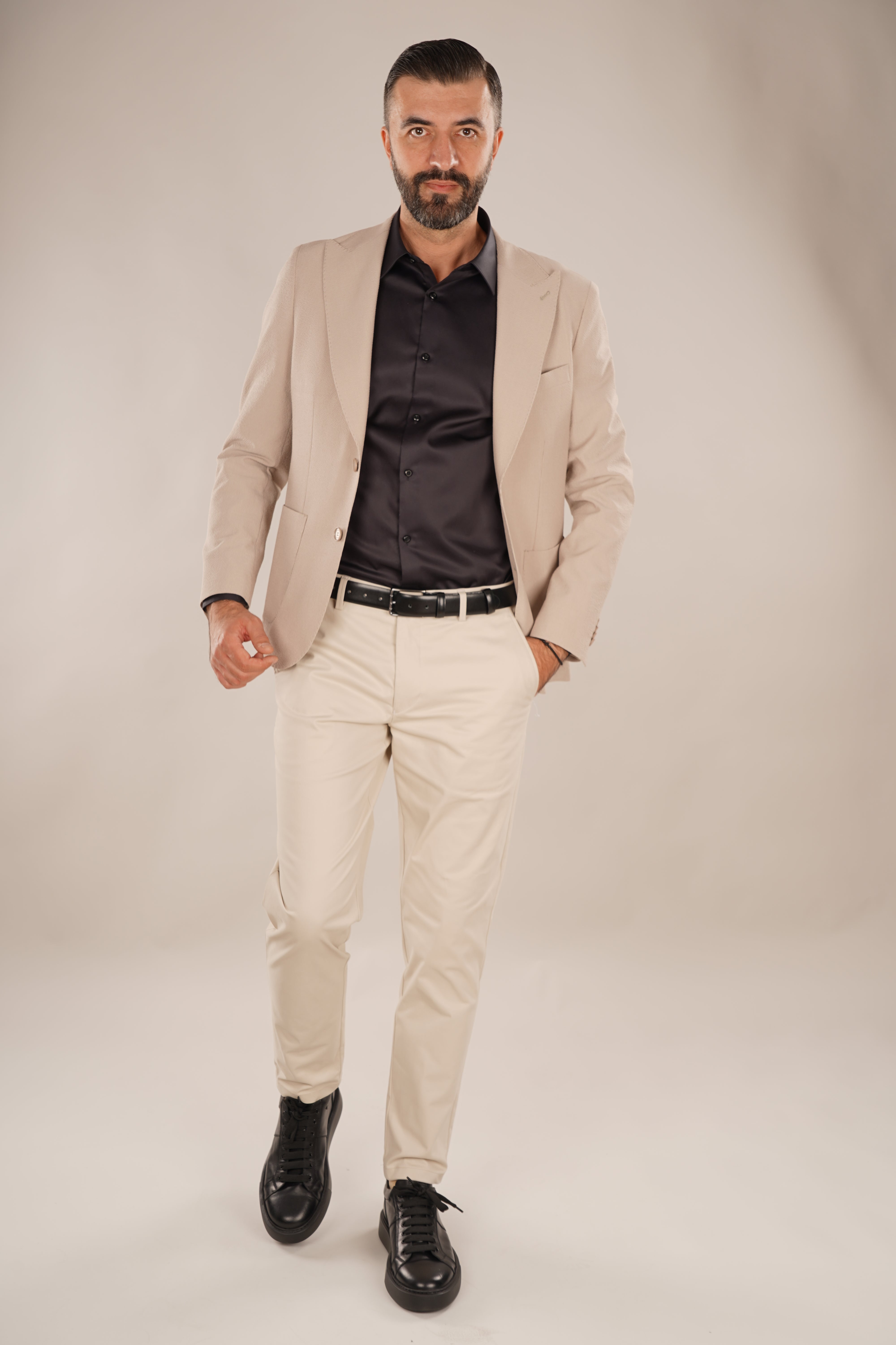 Pantaloni Bărbați Chinos Bej din Bumbac Slim Fit 6AM