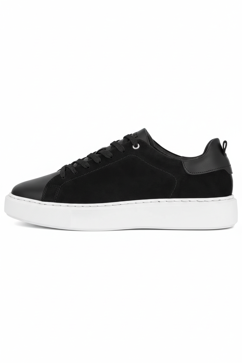 Redefinește eleganța urbană cu pantofii sport DIGEL Sound Negru (Model 1001931). Această versiune se distinge prin utilizarea extinsă a pielii întoarse (suede) premium pe panourile laterale, oferind o textură catifelată și un aspect sofisticat, în contrast subtil cu vârful și călcâiul din piele naturală netedă.