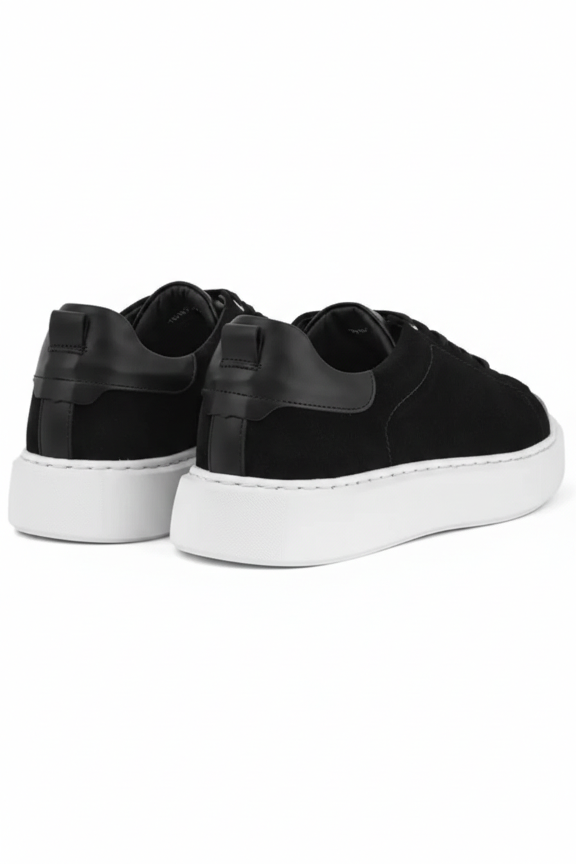 Contrastul vizual dintre negrul intens al părții superioare și talpa albă masivă conferă un look modern și dinamic. Fiind fabricați în Germania, acești sneakers promit nu doar stil, ci și o rezistență de lungă durată. Sunt extrem de versatili: textura mată a pielii întoarse îi face ideali pentru ținutele Smart-Casual de birou, dar se integrează perfect și în outfit-uri relaxate de weekend.