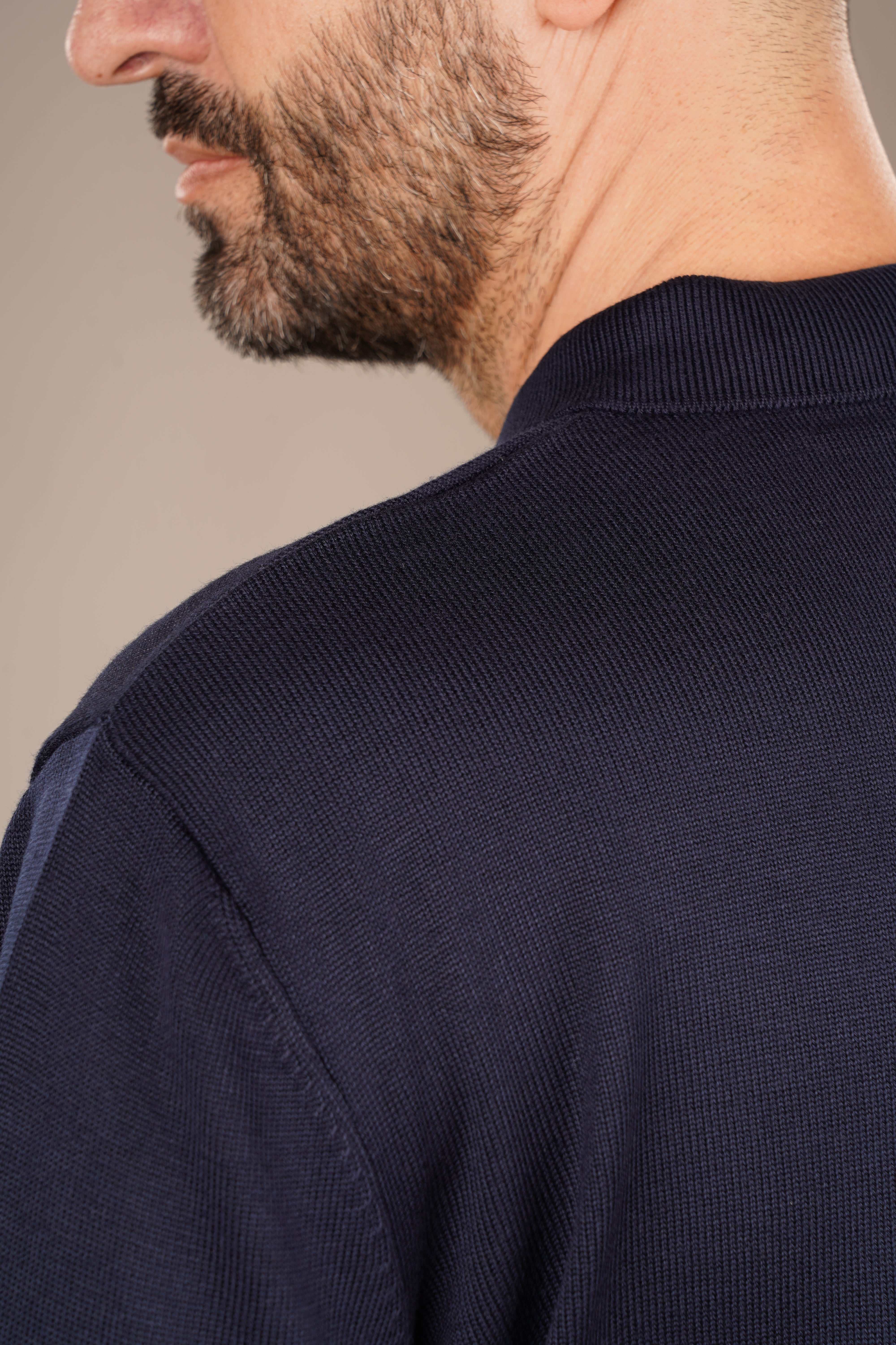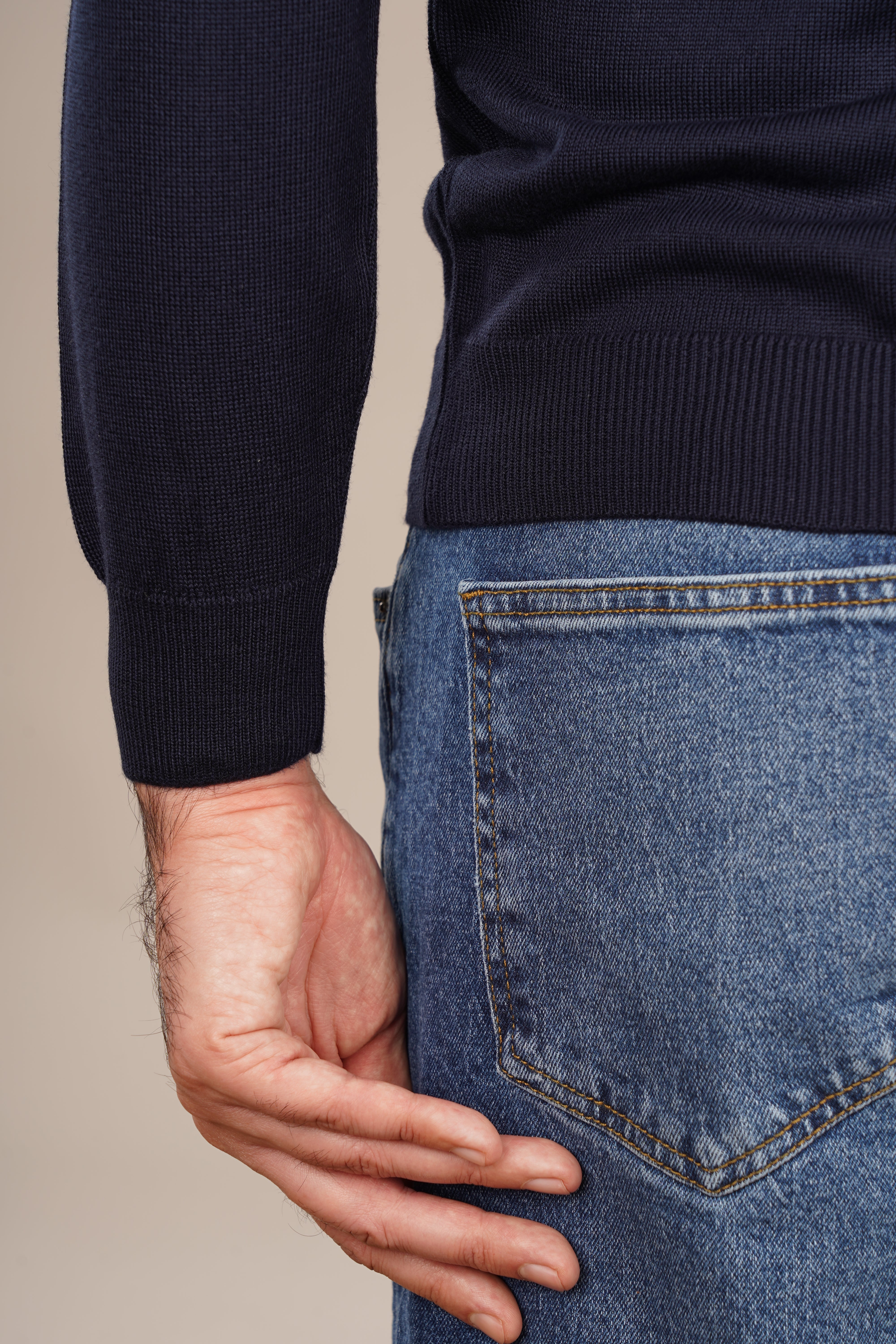 Un pulover care definește eleganța relaxată, perfect pentru bărbatul care preferă un stil echilibrat și rafinat. Nuanța bleumarin adaugă profunzime și versatilitate, fiind ușor de integrat atât în ținutele de birou, cât și în cele de weekend.