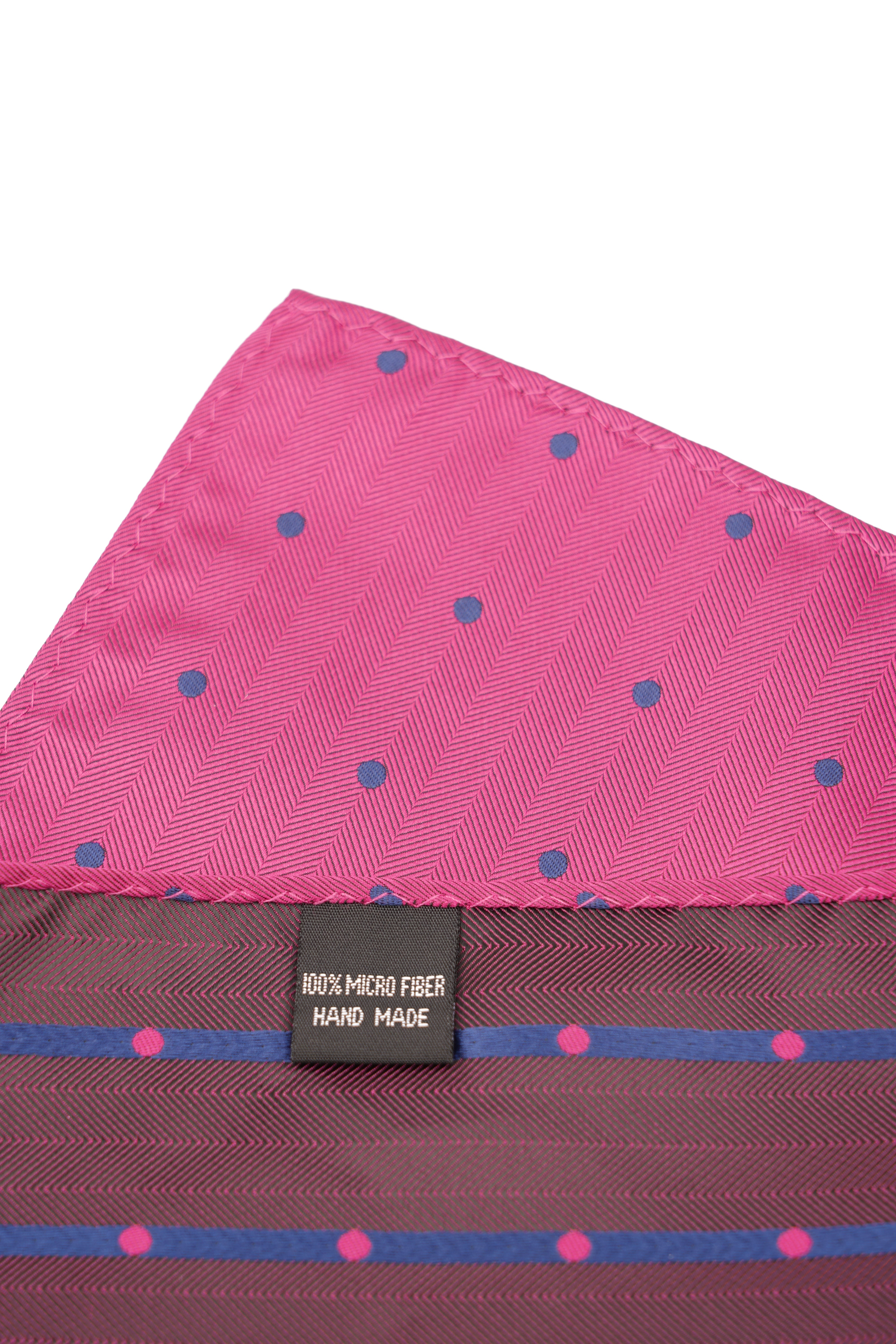 Batista are un fundal fucsia vibrant, decorat cu buline albastre discrete, ce creează un contrast elegant și plin de energie. Este alegerea perfectă pentru ocazii speciale, dar și pentru a aduce un plus de personalitate unui costum business sau smart casual.