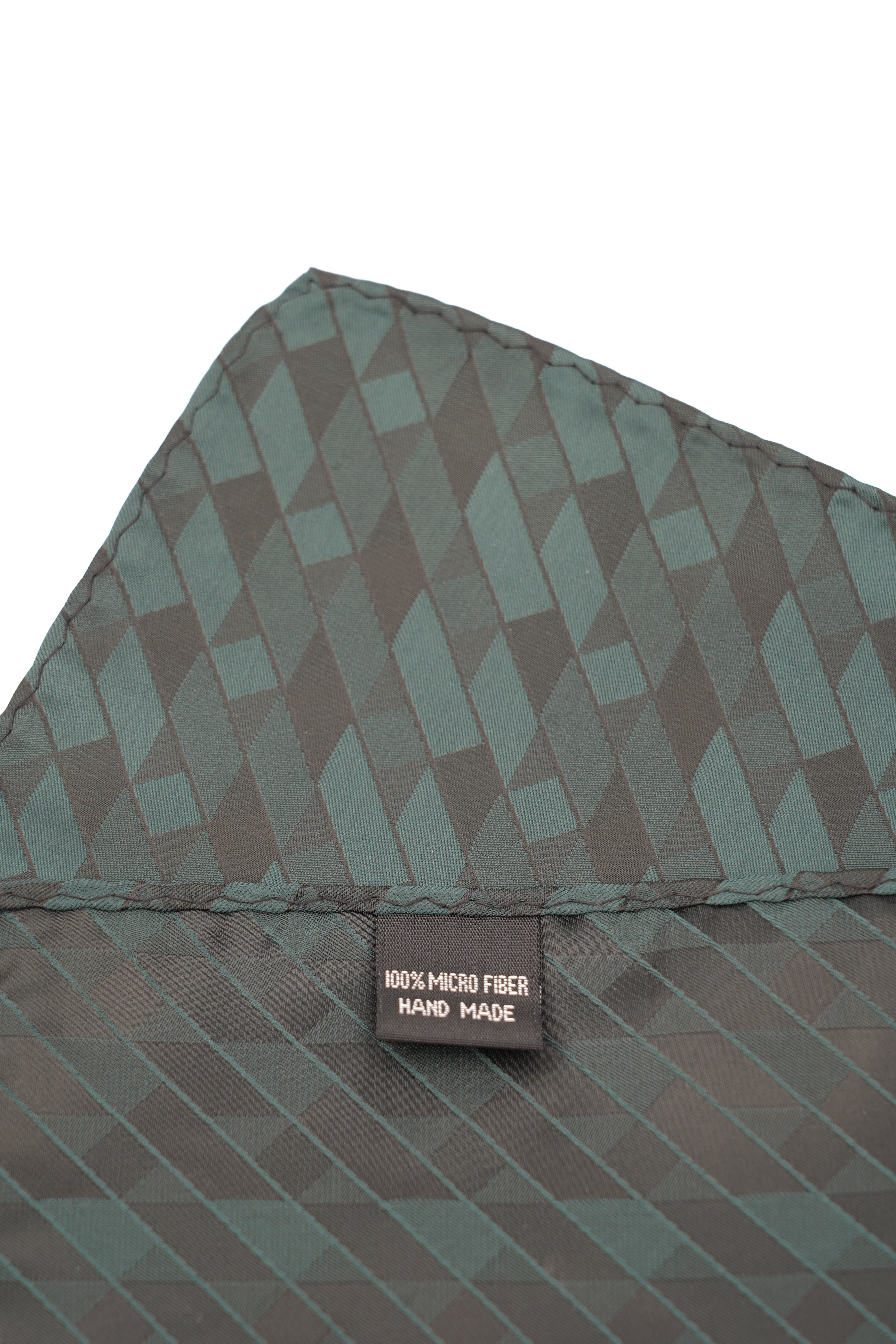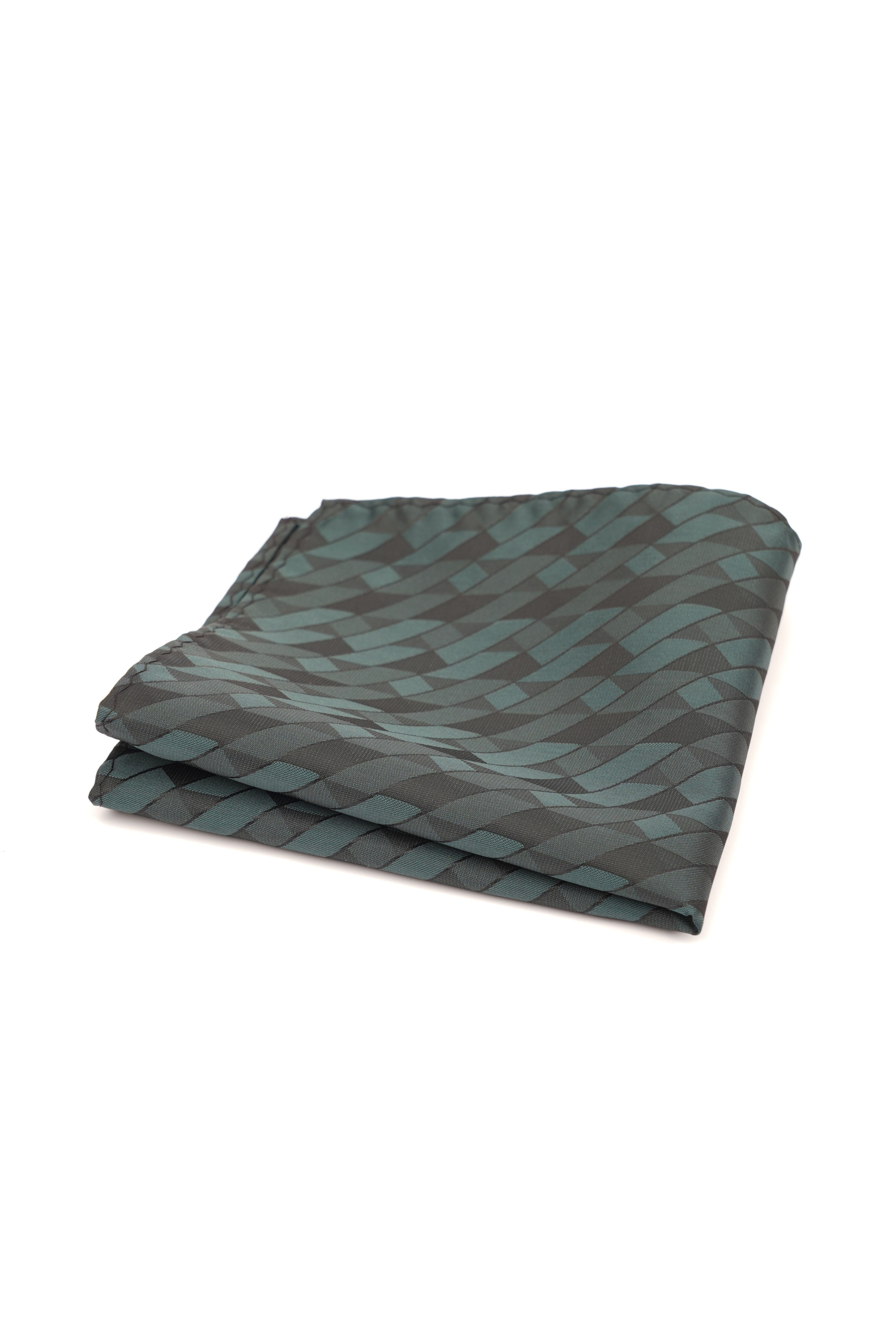 Realizată pe un fundal gri închis, batista prezintă un imprimeu geometric repetitiv în nuanțe de verde subtil, oferind un efect vizual elegant și contemporan. Este ideală pentru un look business smart sau pentru ocazii unde accesoriile fac diferența.