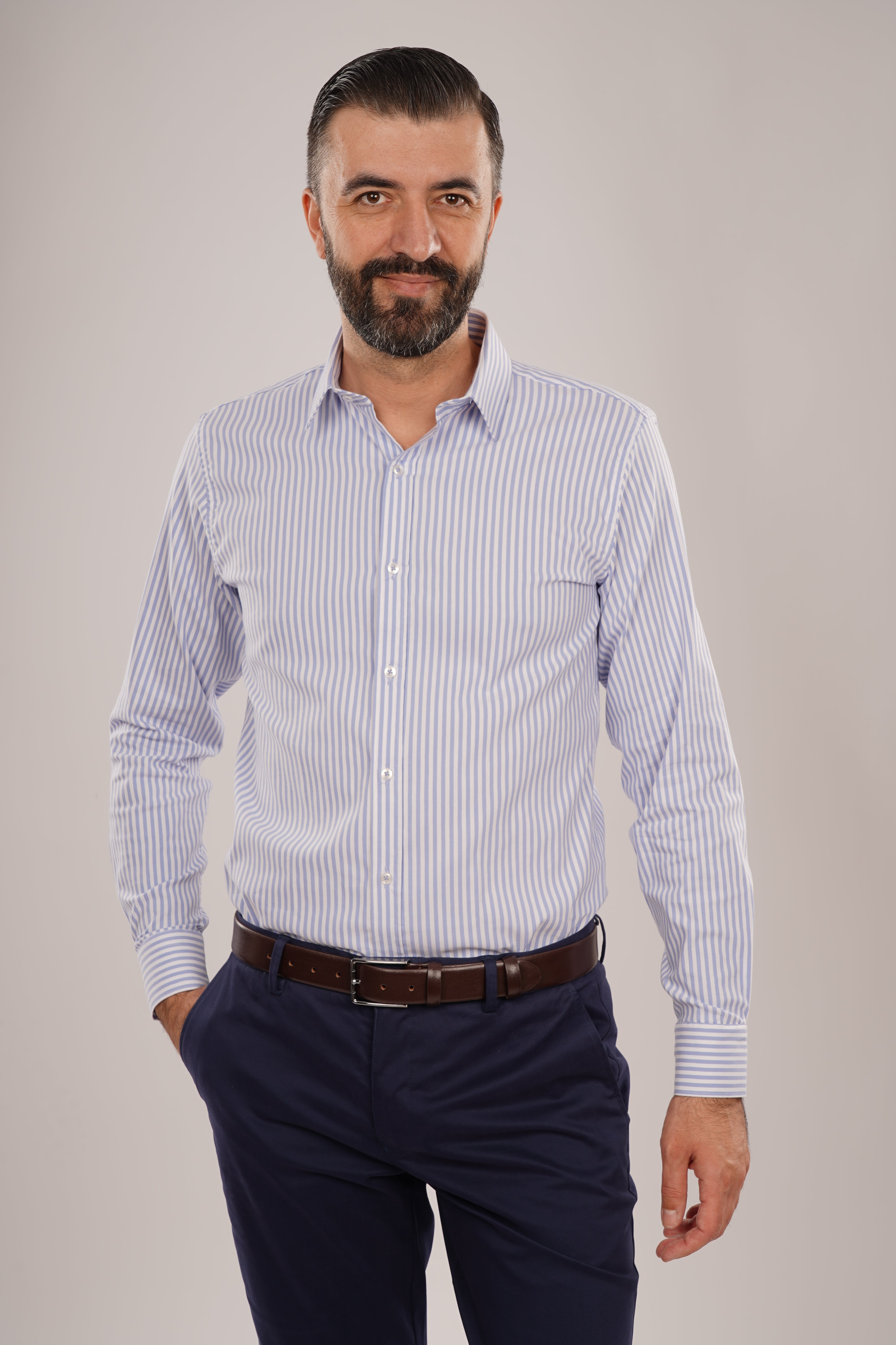 Cămașă Bărbați Alb-Albastru în Dungi – 97% Bumbac